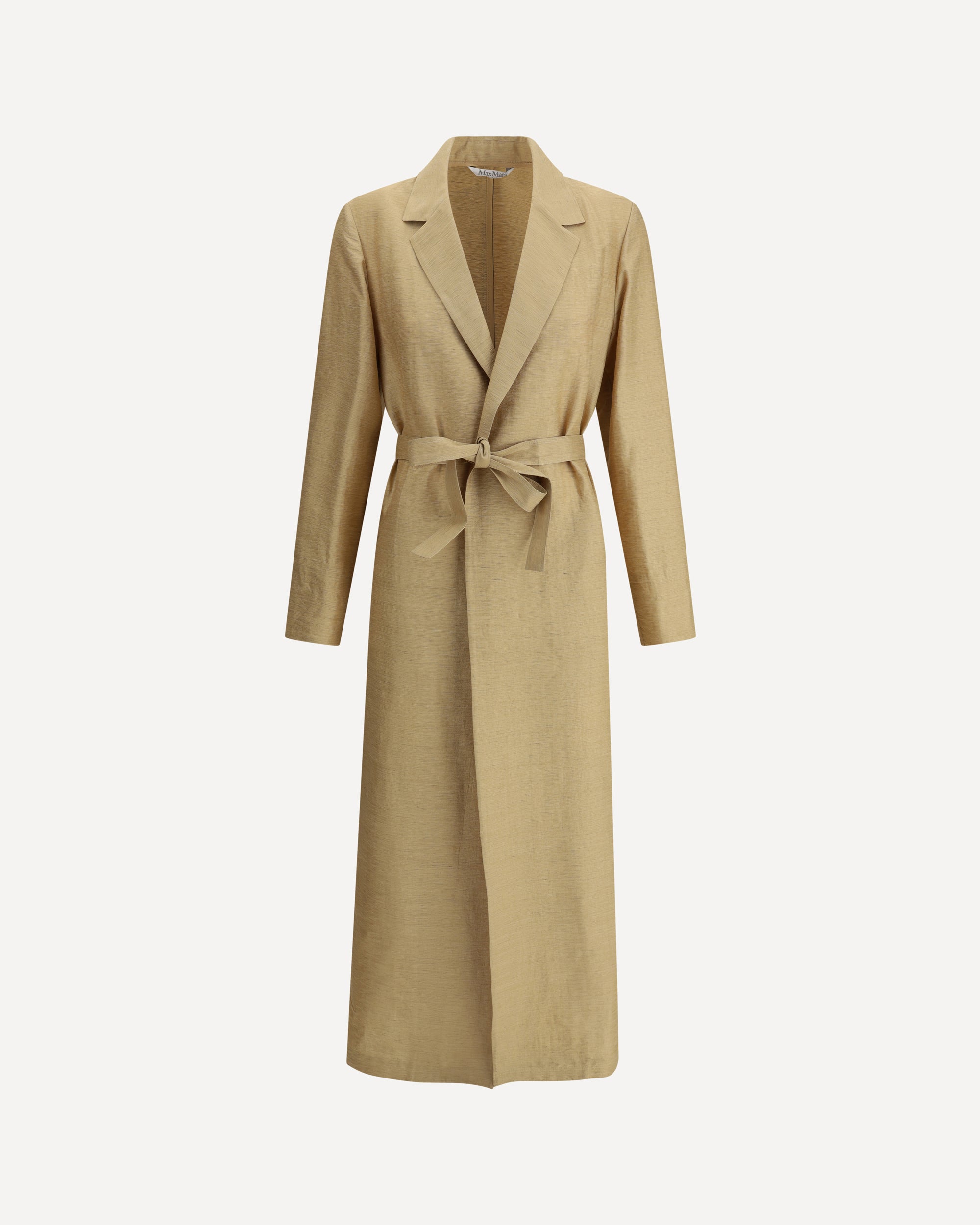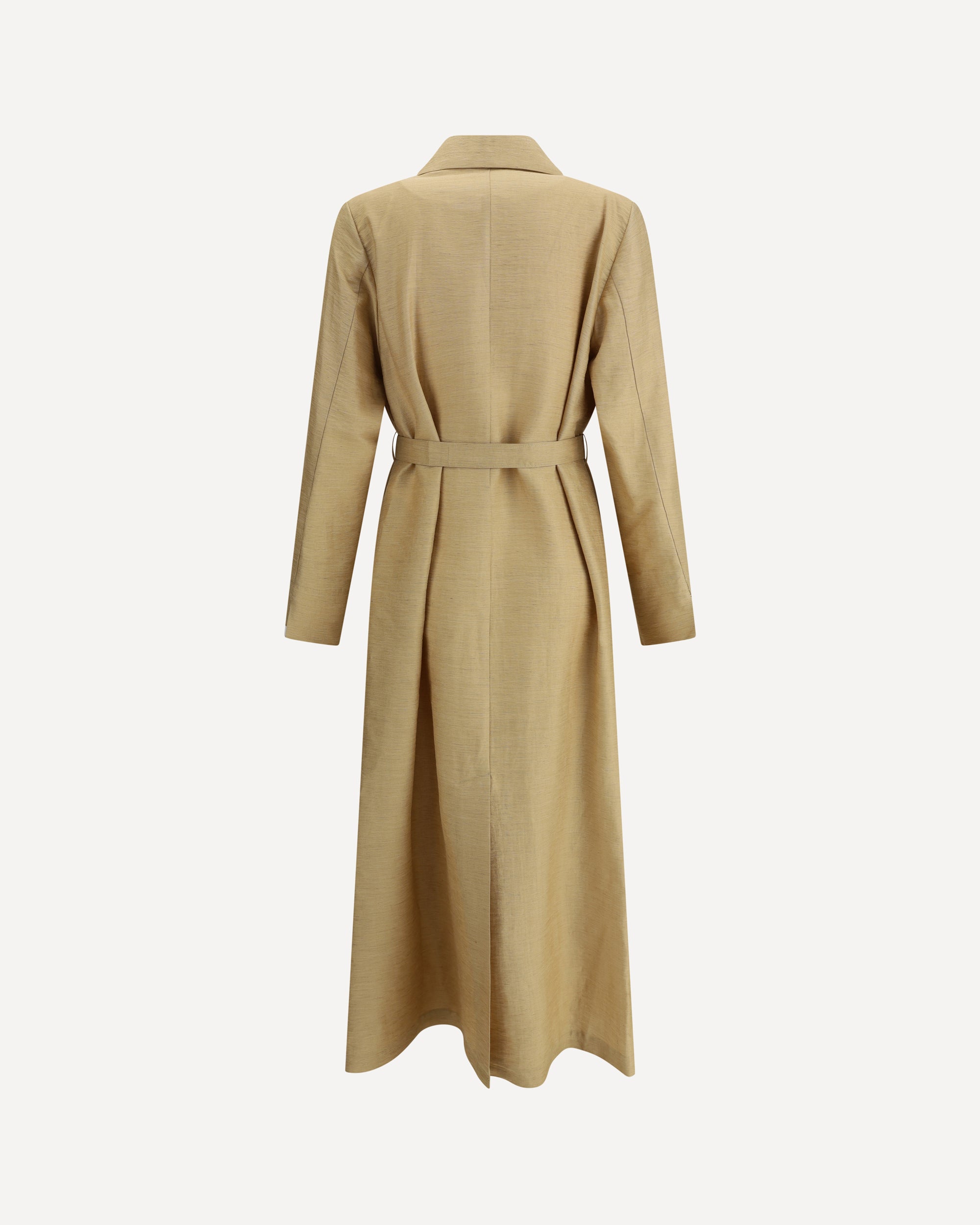 Max Mara Pure's Meandro Trench Coat is a sophisticated and timeless piece. Featuring a long style with a matching sash to tie at the waist, it has classic lapels and two side welt pockets. The shantung-effect design gives the fabric a slightly irregular and luminous texture, adding a touch of contemporary elegance.