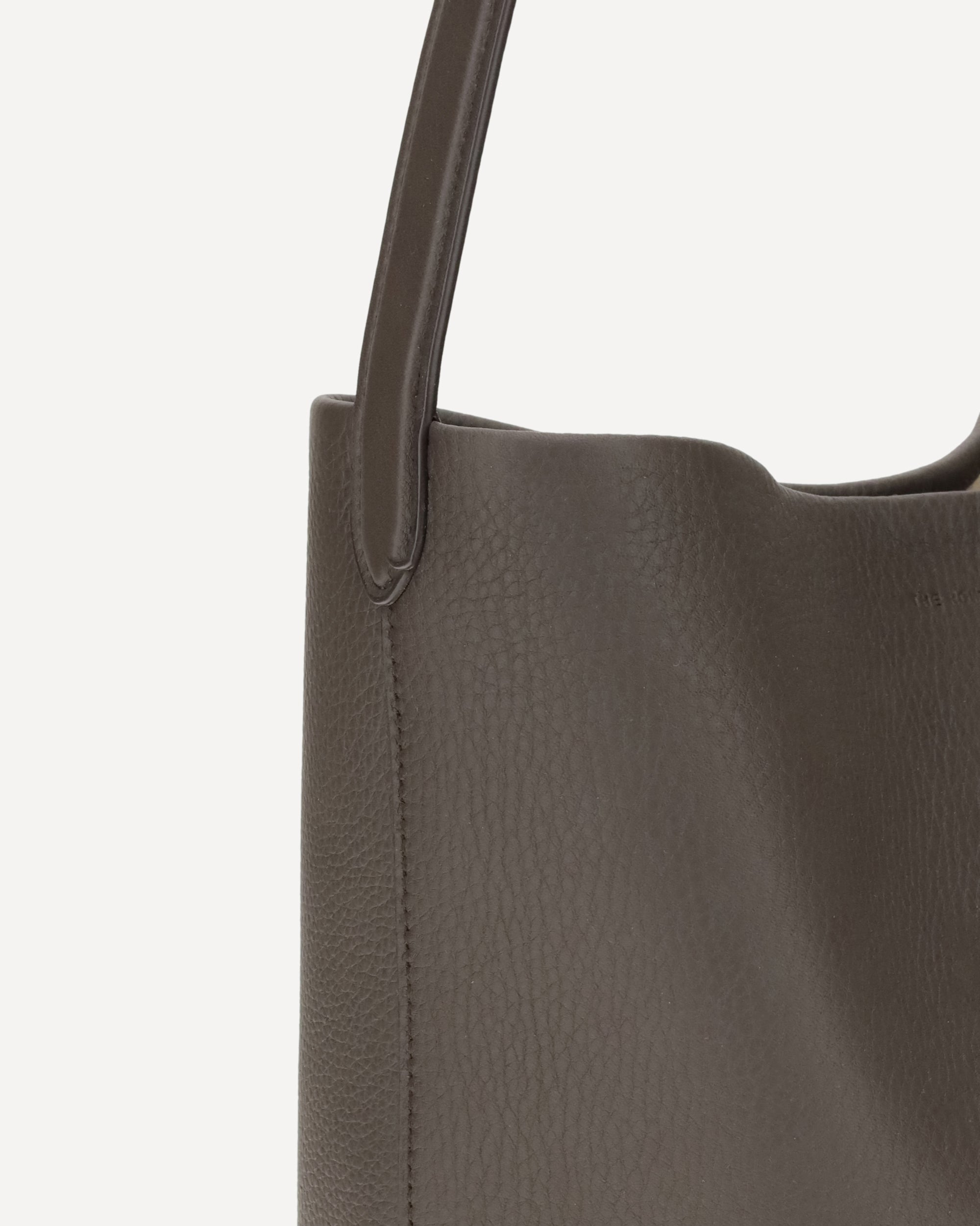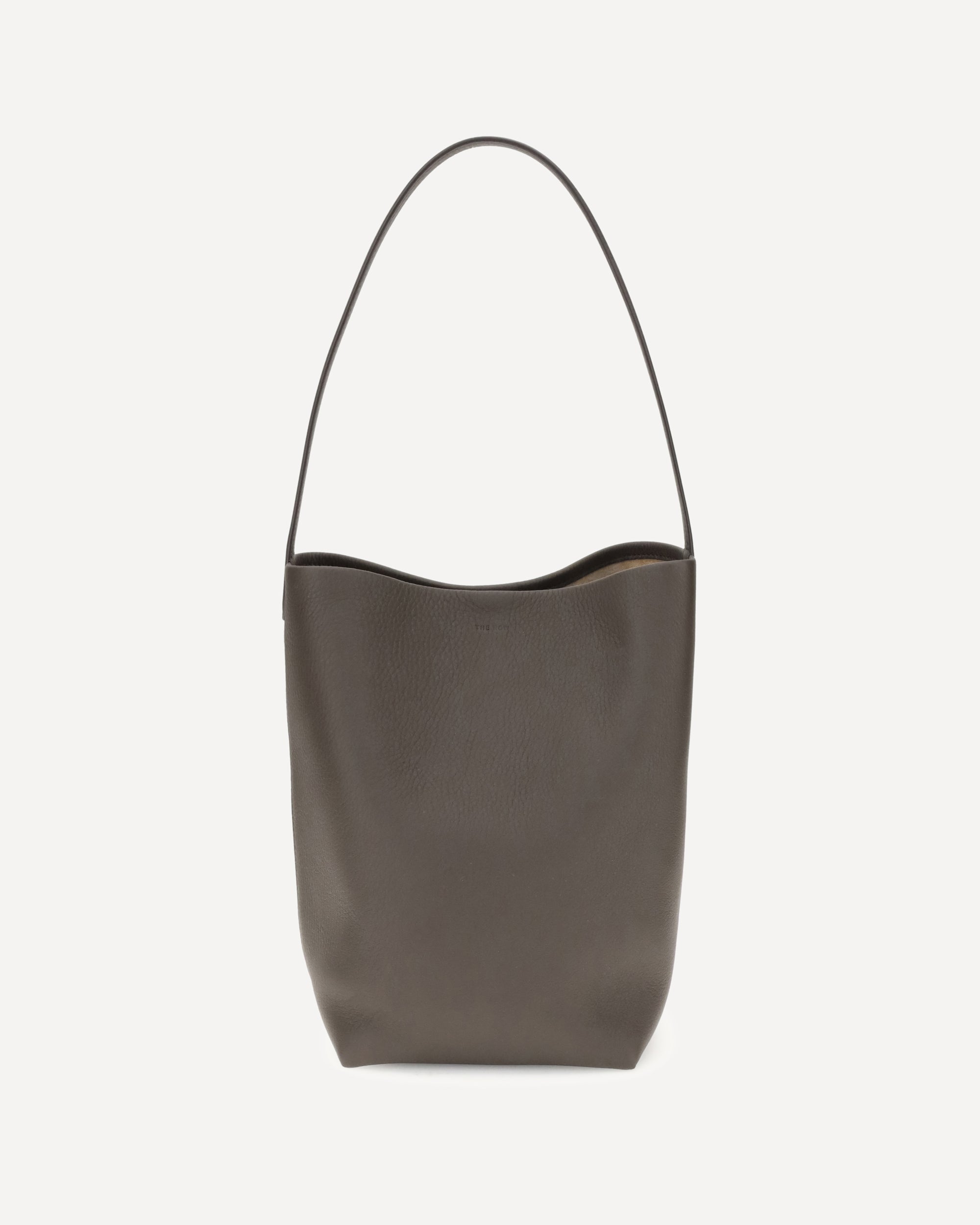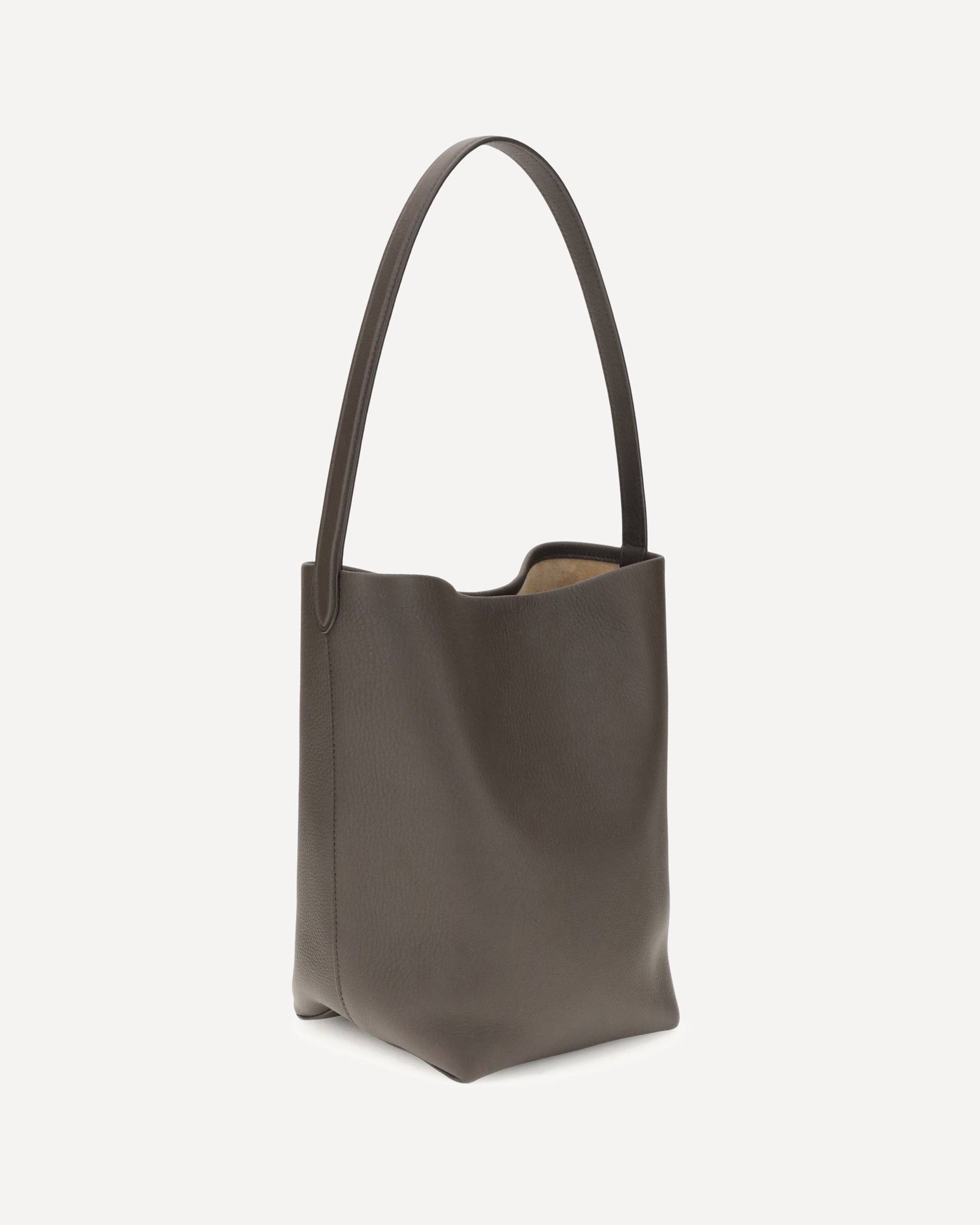 The Park medium leather Tote Bag by The Row is an elegant and refined accessory. Crafted from grained leather, it features a single flat handle at the top for convenient carrying. The brand's iconic signature is press-stamped on the front, while the interior closure is by means of knotted ribbons, adding a sophisticated and functional touch. Perfect for a minimalist and chic look.
