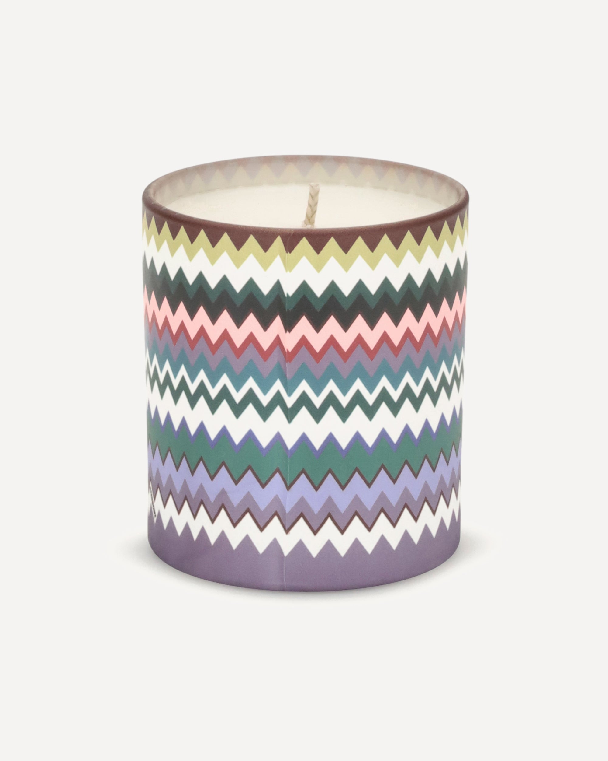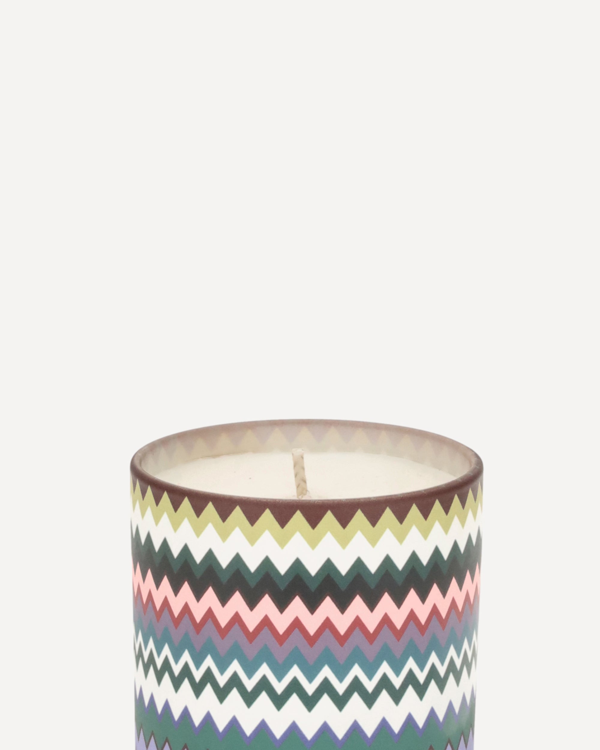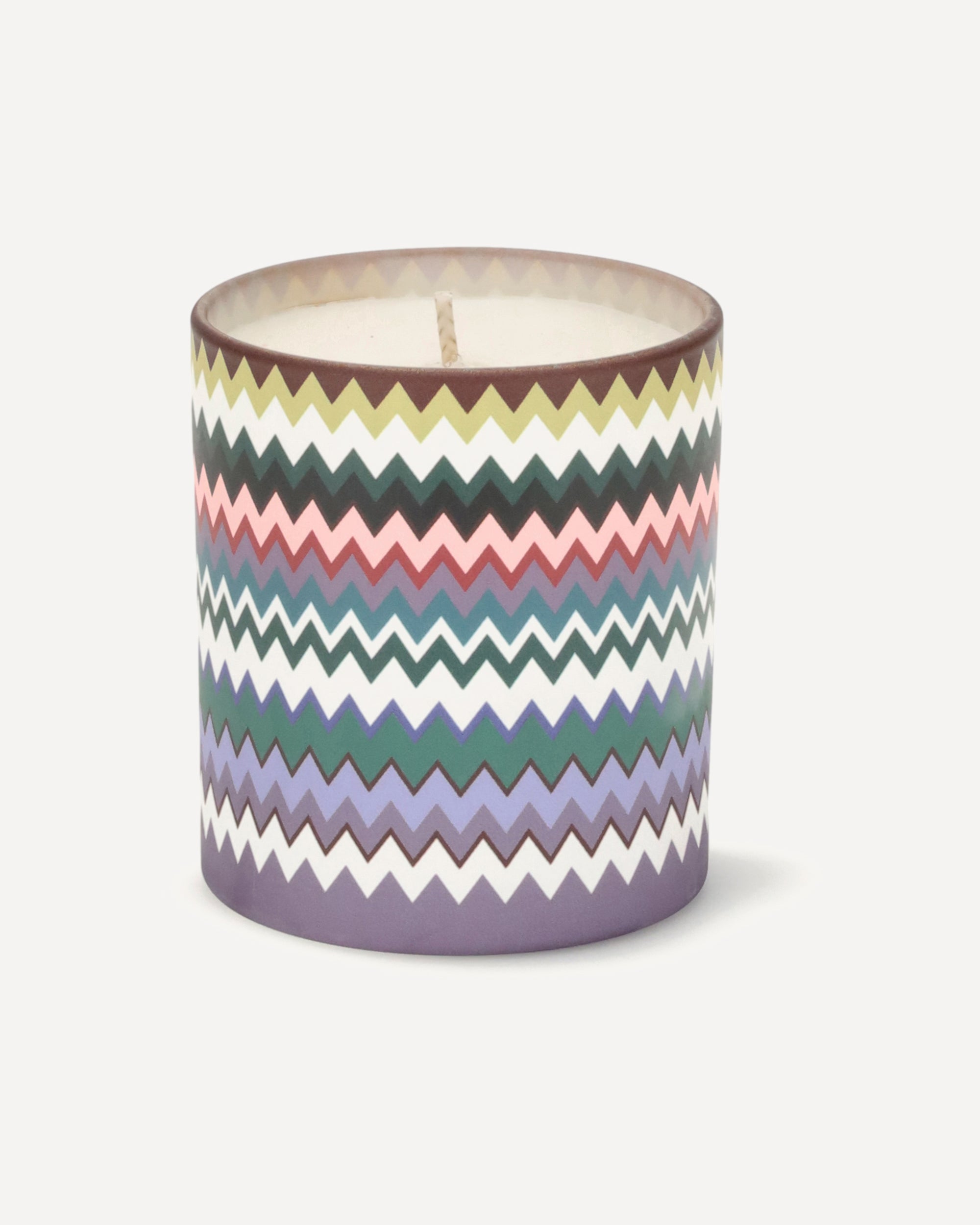 Zig Zag scented Candle by Missoni is an elegant furnishing element that combines design and atmosphere. Contained in a glass tumbler decorated with the Maison's iconic zig zag pattern, it releases an enveloping fragrance that lends warmth and personality to the environment. A refined detail that reflects Missoni's unmistakable style.