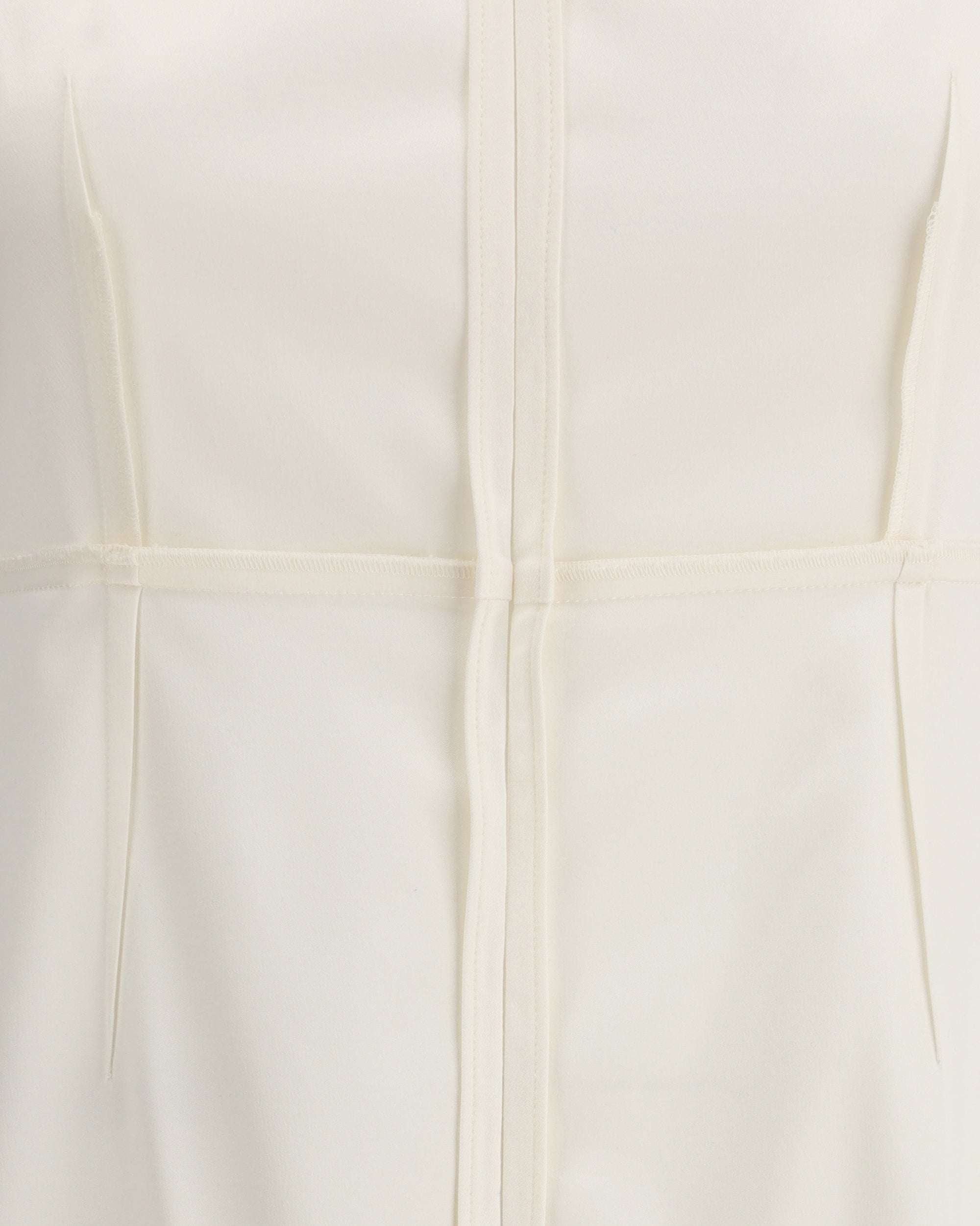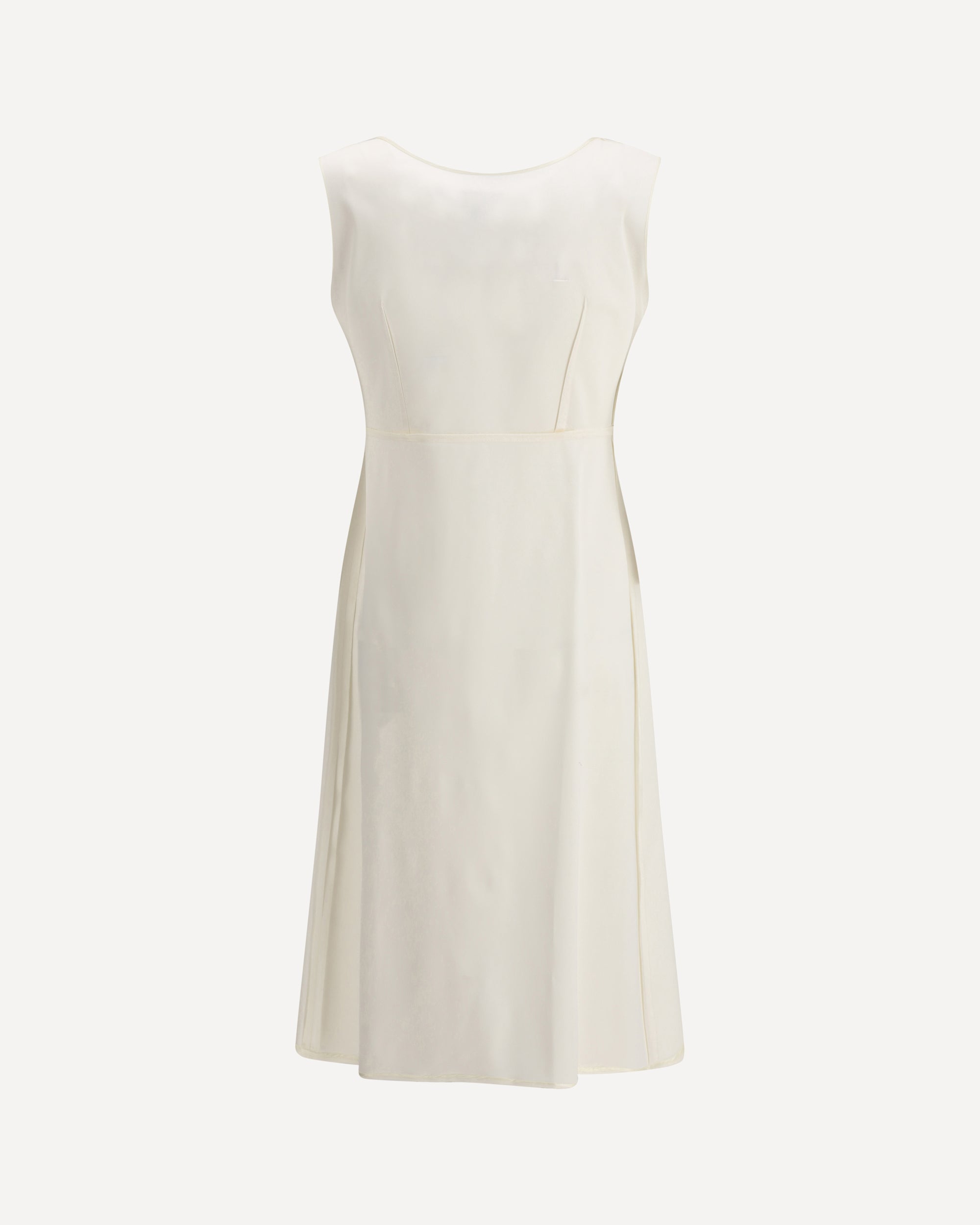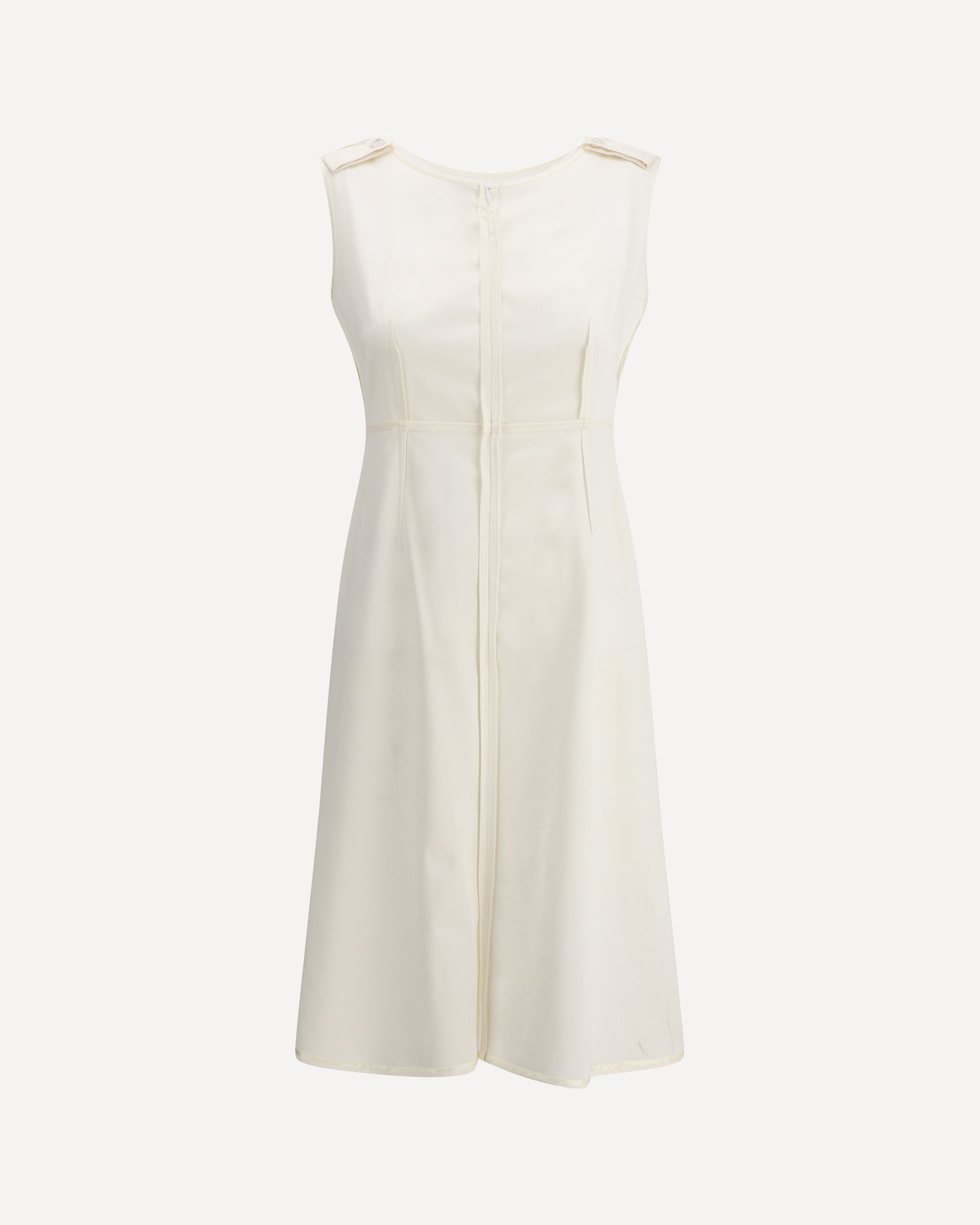 MM6's midi Dress is a modern and versatile piece perfect for elegant yet contemporary looks. The sleeveless style features a front zipper closure and a simple crew neck, while a slit on the front adds a dynamic and practical touch. A minimalist design that expresses sophistication and comfort.