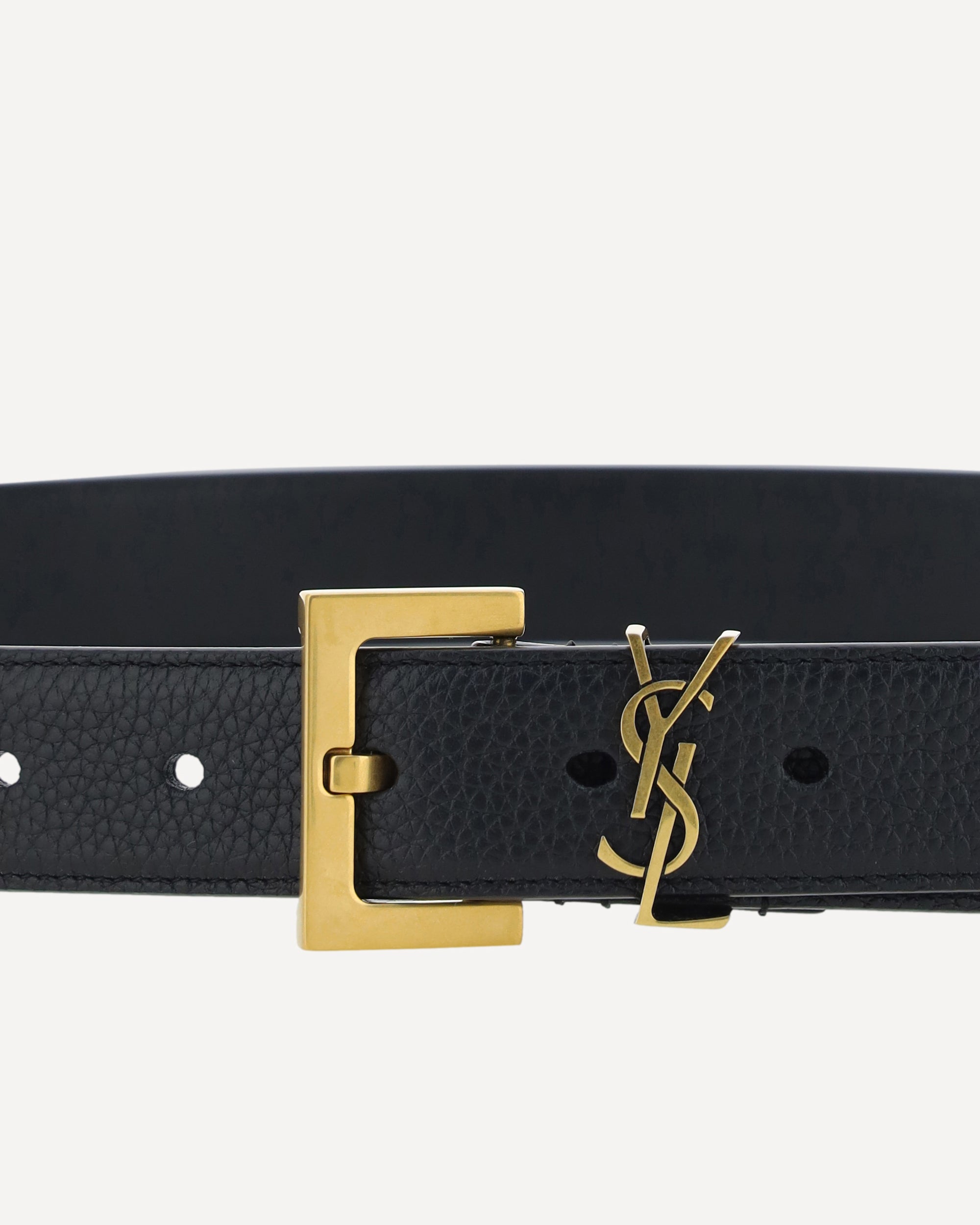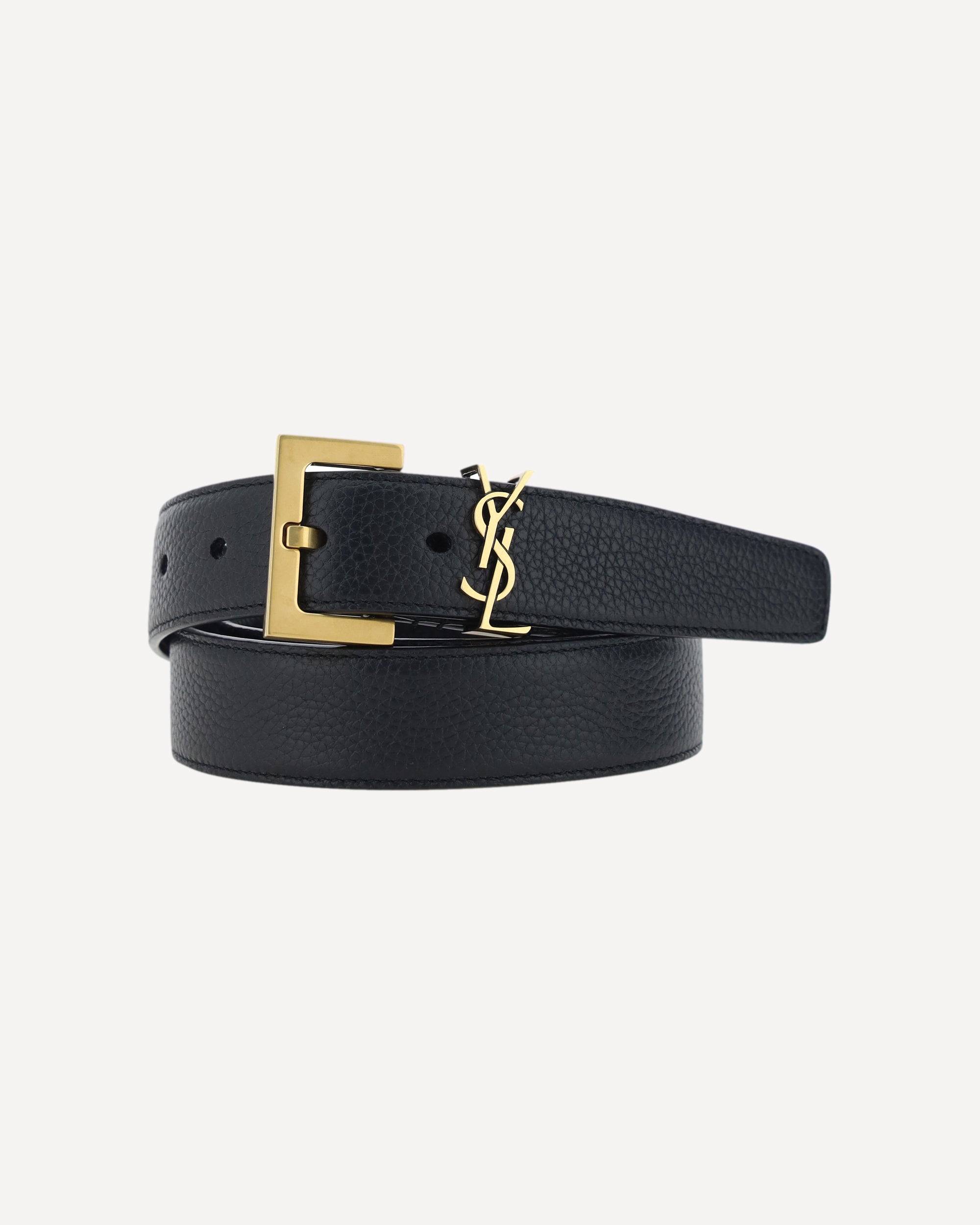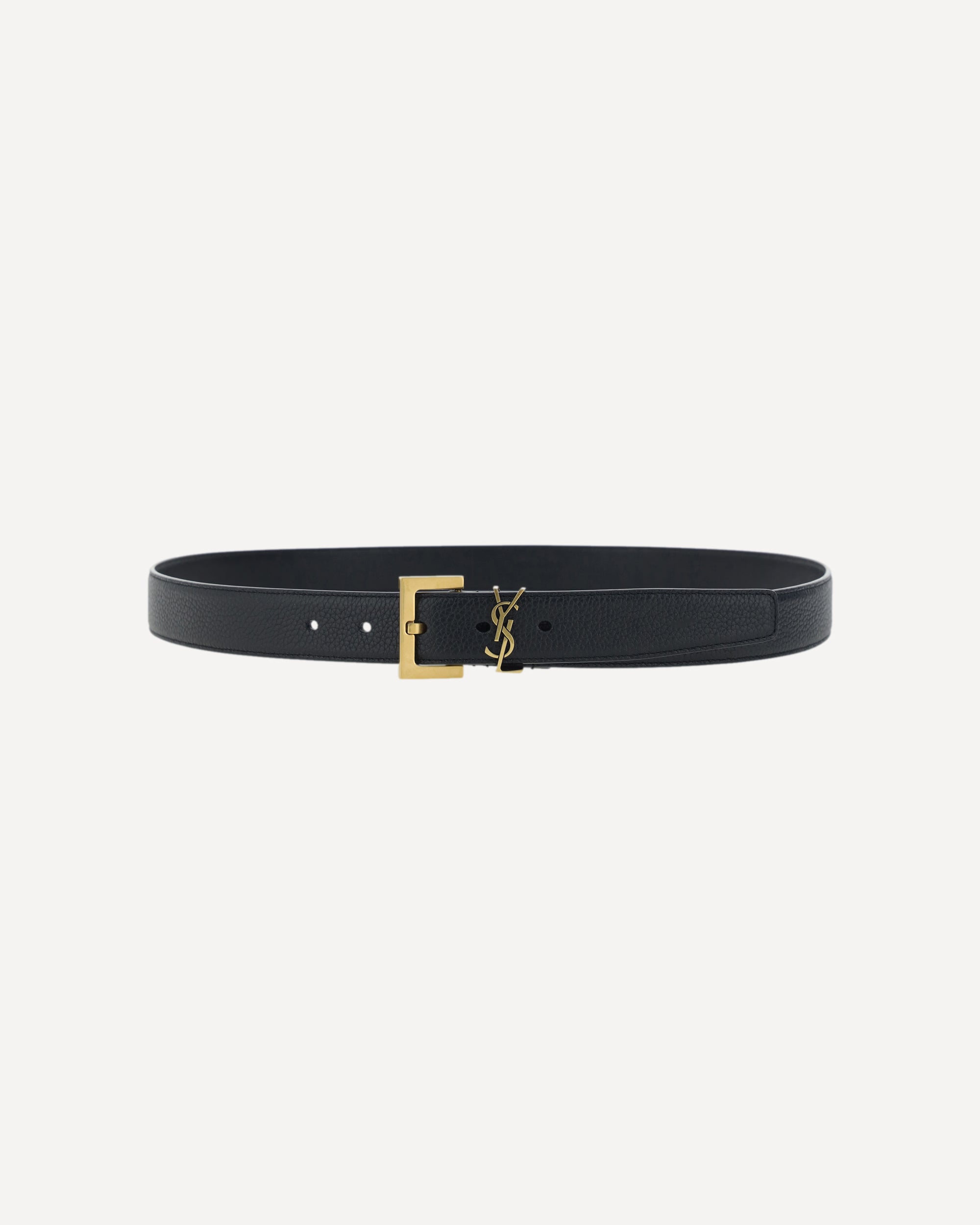 Calfskin Milo Belt by Saint Laurent, buckle with iconic gold-plated three-dimensional logo.