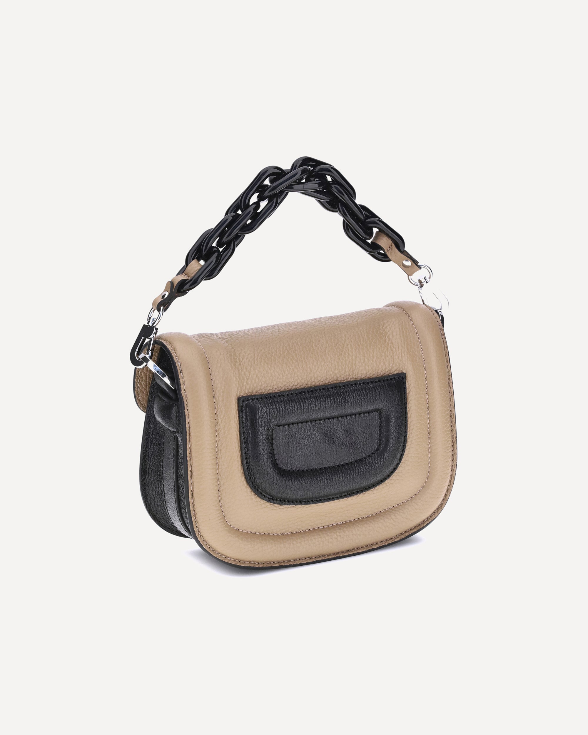 The Alphaville Shoulder Bag by Pierre Hardy is a luxury accessory that combines elegance and functionality in a sophisticated way. Crafted from high-quality leather, this bag features a removable top strap with a chain design, giving it a bold and contemporary touch. The front closure, with an interlocking flap, provides practical and elegant security. At the back, a welt pocket provides extra space for smaller items, ensuring easy access. The flat, adjustable and removable leather shoulder strap offers versatility, allowing it to be worn over the shoulder or cross-body, as needed. The interior features a single compartment, perfect for organizing essentials in style.