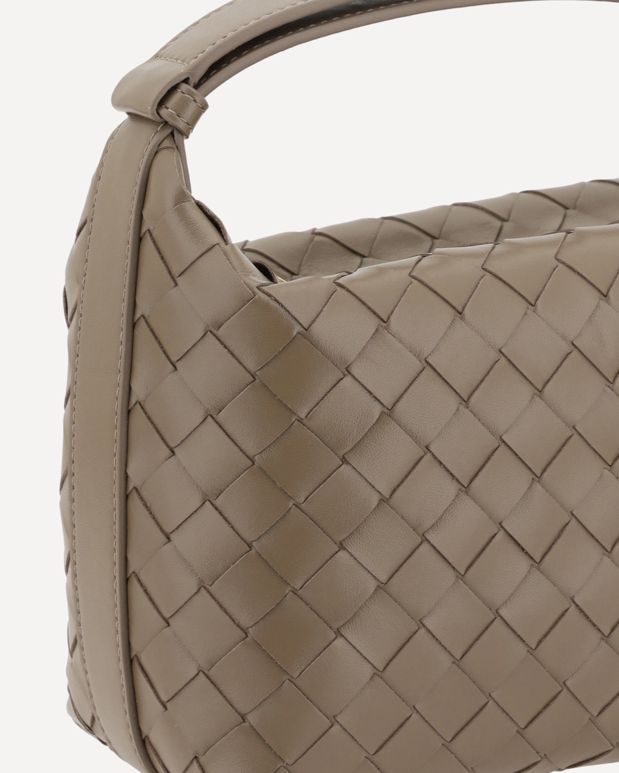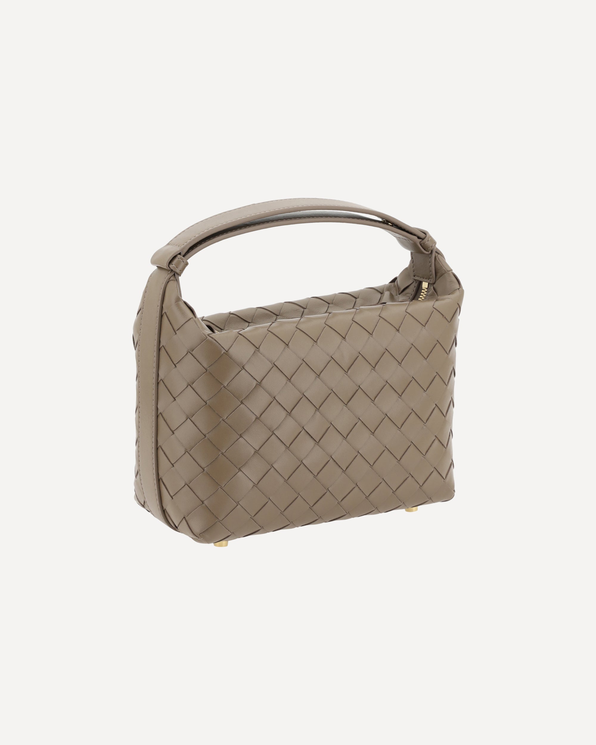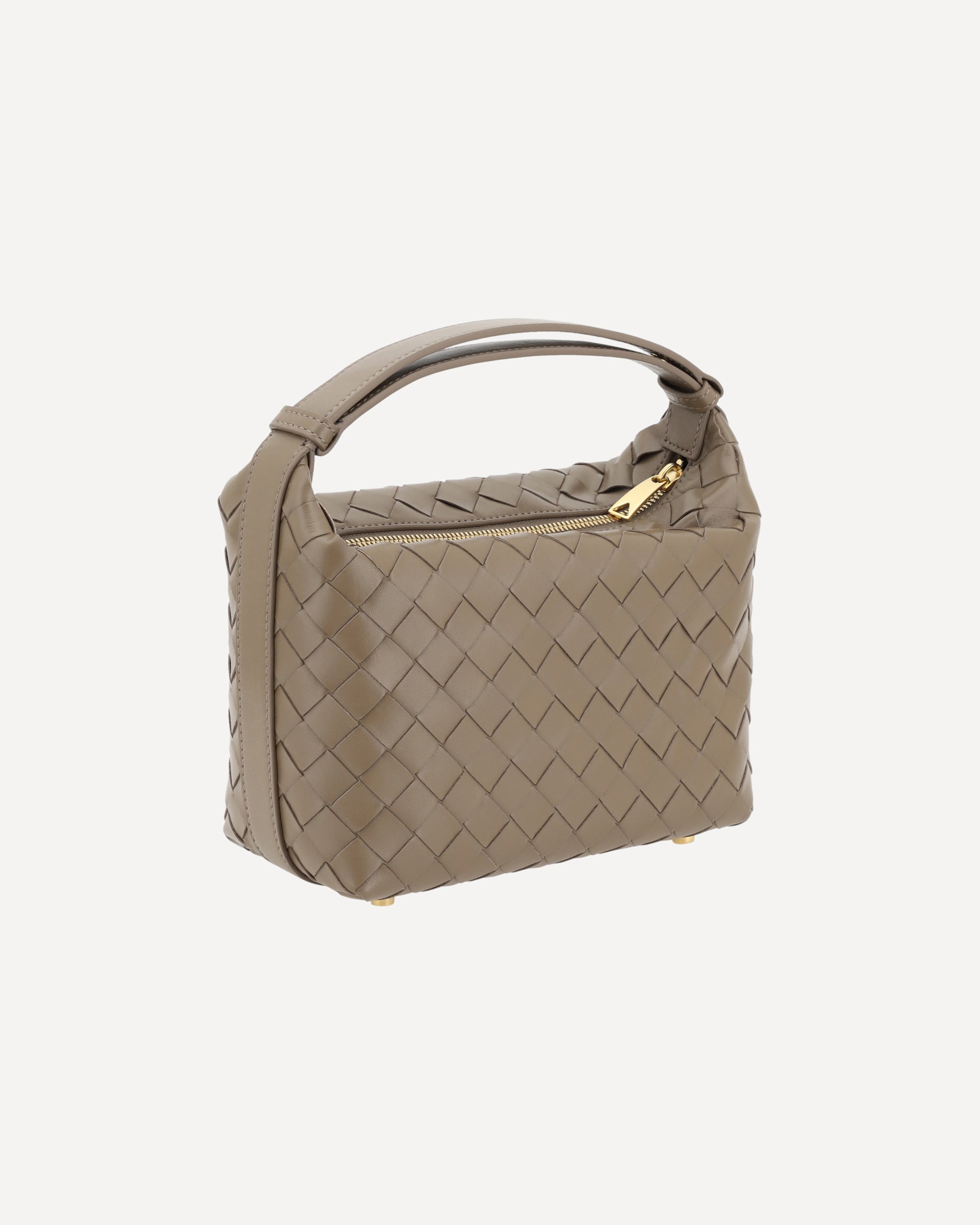 The Wallace Mini Leather Hand Bag by Bottega Veneta is a masterpiece of elegance and practicality. The flat handle, adjustable via snap buttons, allows you to easily adapt it to your needs. The zipper closure provides security, while the brand's iconic all-over repeated woven design lends a distinctive and refined character. With a single interior compartment and metal support feet attached to the base, this bag combines functionality and luxury in a compact and sophisticated format.