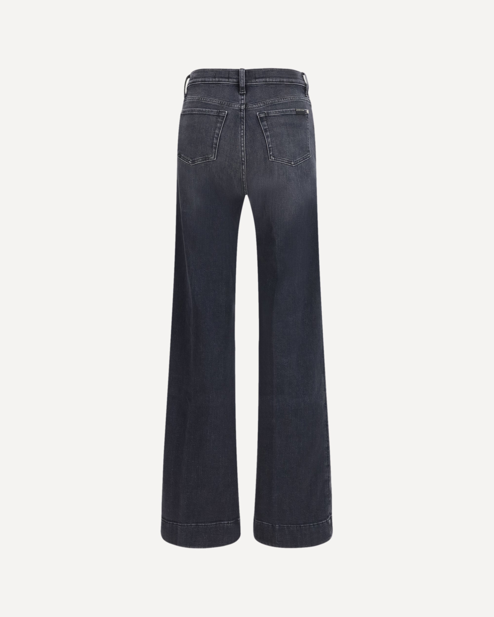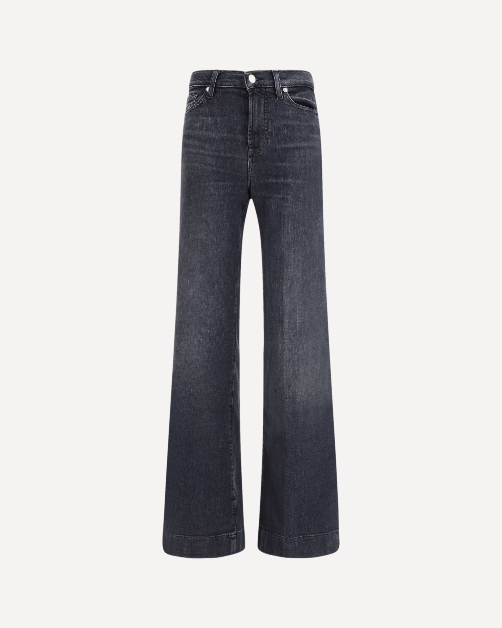 The Modern Dojo Jeans in Slim Illusion by 7For reinterpret the iconic flared silhouette with a modern edge. Designed with a high-rise waist, they feature a wider flare than the original Dojo style, while remaining fitted through the hips and thighs before opening into a dramatic flare at the hem. The soft, sculpting denim smooths, lifts and enhances the figure, delivering comfort and support like a true denim embrace. Finished with a zip and button fastening and a clean back pocket design.