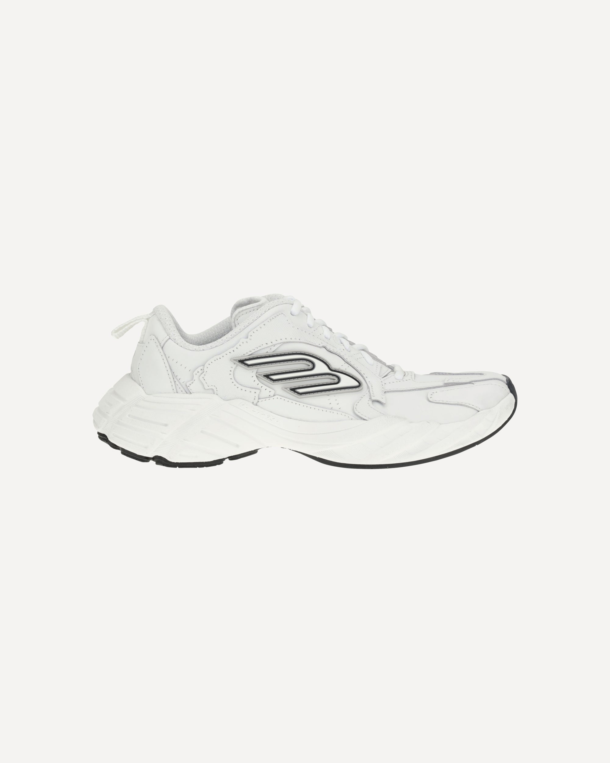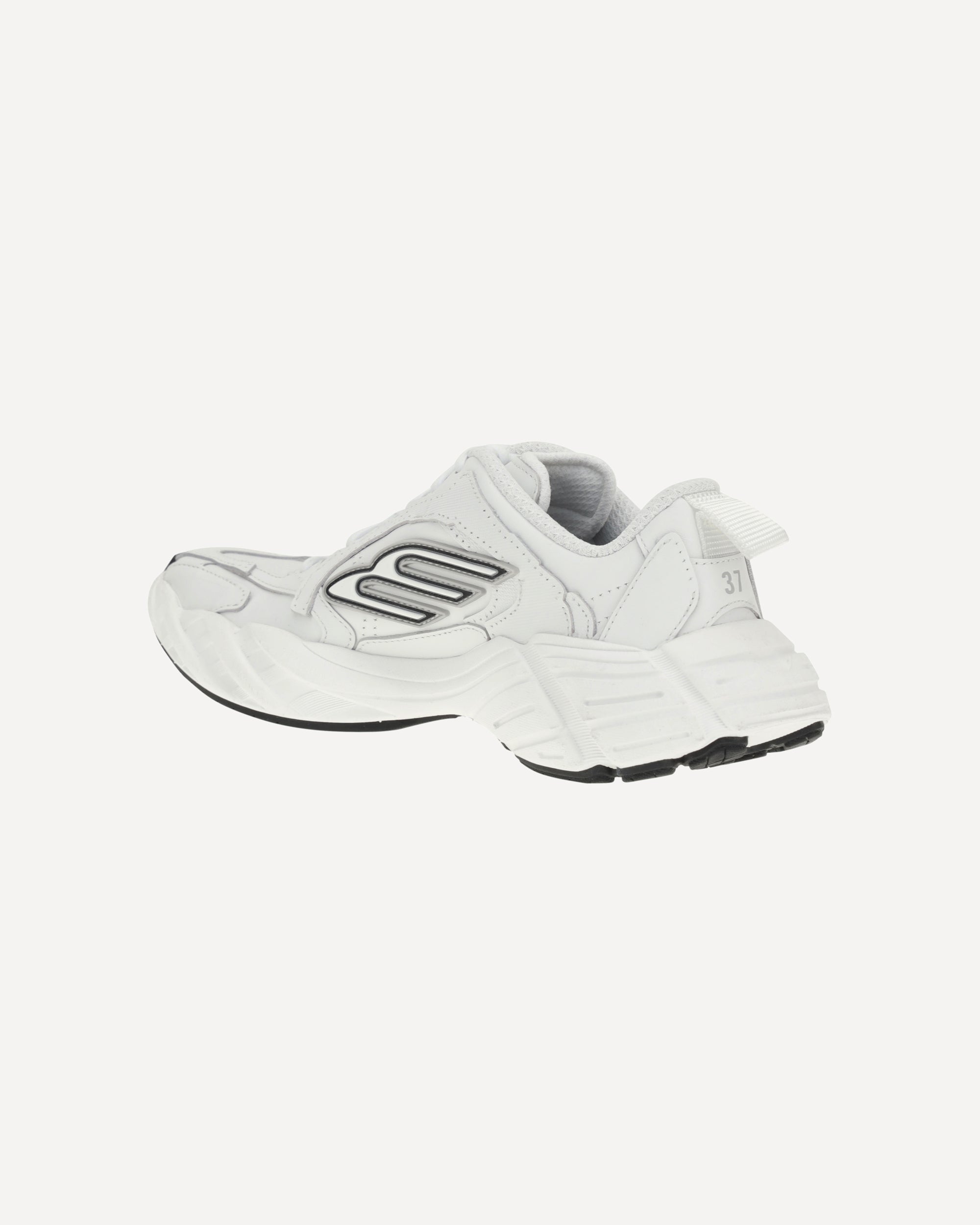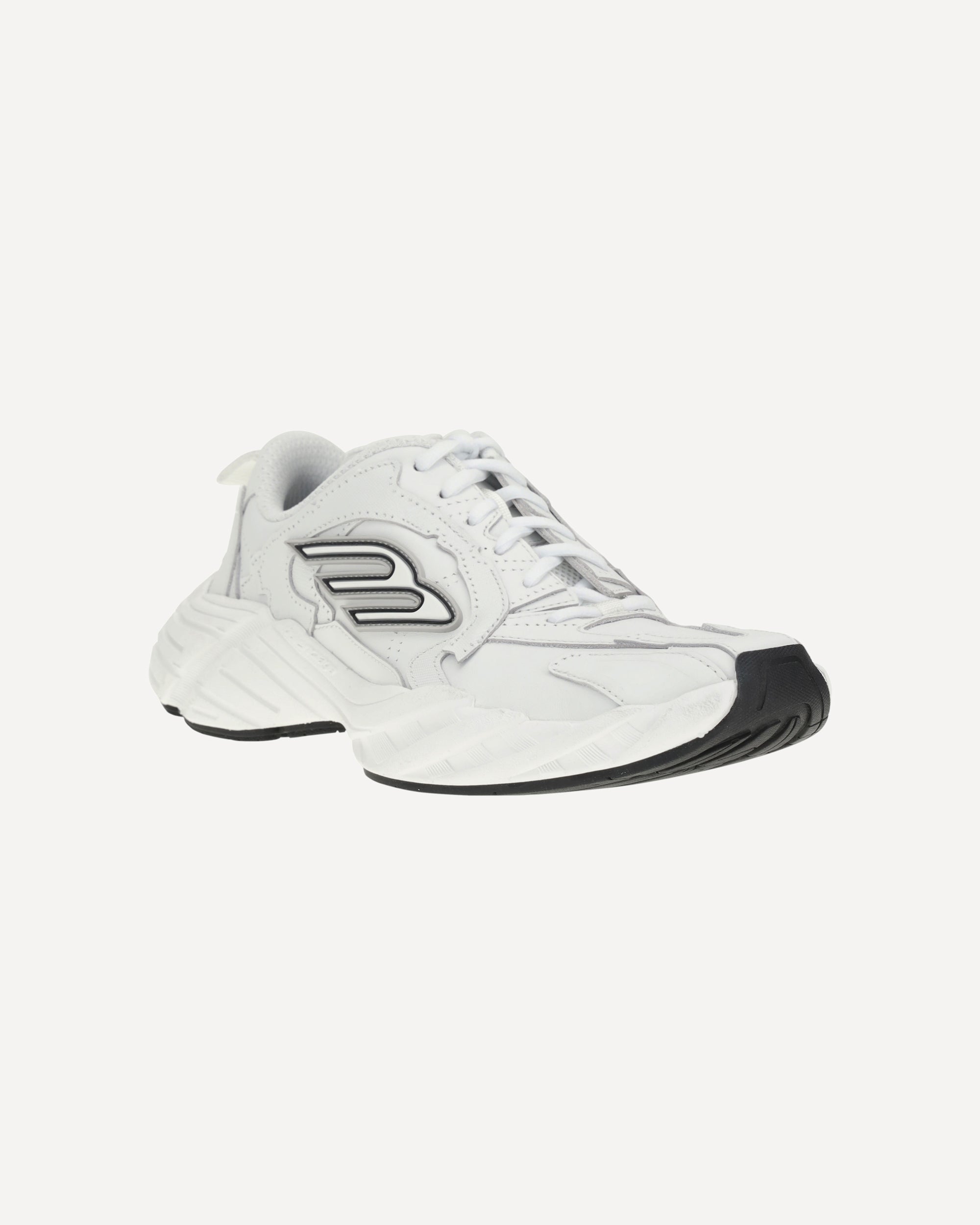 Balenciaga's Monday Sneakers combine a sporty aesthetic with refined details. Featuring exposed topstitching, they feature the embossed size on the back of the heel and the 3B Sports Icon rubber motif on both sides, also replicated in an embossed version on the tongue. The Balenciaga logo, also embossed, appears on the outside of the sole, while a handy heel loop completes the design. A dynamic and distinctive model, perfect for those seeking an urban style with a strong identity.