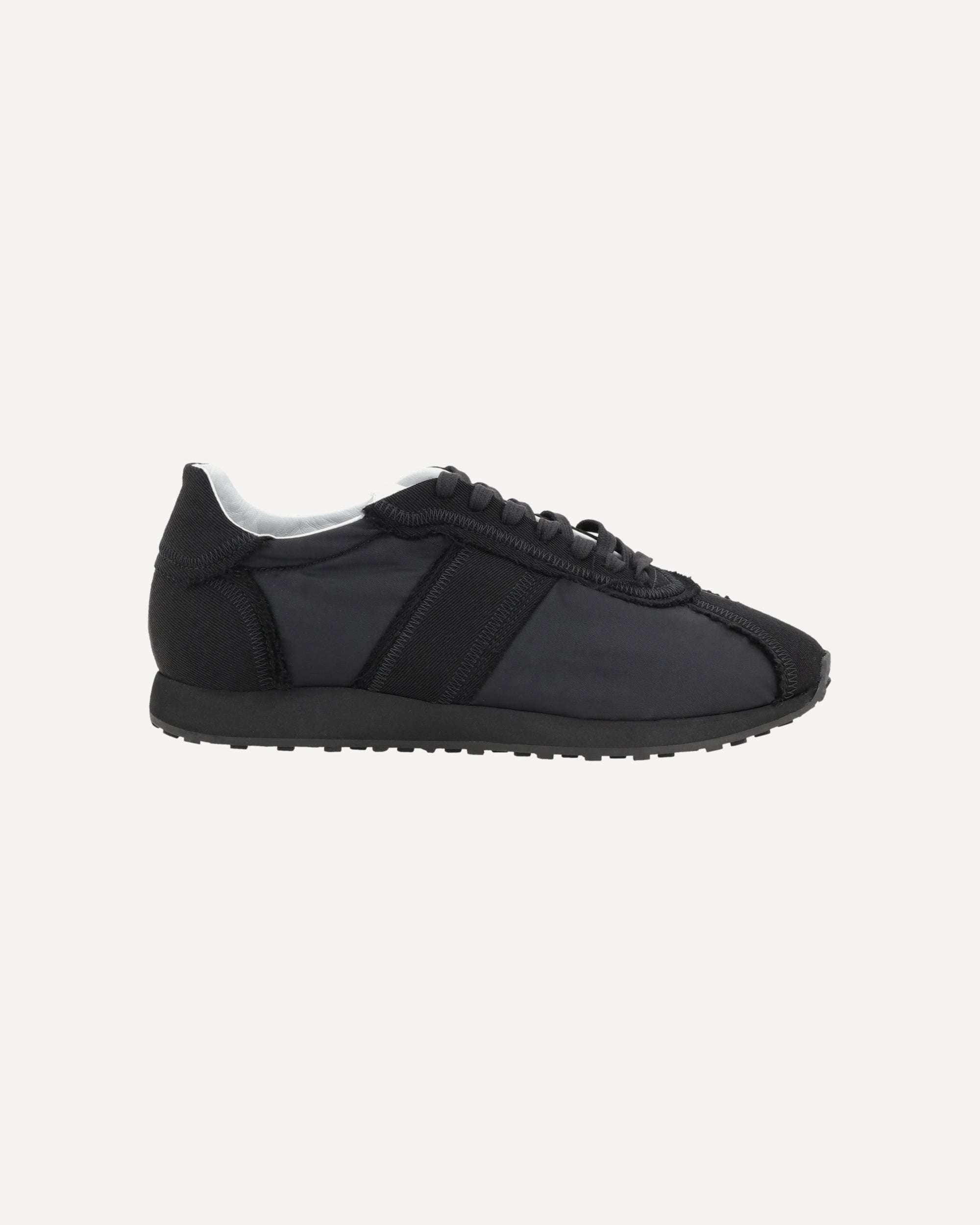 Moveo Sneakers by The Row feature a lace-up front closure and a round toe. The side panels are embellished with tone-on-tone slanted bands, while the strappy detail adds a distinctive, modern accent. The branded insole completes the minimalist and sophisticated design.