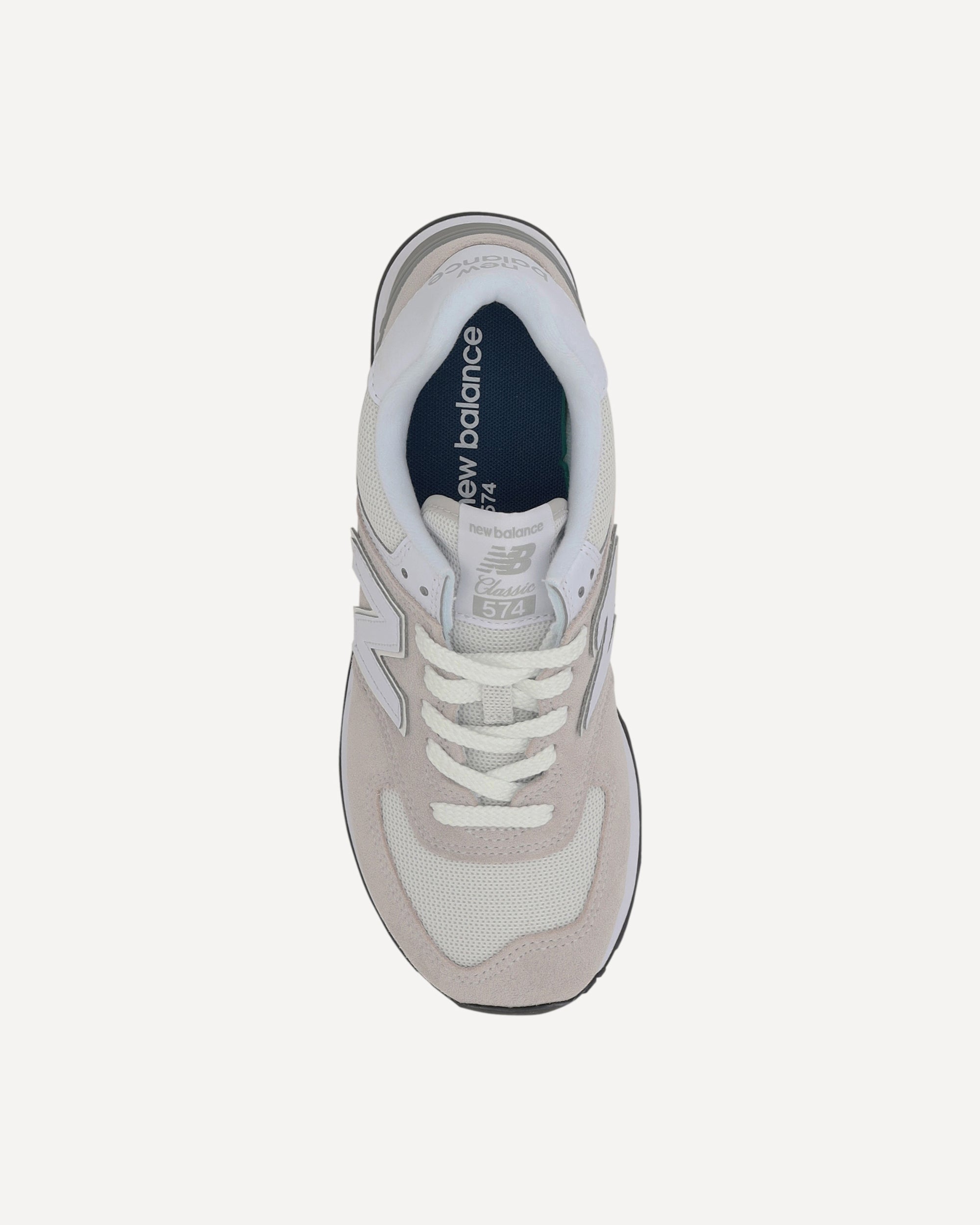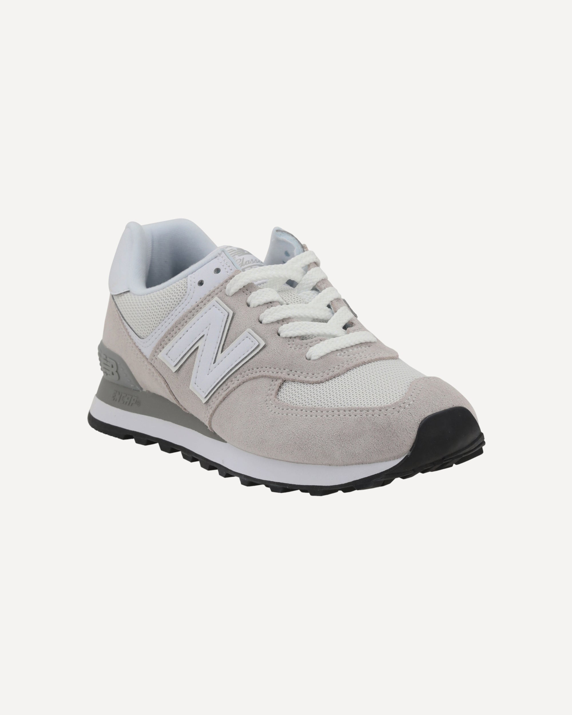 New Balance's 574 Sneakers combine sporty style and comfort. The mesh upper with suede details ensures breathability and durability. The lace-up front closure ensures a stable fit, while the elongated toe gives a streamlined look. Raised, reinforced rubber outsole provides cushioning and support. The iconic contrasting logo patch on the side panels and the branded front tab complete the design with a distinctive touch.