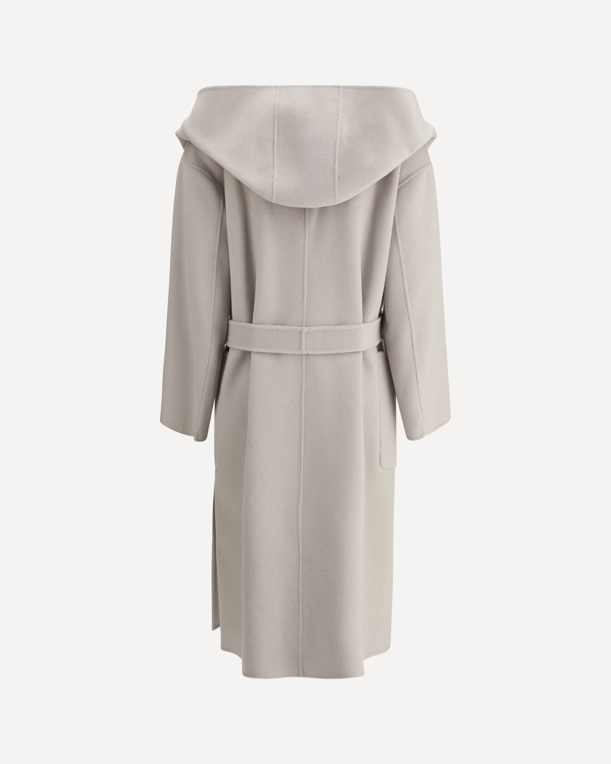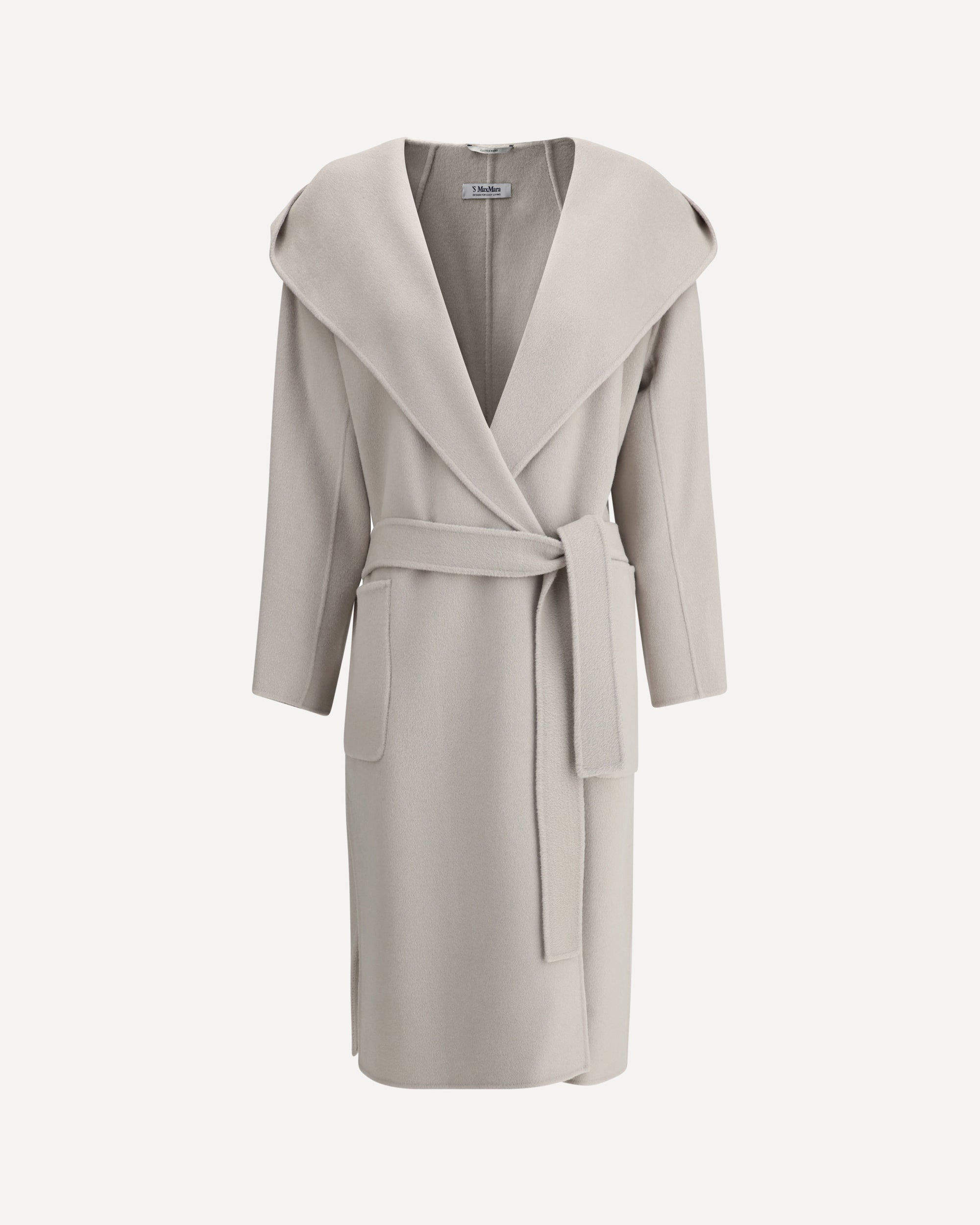 'S Max Mara's Nicolo Coat is a modern and sophisticated garment made of fine wool to provide warmth and comfort. The hooded design adds practicality and protection, while the shawl lapels lend a touch of elegance. The two side patch pockets provide useful space without compromising the clean design, while the two side slits provide more freedom of movement. The matching sash, which can be tied at the waist, allows you to customize the fit, highlighting the silhouette. A versatile and chic coat, ideal for those seeking a stylish and functional style.