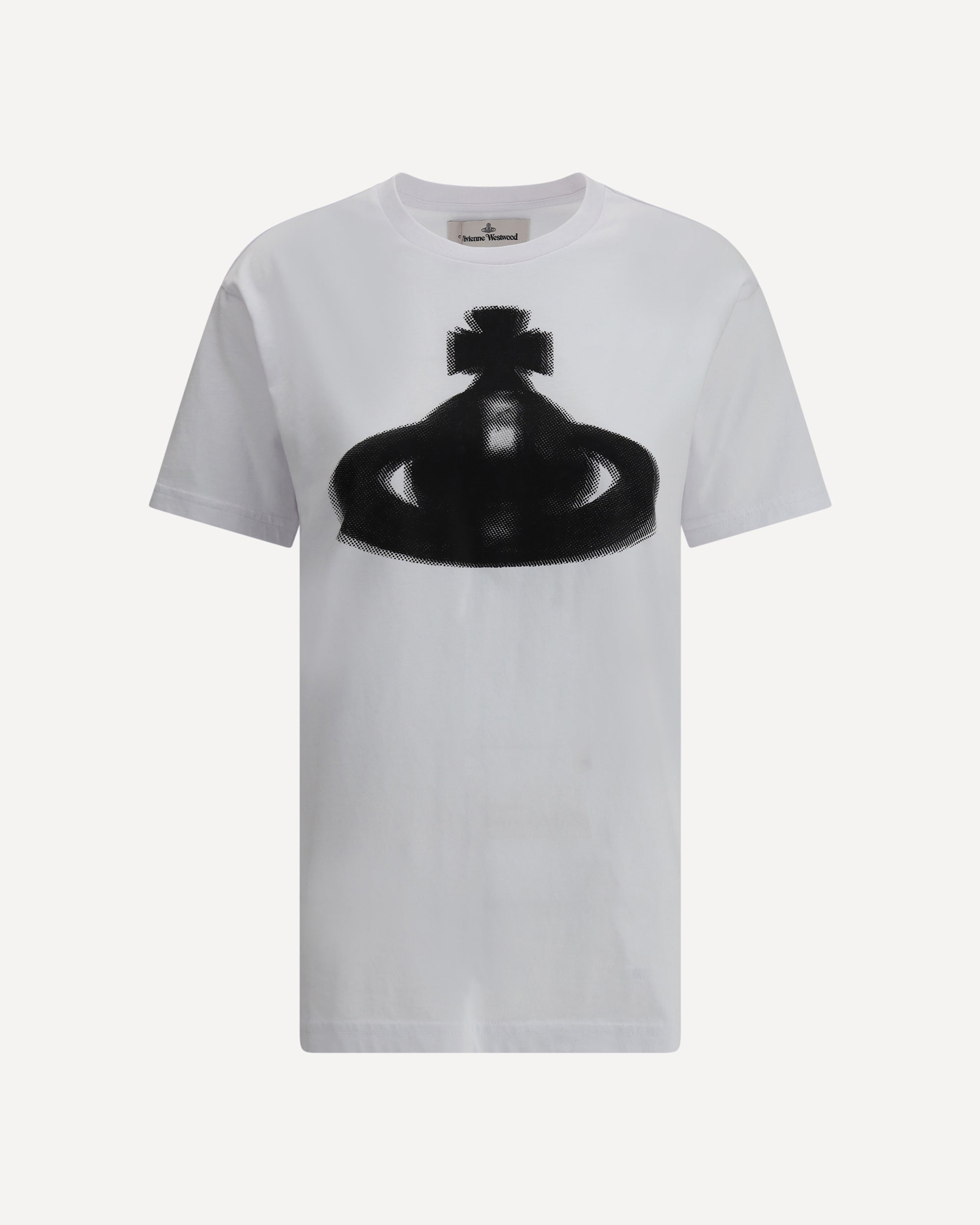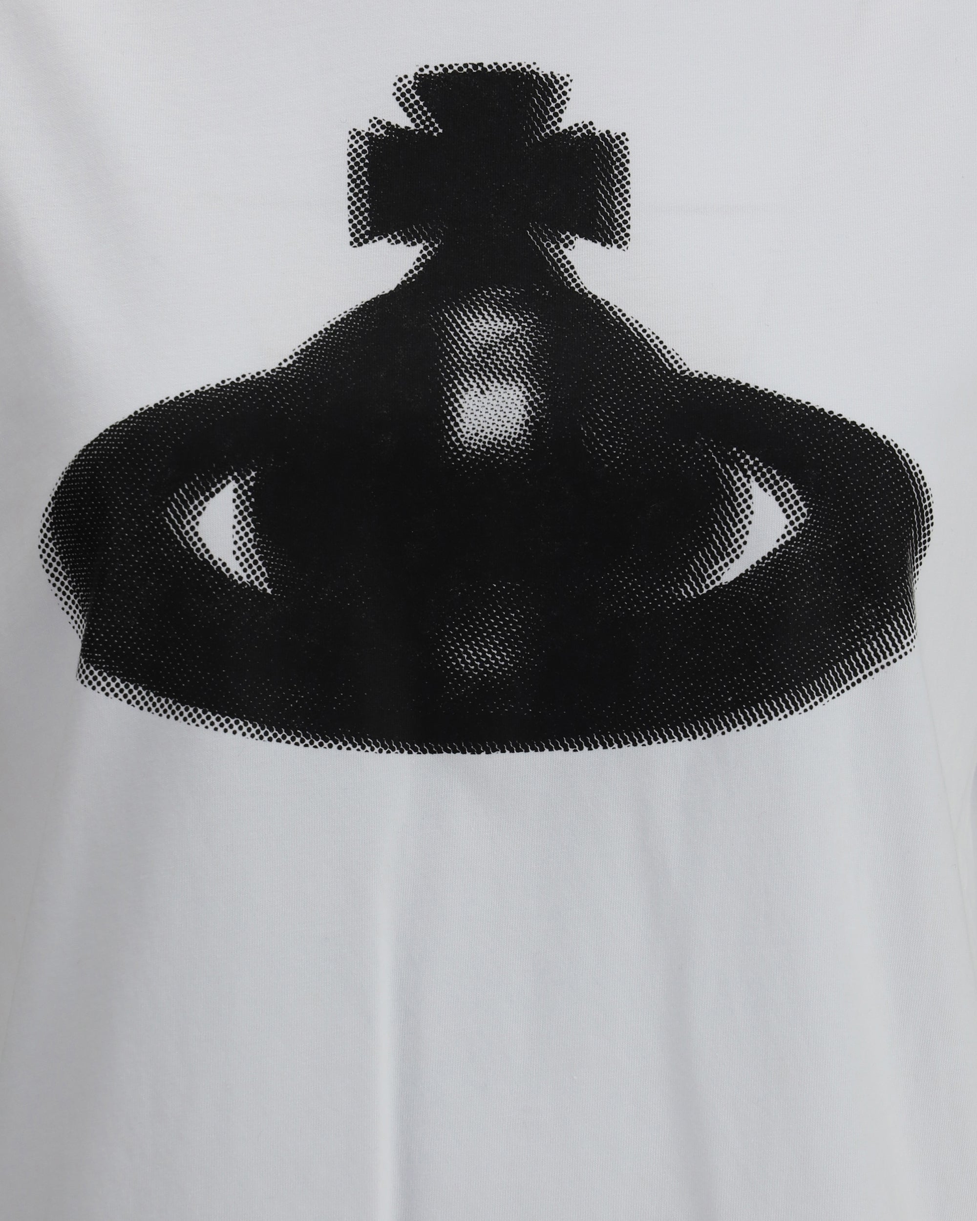 The Orb T-shirt by Vivienne Westwood is an iconic piece that combines simplicity and the distinctive character of the brand. The ribbed crew neck ensures a comfortable and comfortable fit, while the iconic logo of the brand printed on the front becomes the focal point of the design, adding a touch of recognition and style. The t-shirt, with its clean design, is perfect for a casual-chic look, easy to combine with jeans, trousers or skirts to create a sophisticated but relaxed outfit.