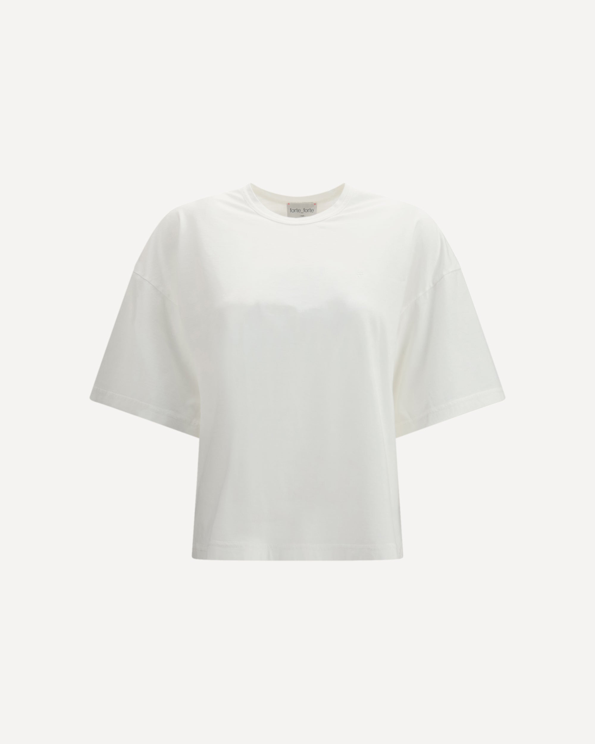 The oversized cotton jersey T-shirt by Forte Forte is crafted from organic cotton jersey and defined by a relaxed, contemporary silhouette. The clean design is subtly signed by the embroidered “ff” motif placed high on the left side, a discreet yet distinctive brand detail. An essential piece with a refined attitude, designed to bring ease and quiet character to everyday dressing.