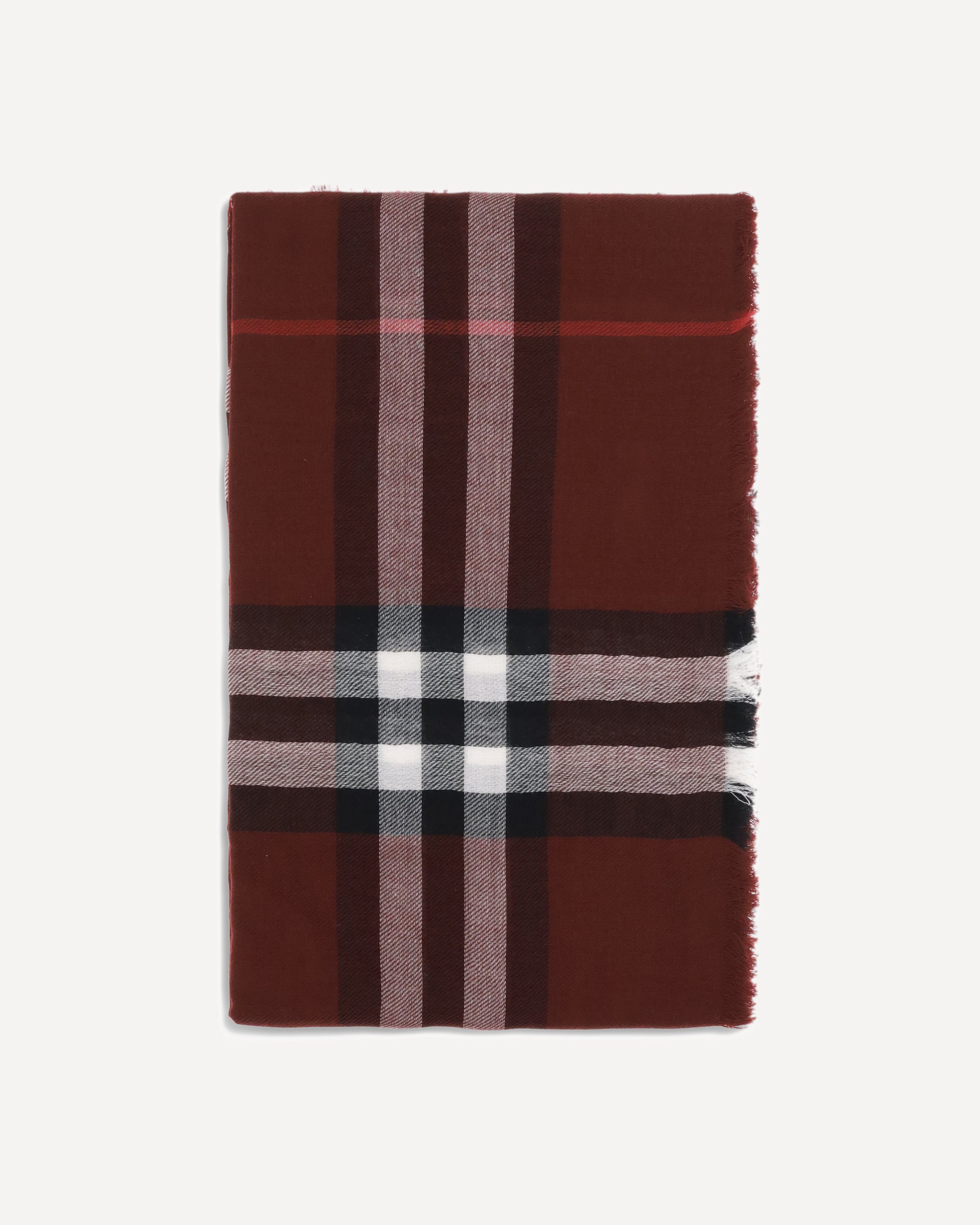 The wool Check wide Scarf by Burberry is a lightweight and refined accessory, crafted in Italy from soft wool and embellished with the iconic Burberry Check woven motif that underscores its timeless elegance.The rectangular shape and short, subtle bangs along the edges complete a versatile and sophisticated design, perfect for adding a distinctive touch to any outfit.