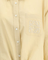 Loewe's Oversize Shirt, part of Paula's Ibiza collection, is a garment with a relaxed, contemporary style. Featuring a classic collar and front button closure, it features a patch pocket on the front with an embroidered logo, adding a distinctive touch. The adjustable drawstring hem allows for a customized fit, making it perfect for a casual yet sophisticated look inspired by Ibiza's casual elegance.