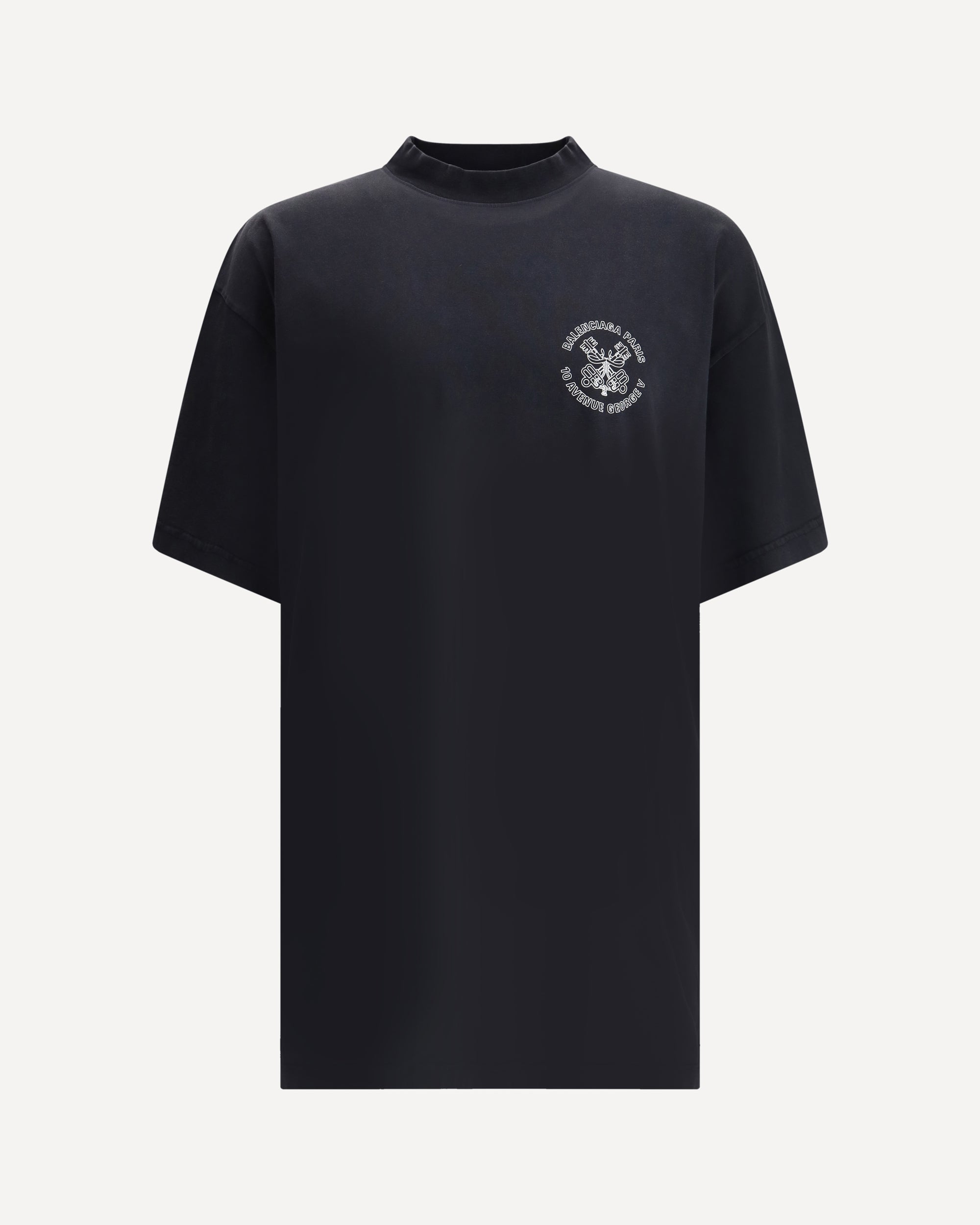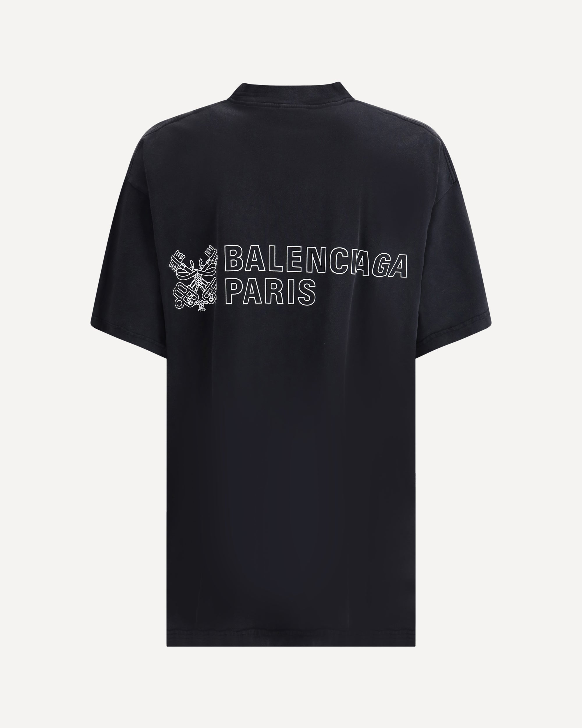 Balenciaga's Oversize T-shirt features a ribbed crew neck, adding a classic and functional detail to the design. The brand's iconic signature and logo are contrastingly printed on both the back and front, making the garment instantly recognizable and distinctive. The oversized fit lends a comfortable and contemporary look, perfect for a casual yet sophisticated style.