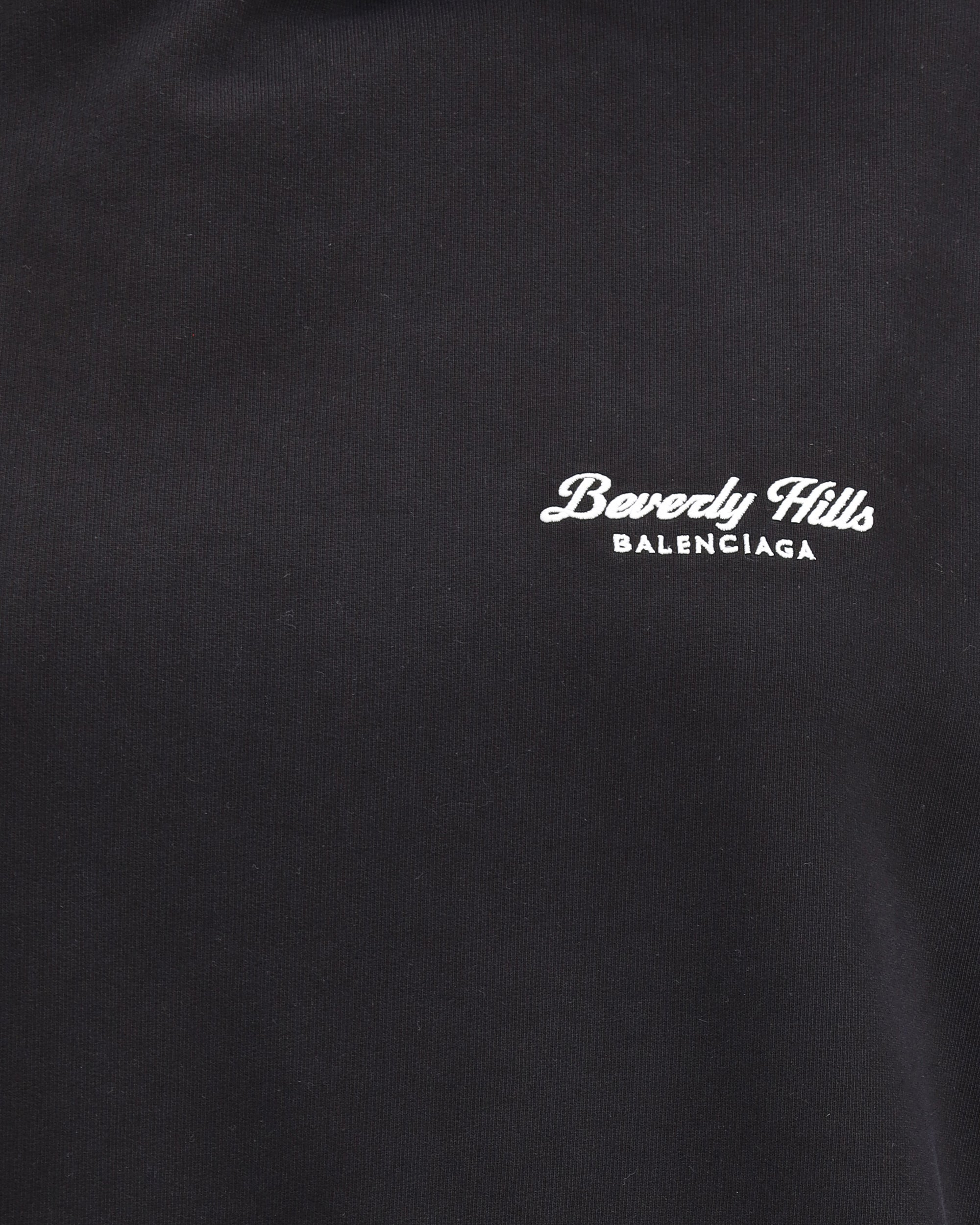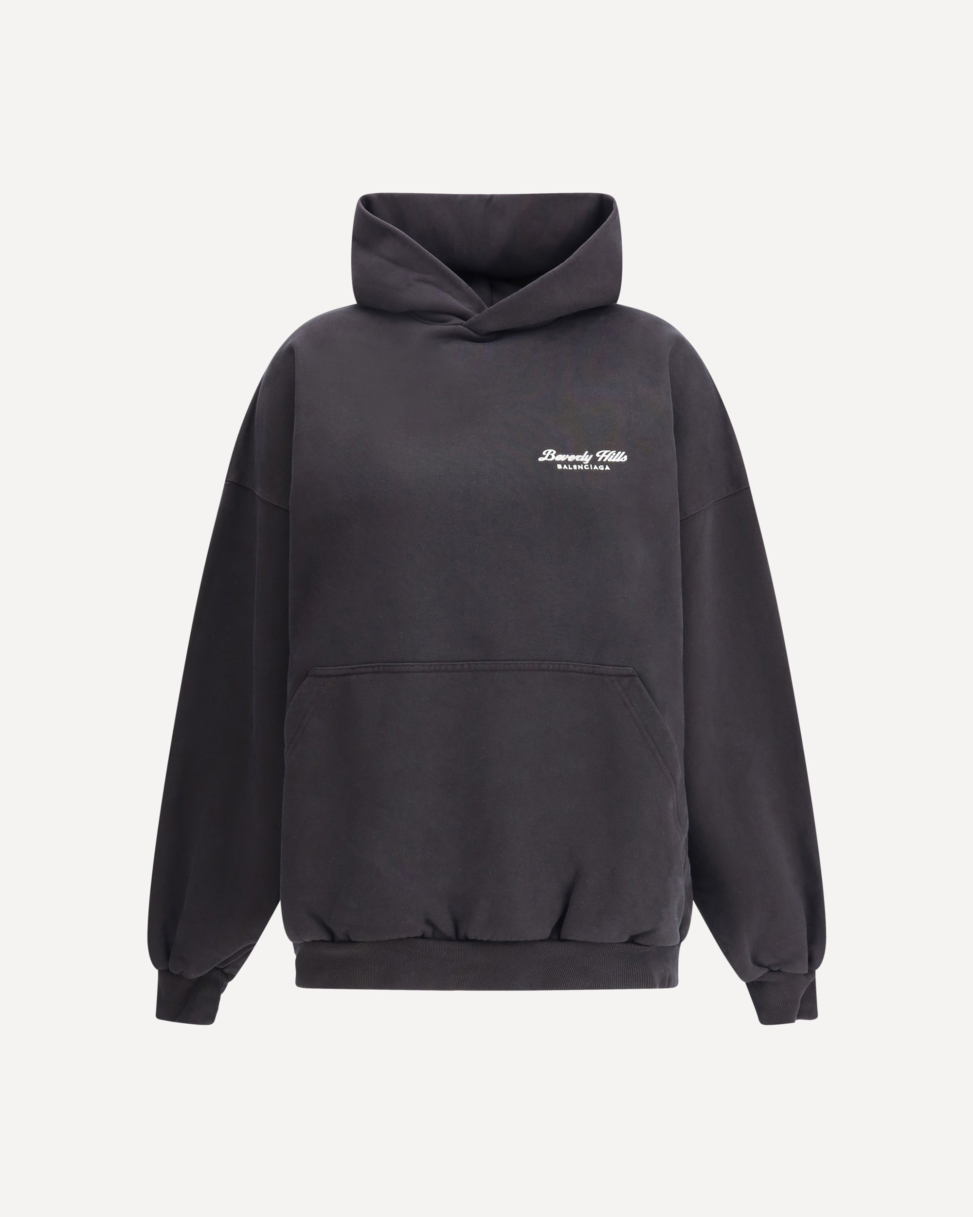 Balenciaga's Hoodie is an iconic piece that combines comfort and urban style with a touch of luxury. Featuring a pouch pocket on the front and ribbed edges, it offers an over fit that provides freedom of movement and a casual look. The lettering logo on the chest adds a distinctive and contemporary element, while the hood offers practicality and an added dimension to the design.