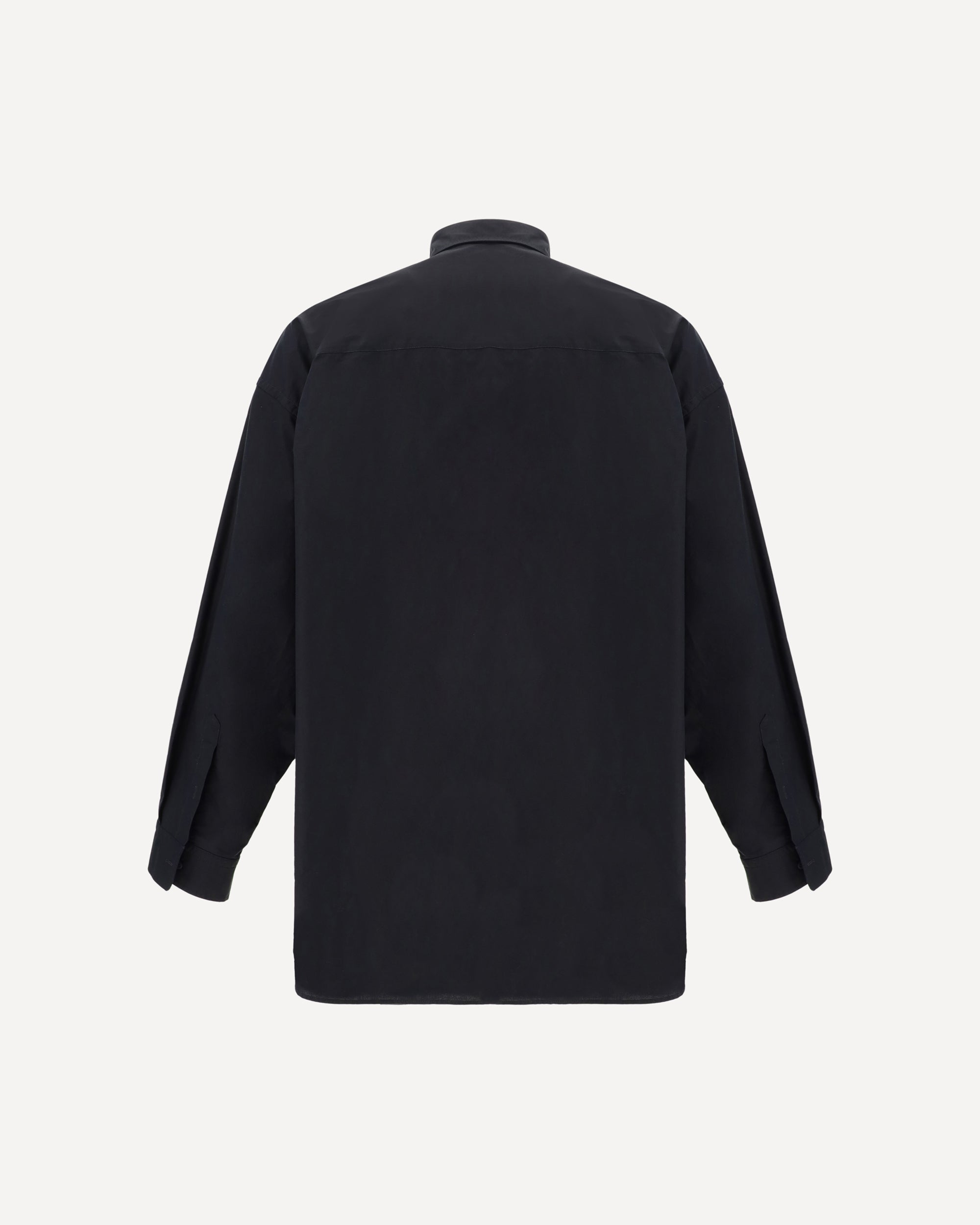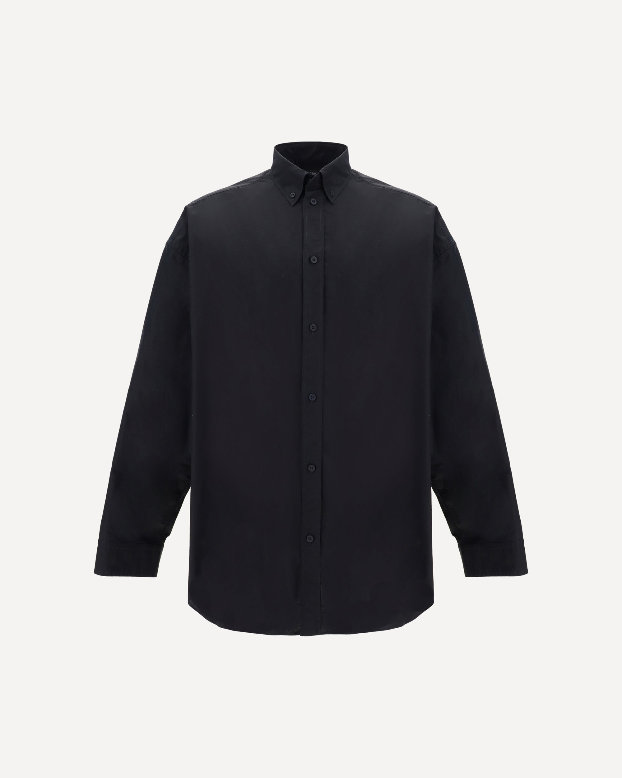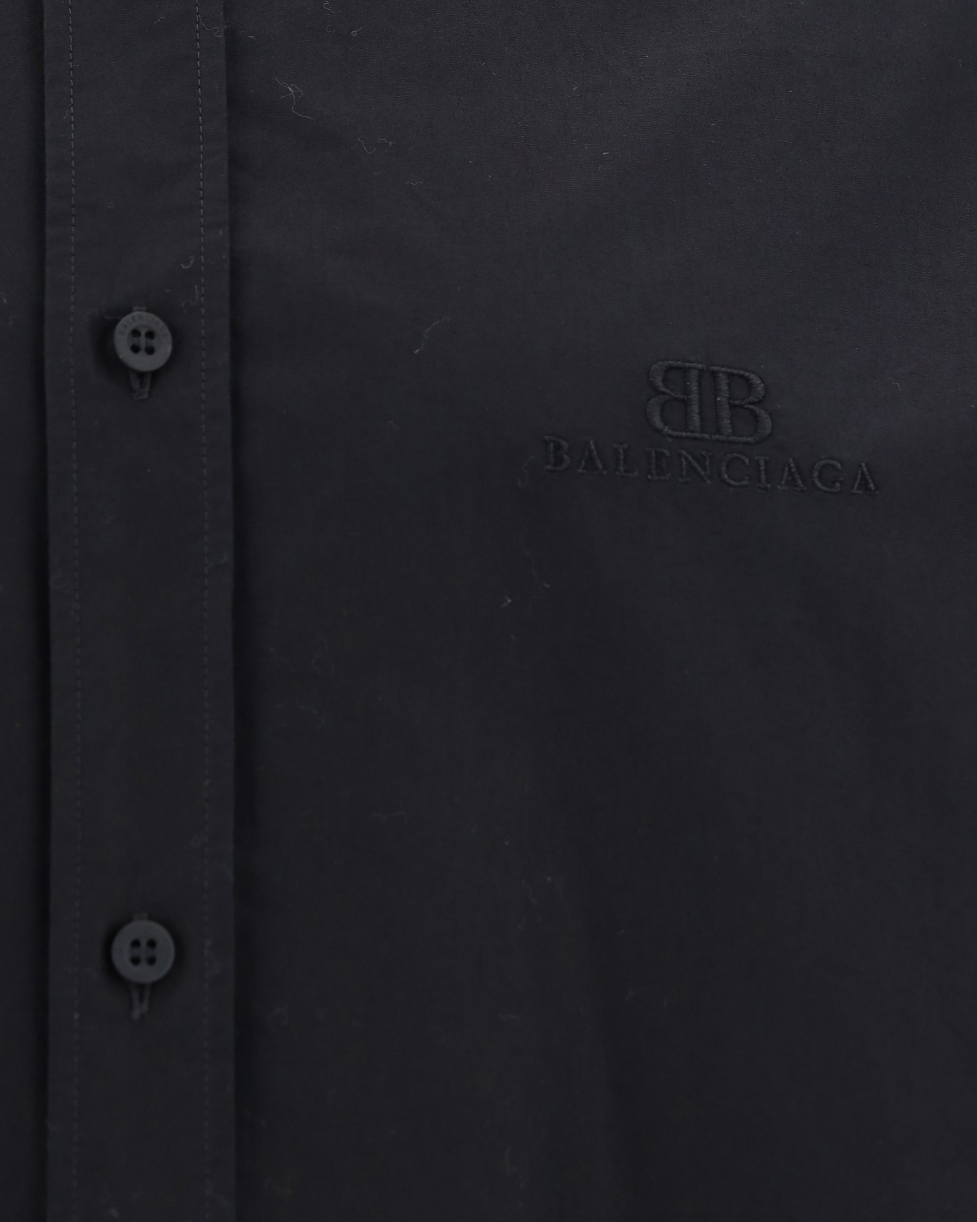 Cotton Oversized Shirt by Balenciaga, classic collar, front closure by matching tone-on-tone buttons, monochrome pattern, straight hem, matching embroidered brand logo on front, oversized fit.