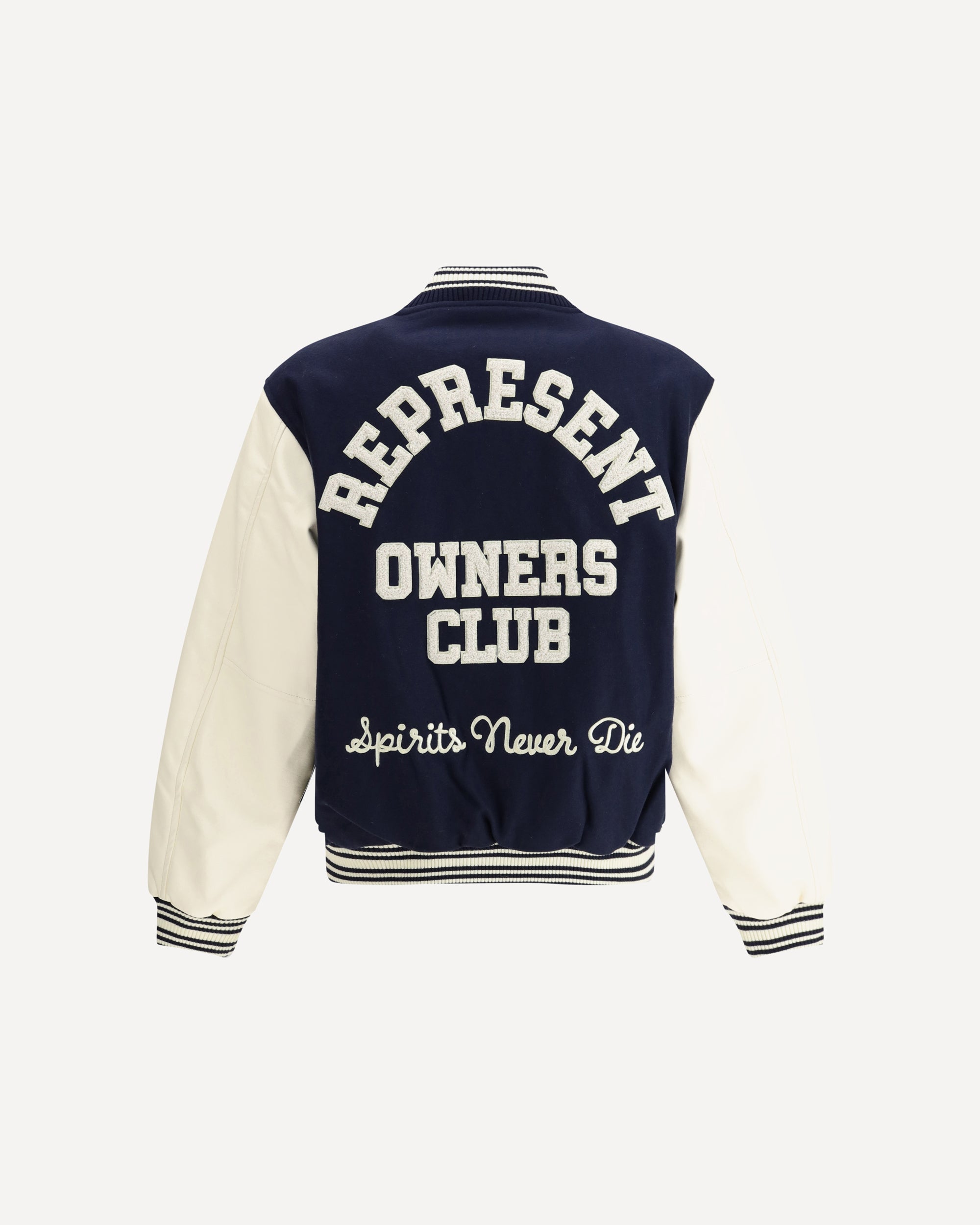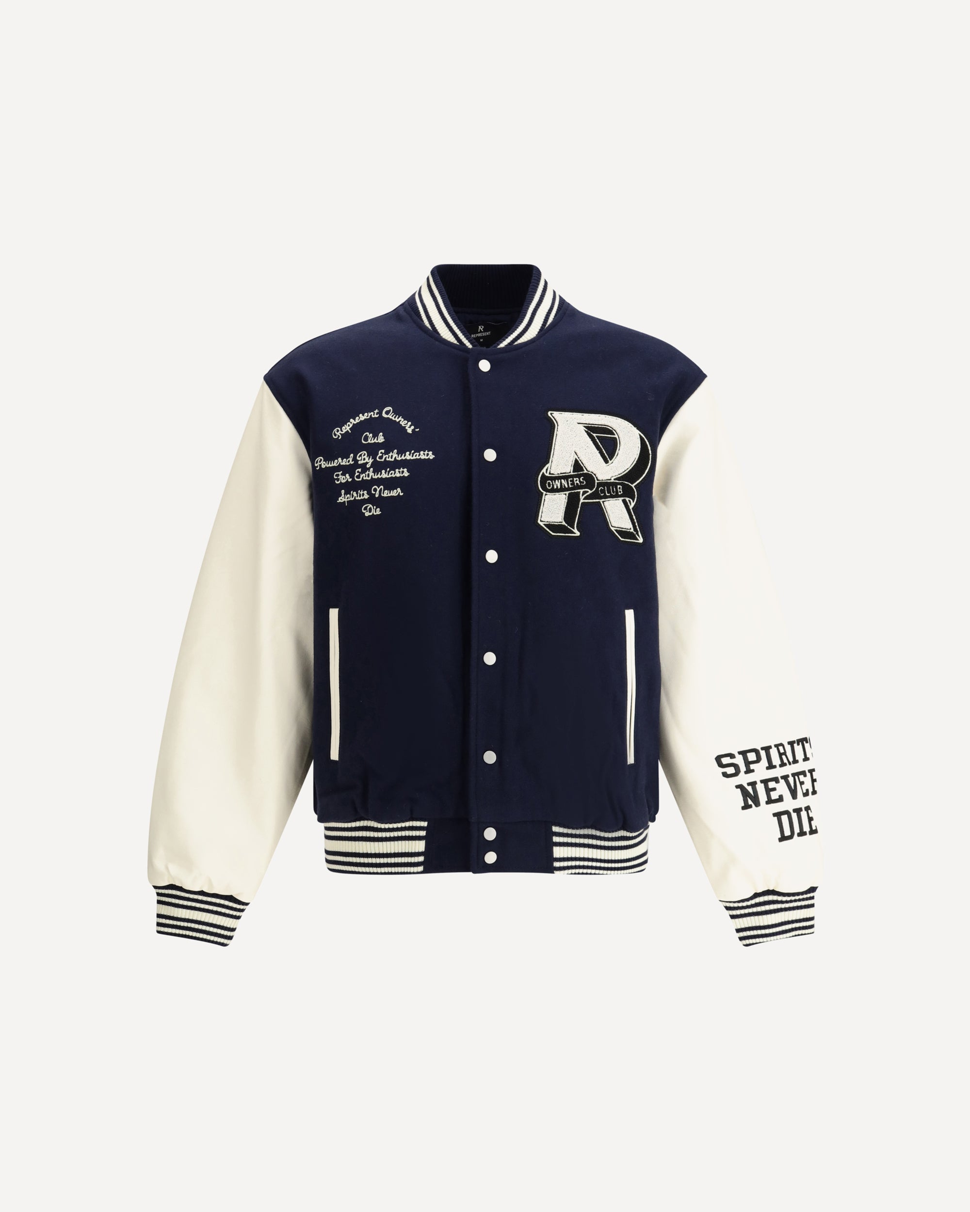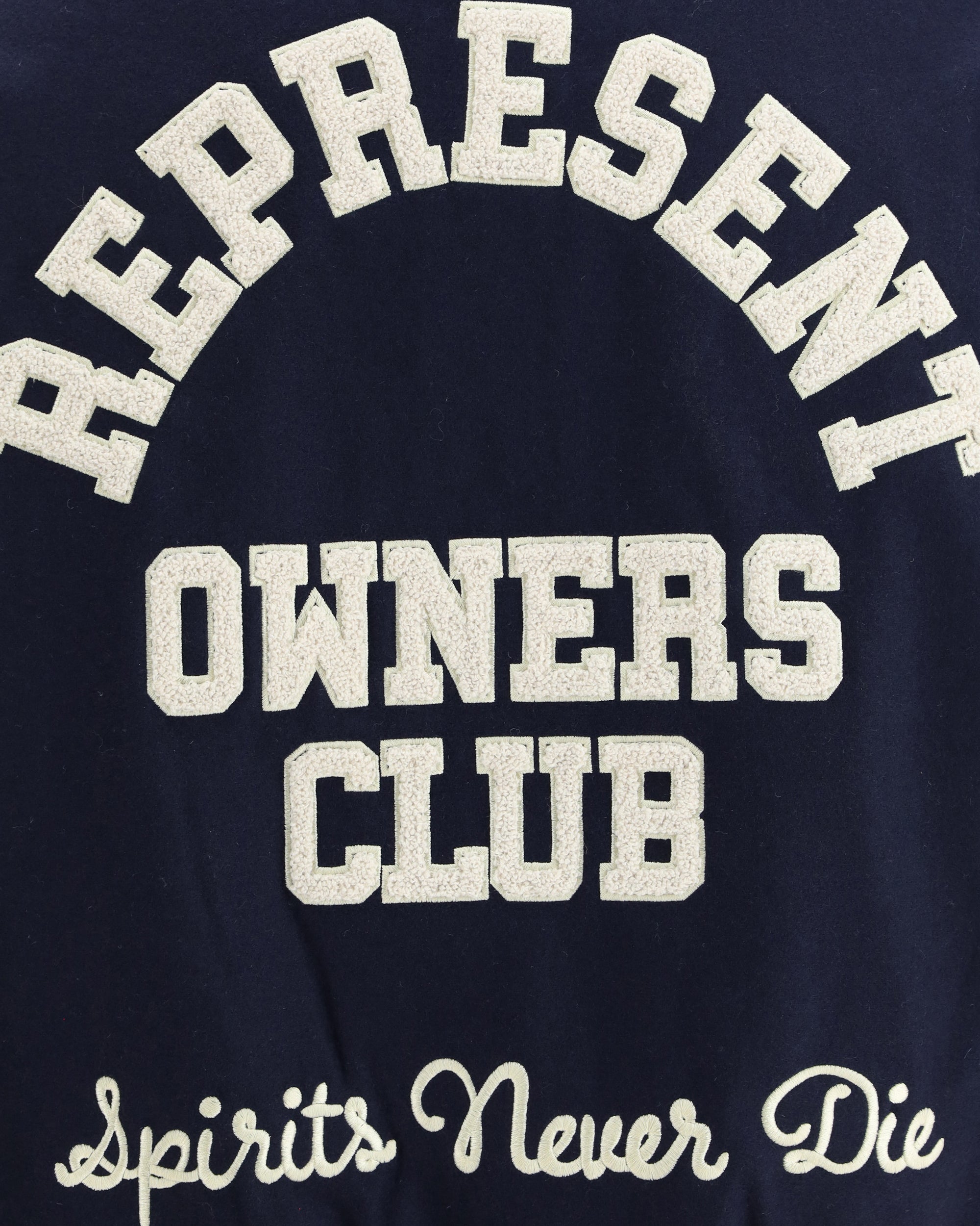 The Varsity Owners Club Jacket by Represent is a sophisticated streetwear design perfect for those seeking a sporty yet distinctive look. The snap-button front closure offers practicality and clean styling, while the classic ribbed collar and cuffs lend a touch of sporty elegance and a comfortable fit. The two side welt pockets are functional, while the ribbed hem completes the look with a well-defined structure. The brand's iconic logo and signature patch adds a distinctive detail, making the jacket easily recognizable.