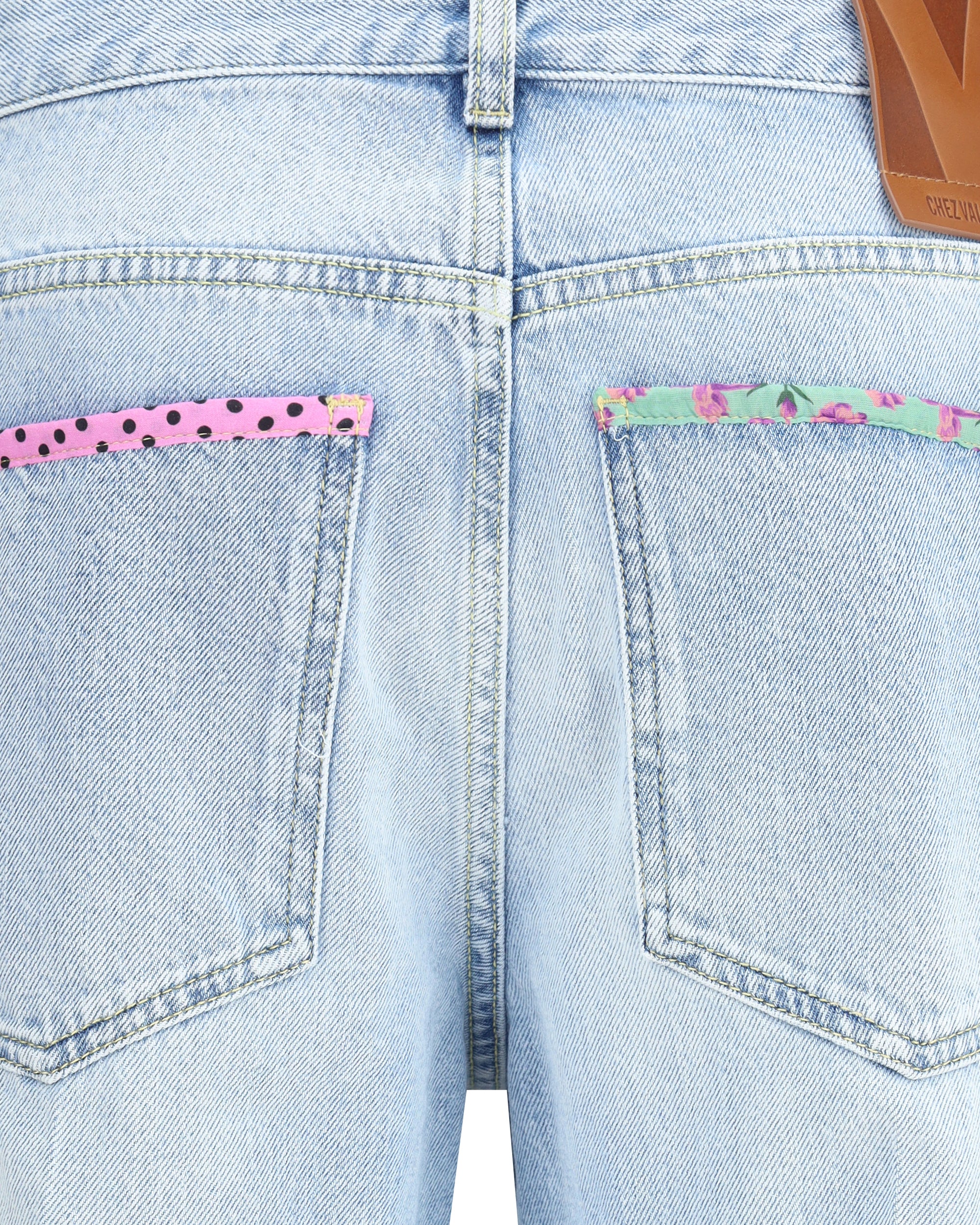 The Valentino Floral edge Jeans combine the classic five-pocket straight cut with refined and original details. The front zip and button fastening, belt loops and polka dots on the pockets add practicality and style, while the edges decorated with floral motifs give a romantic and distinctive touch.