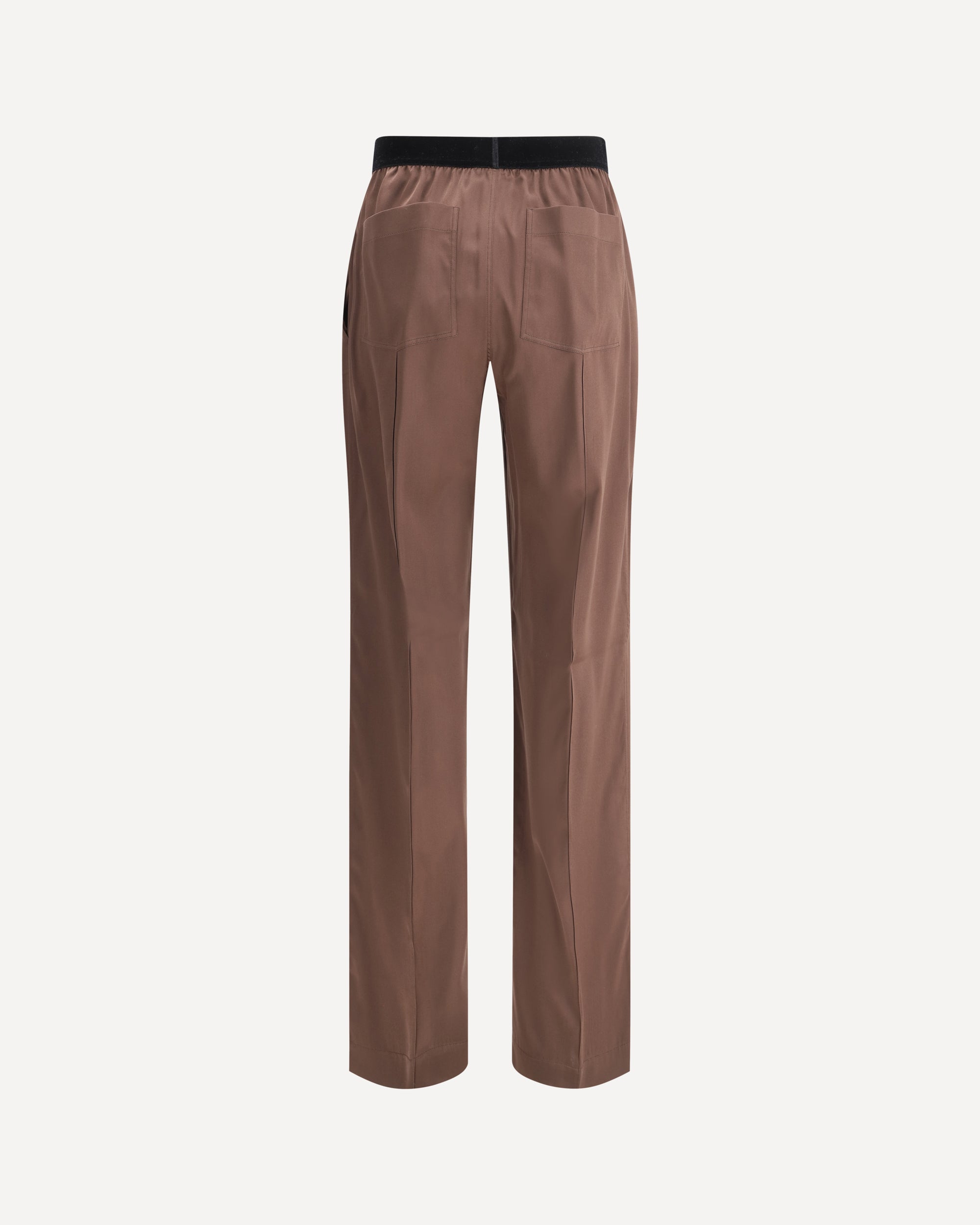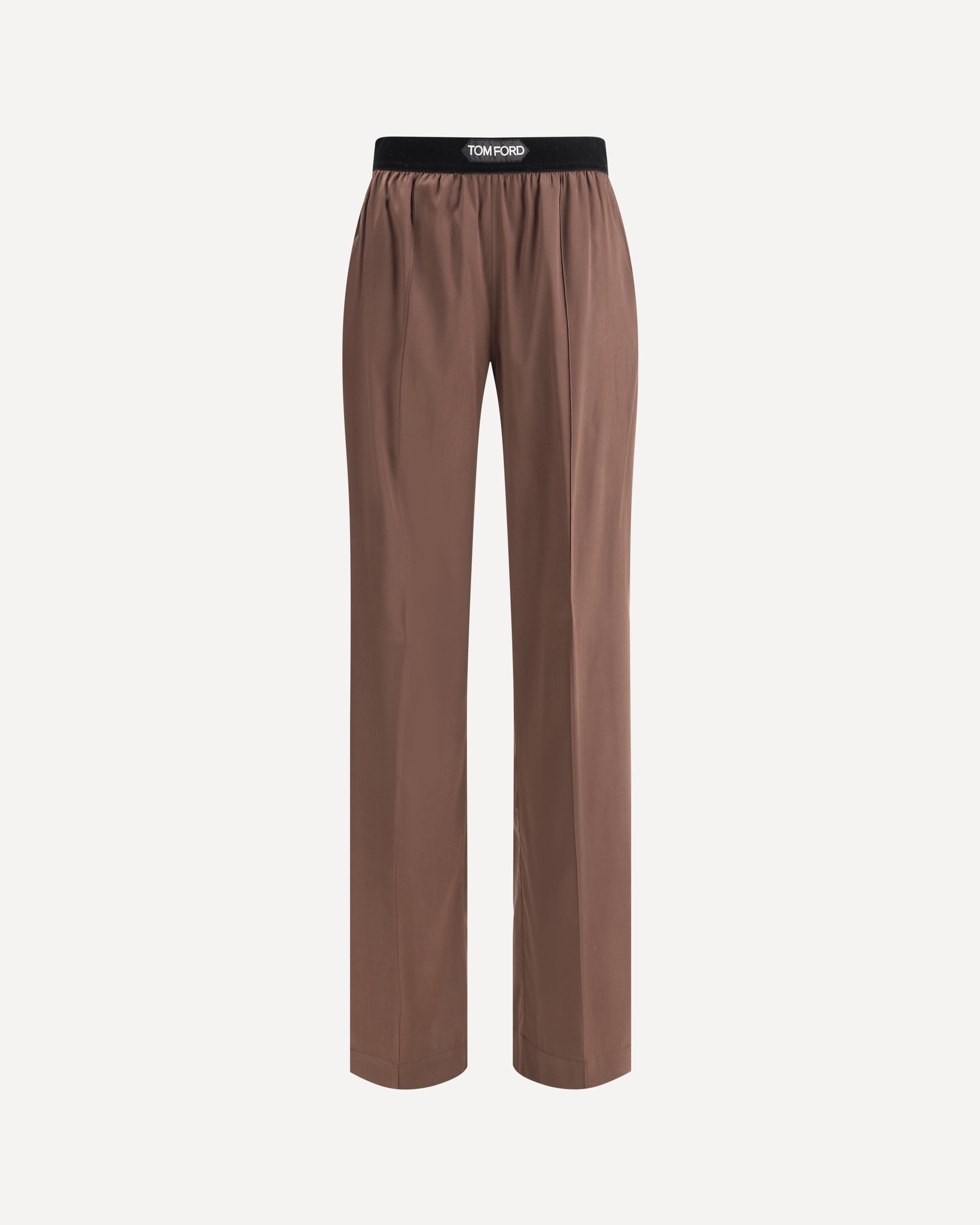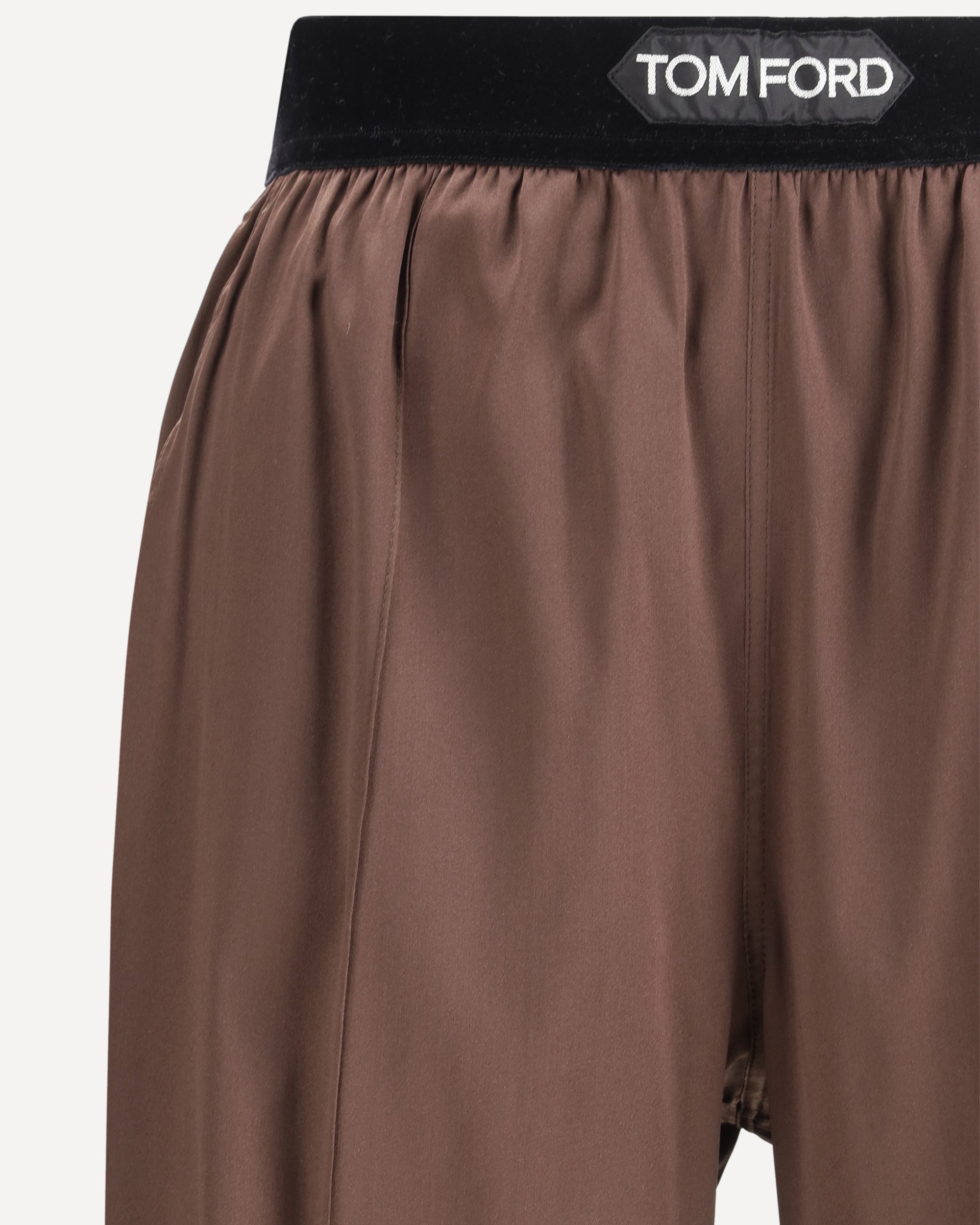 Tom Ford's silk Pants combine luxury and comfort in a design with a relaxed yet distinctive style. The contrasting elastic waistband, with the brand's logo printed on the front, adds a sporty, modern touch. Two slash pockets on the front and two welt patch pockets on the back complete the style for discreet functionality. An ideal garment for those seeking casual elegance and fine materials.