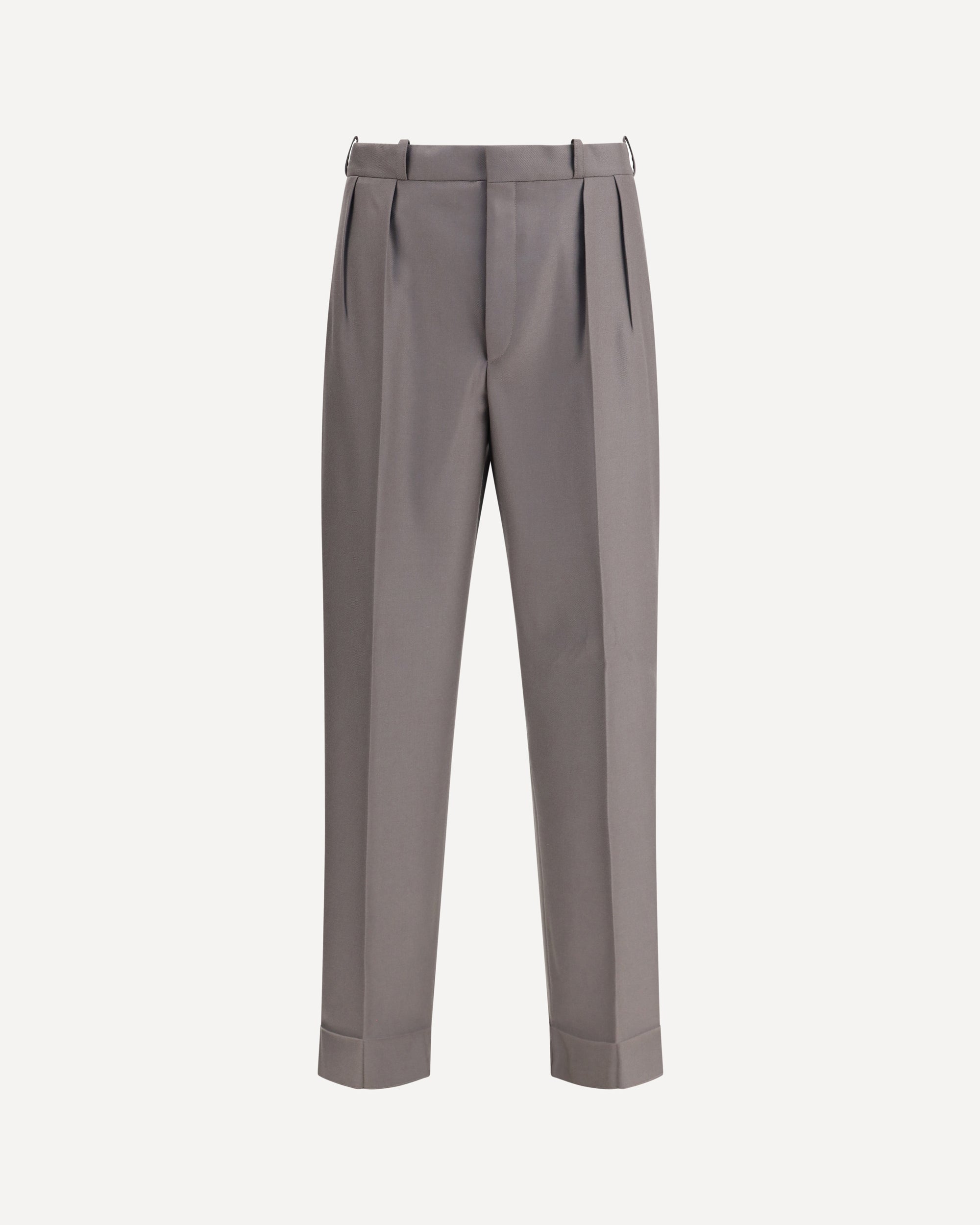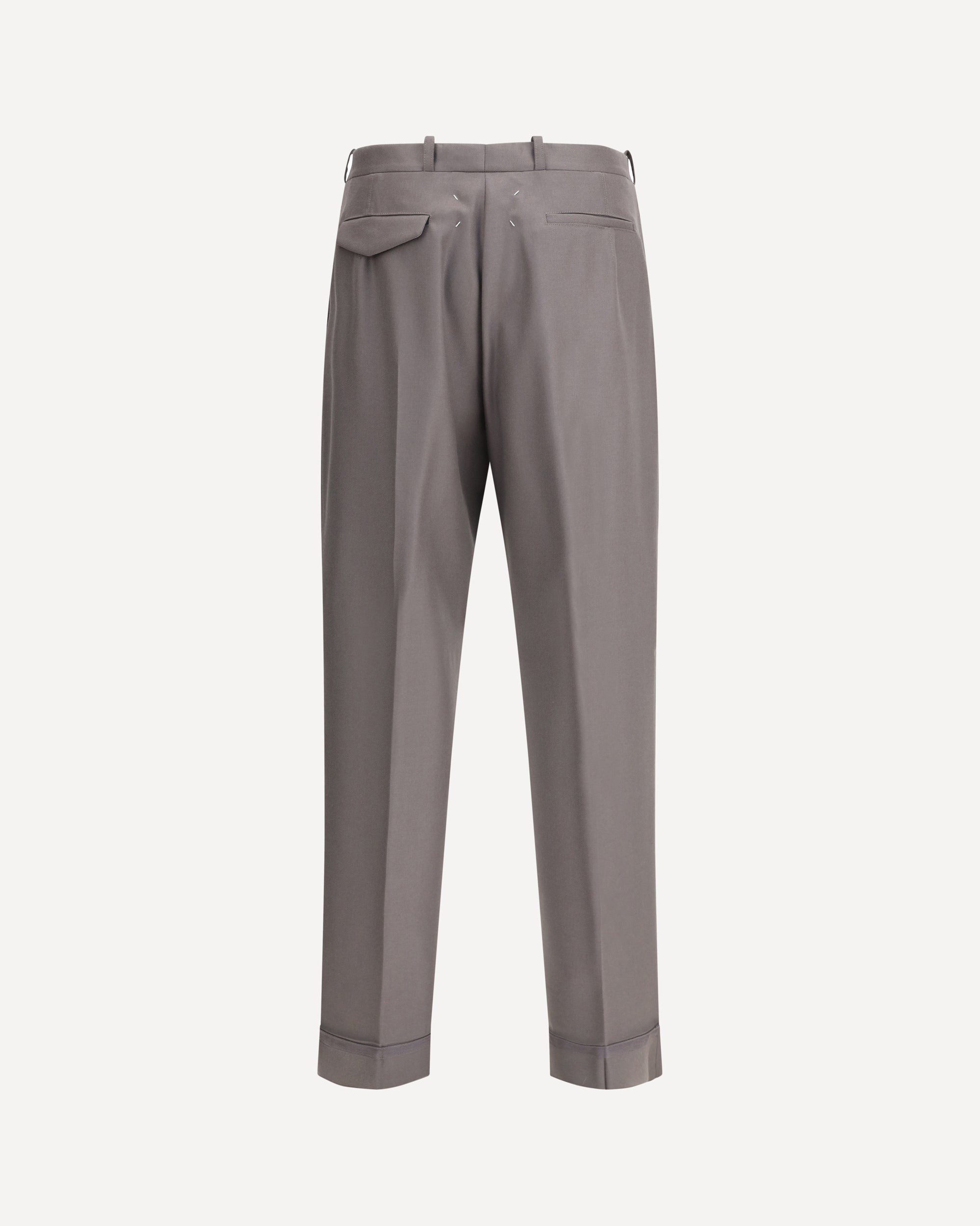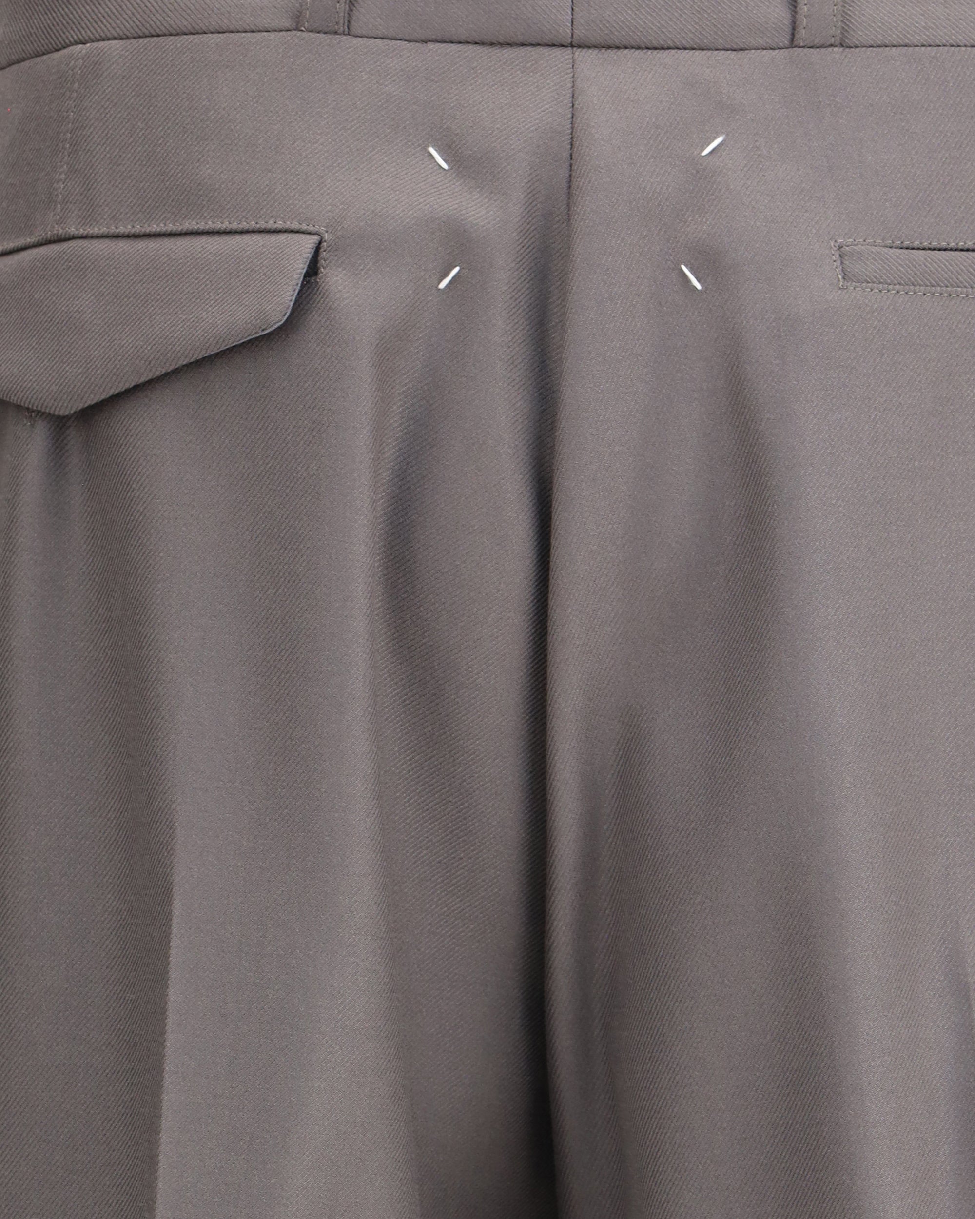 The Margiela Green Wool Trousers with pleats combine elegance and functionality in a contemporary piece. The pleated design enhances the silhouette, while the waistband loops allow for a belt to complete the look. Side pockets add practicality without compromising style, making this model perfect for formal occasions and refined outfits