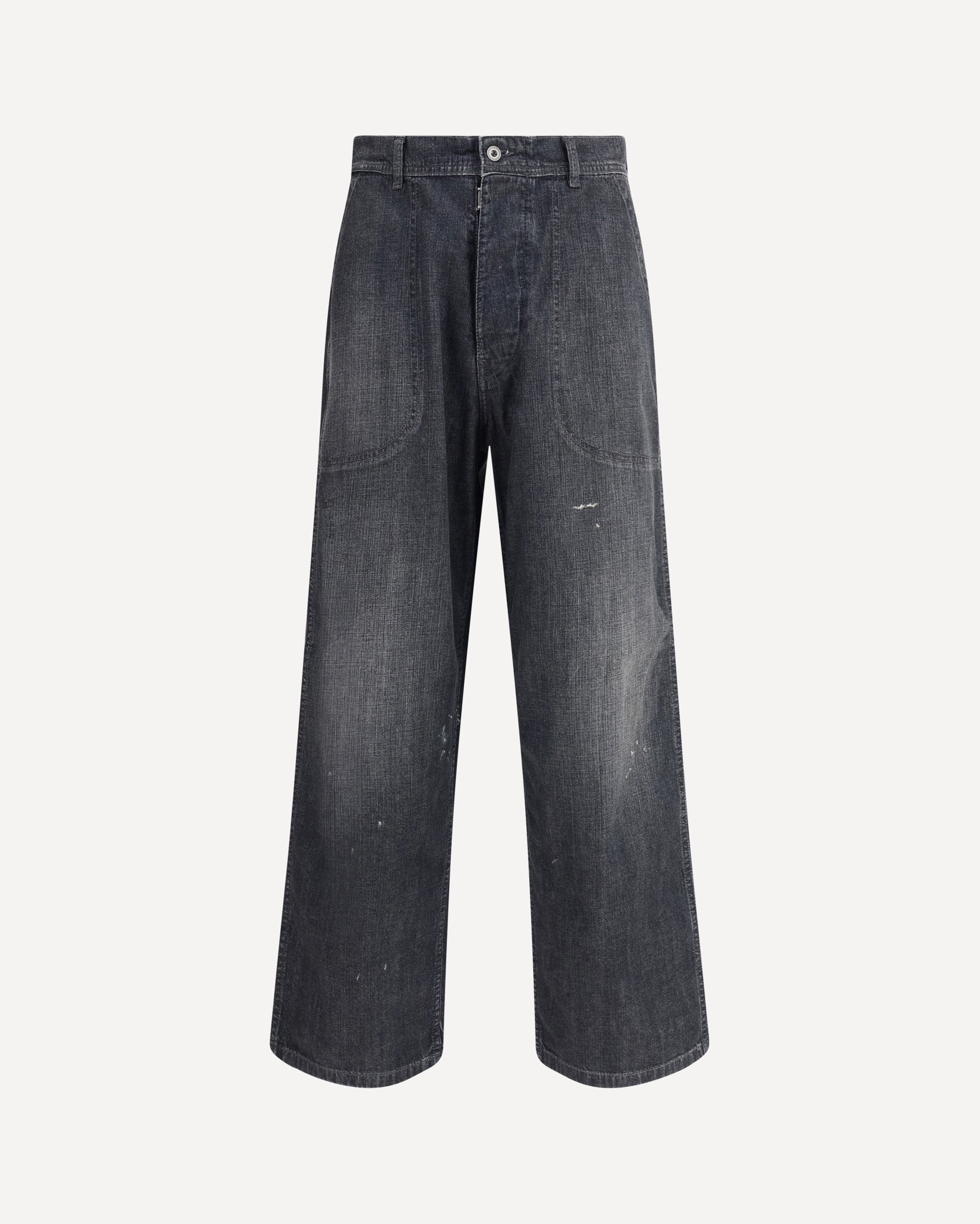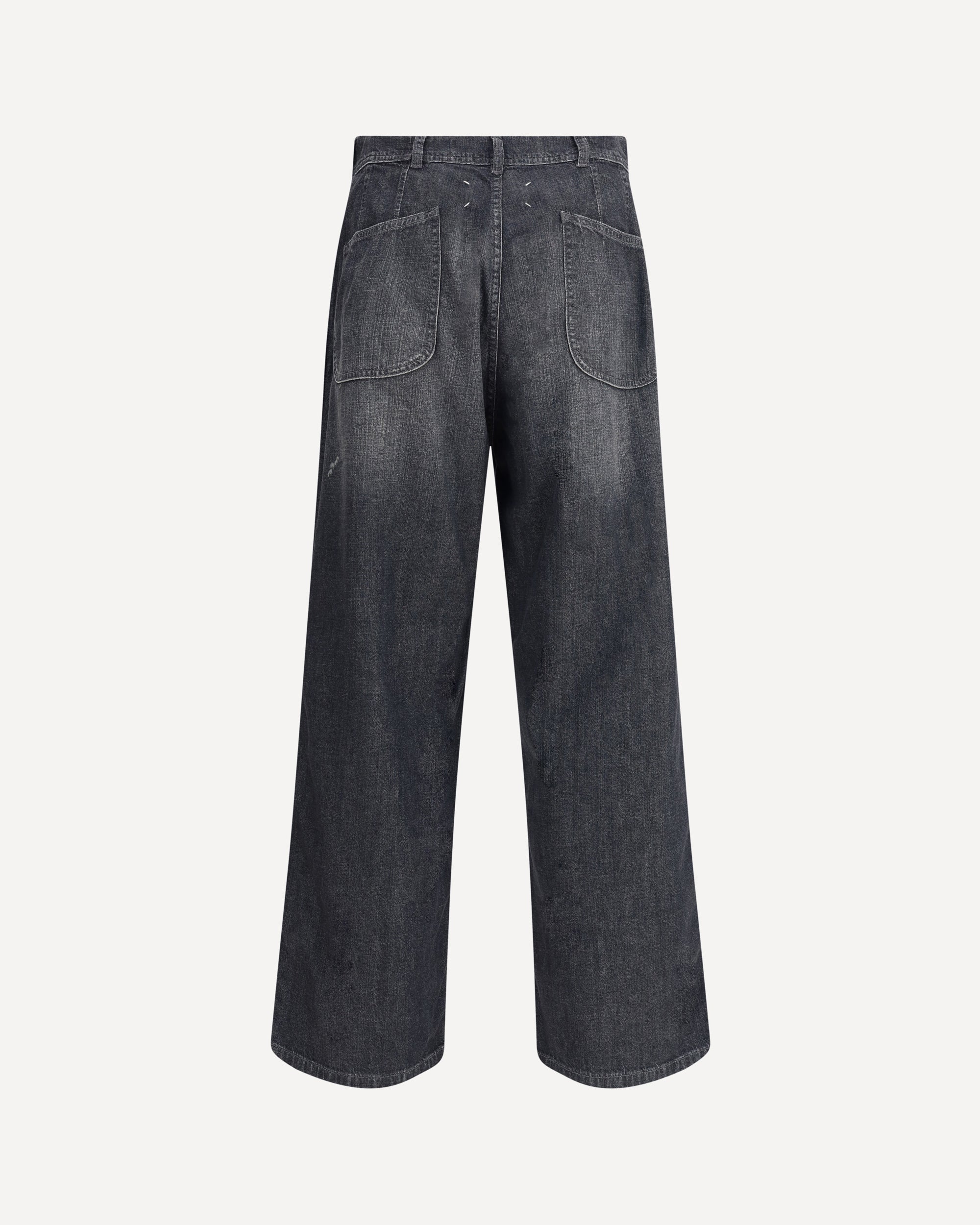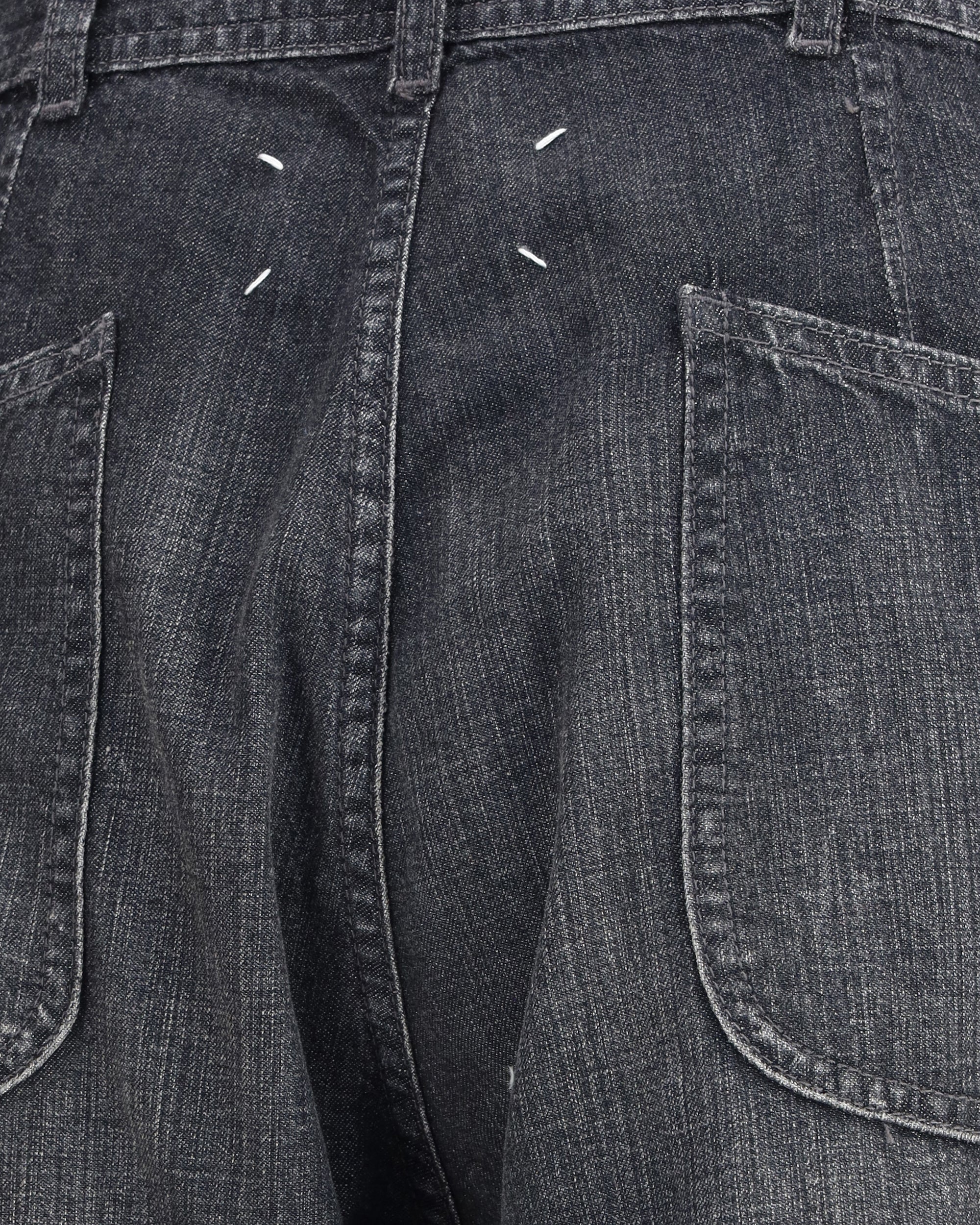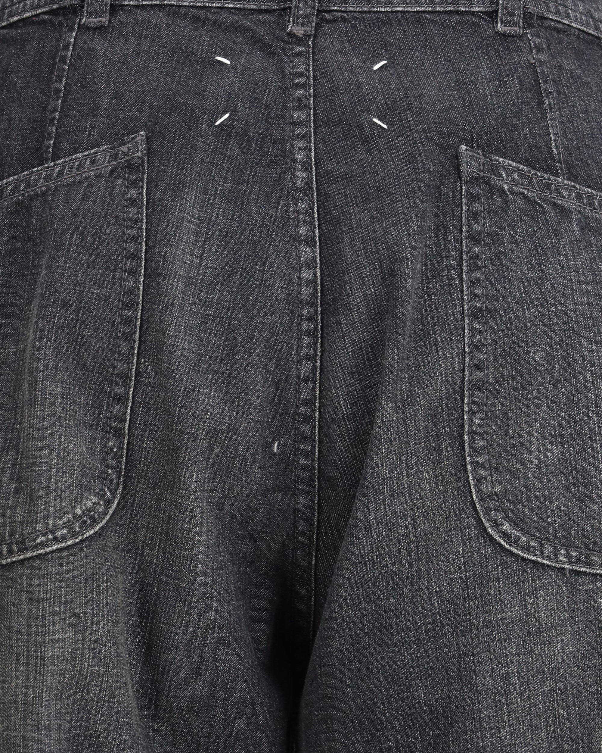 Margiela's wide leg Jeans reinterpret a denim classic with the Maison's usual signature style. Featuring a front zip-and-button closure, belt loops at the waist and four patch pockets, they have a wide, contemporary silhouette. The iconic contrast stitching embroidered on the back completes the model with a distinctive and recognizable touch.