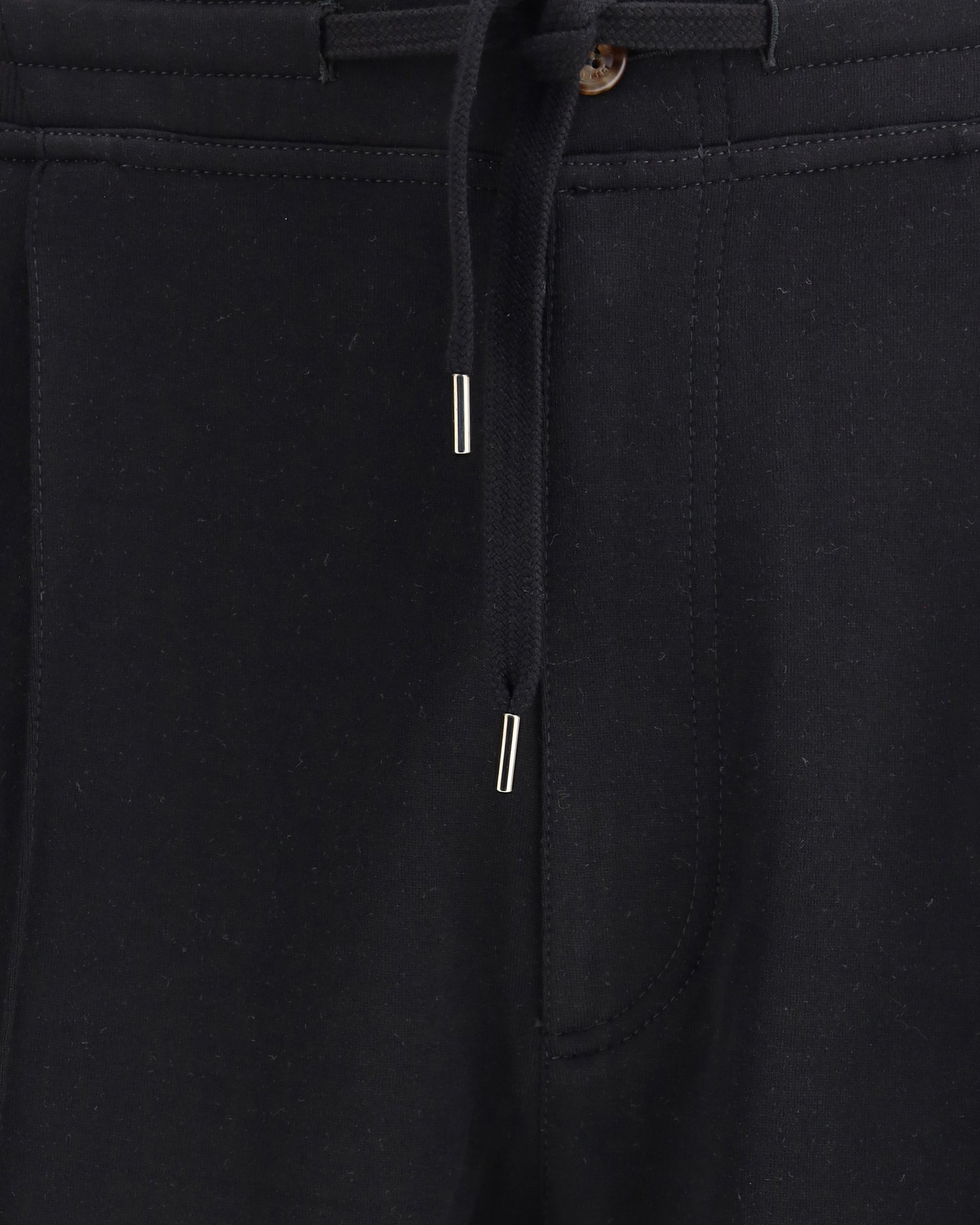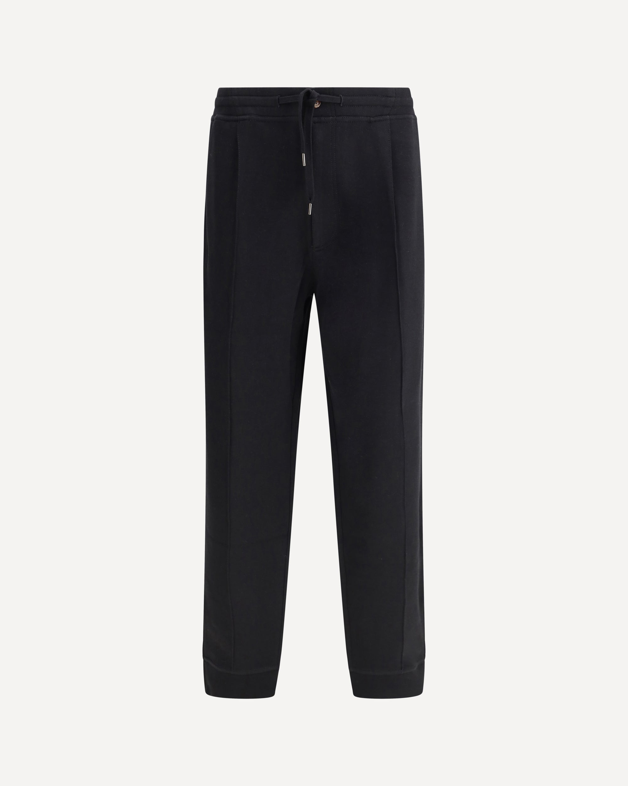 The Sweatpants by Brunello Cucinelli combine comfort and refined style. Designed with a ribbed elastic waistband and adjustable drawstring, they feature side pockets, back welt pockets, and a single front pleat. Ribbed ankle cuffs and a stitched center crease along the leg add a subtle, tailored finish.