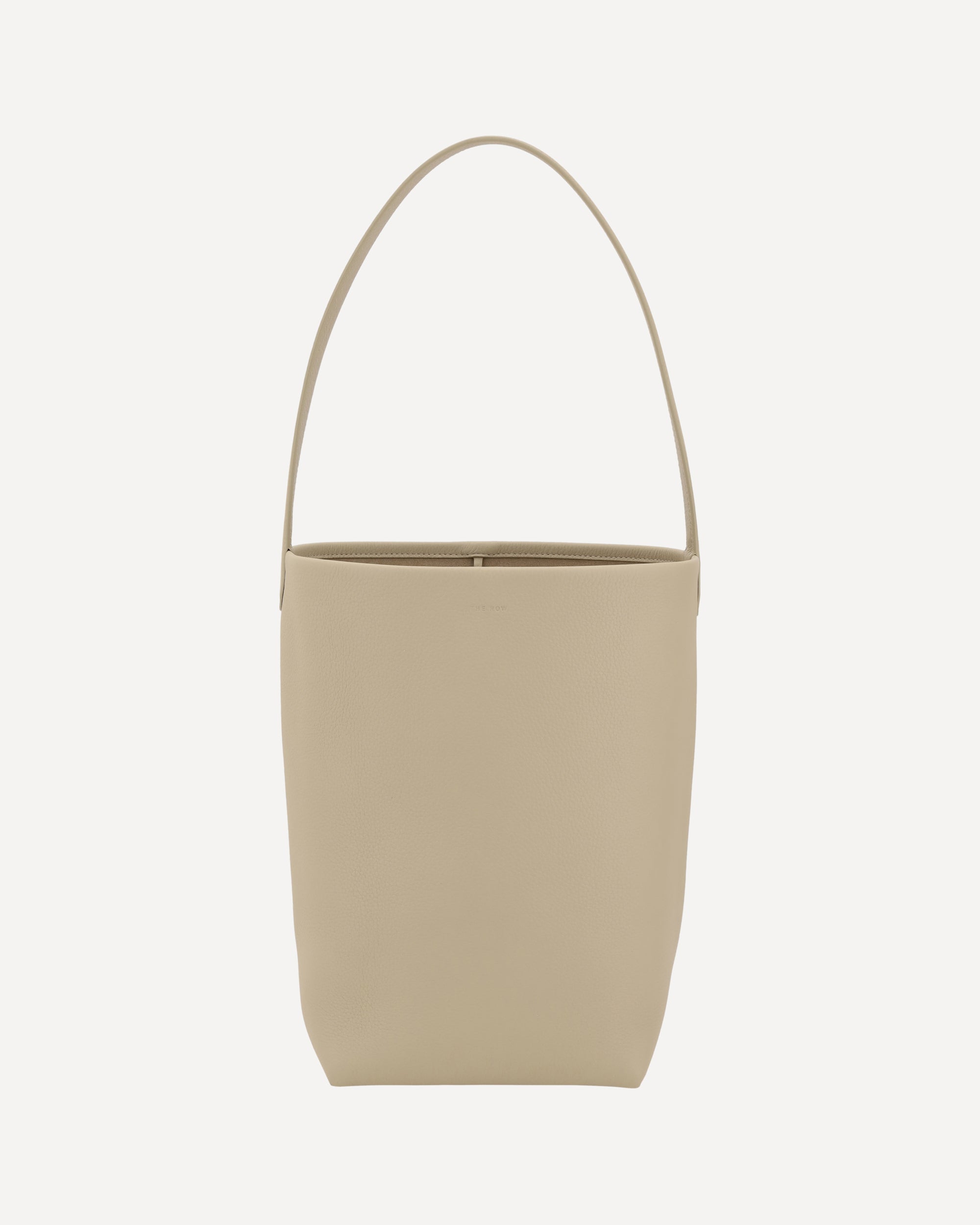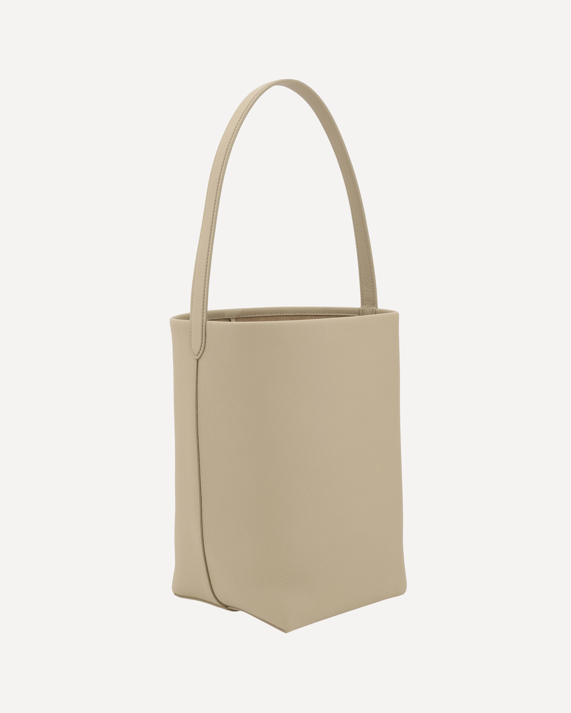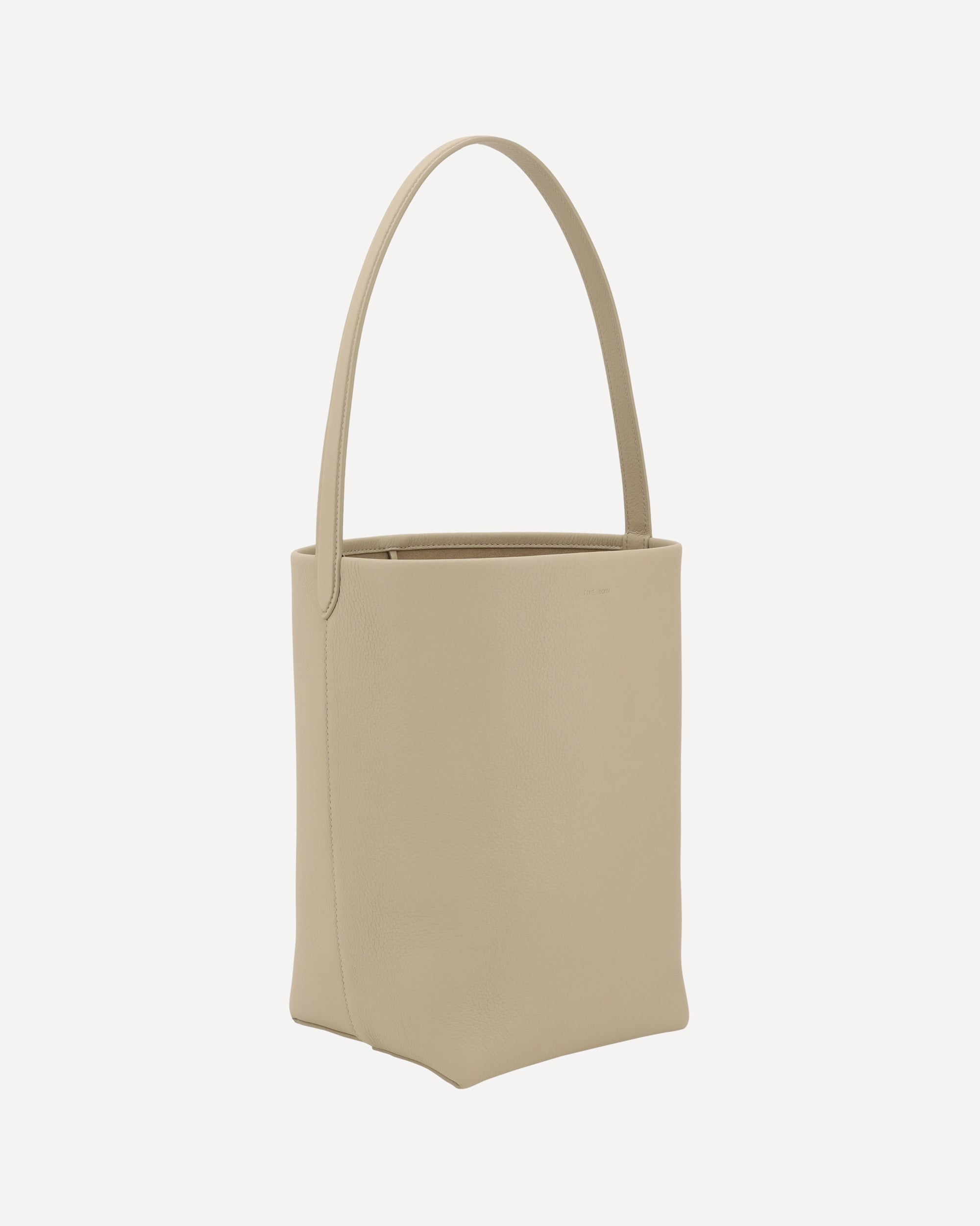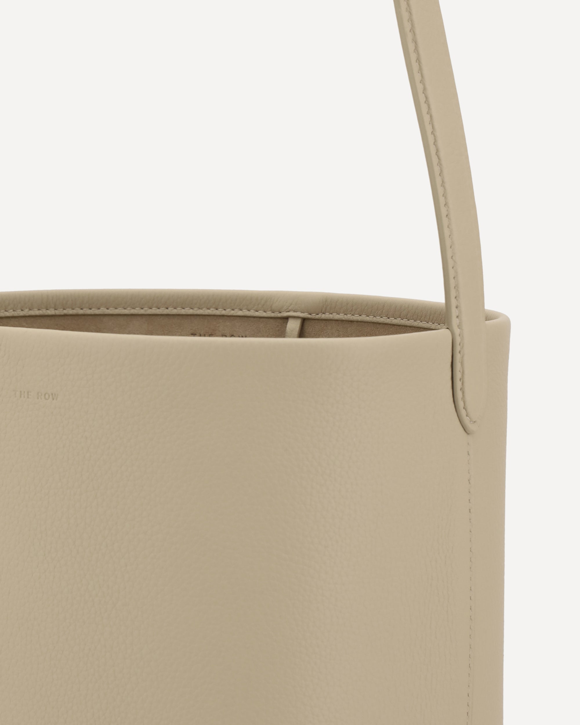 The Park medium leather Tote Bag by The Row is an elegant and refined accessory. Crafted from grained leather, it features a single flat handle at the top for convenient carrying. The brand's iconic signature is press-stamped on the front, while the interior closure is by means of knotted ribbons, adding a sophisticated and functional touch. Perfect for a minimalist and chic look.