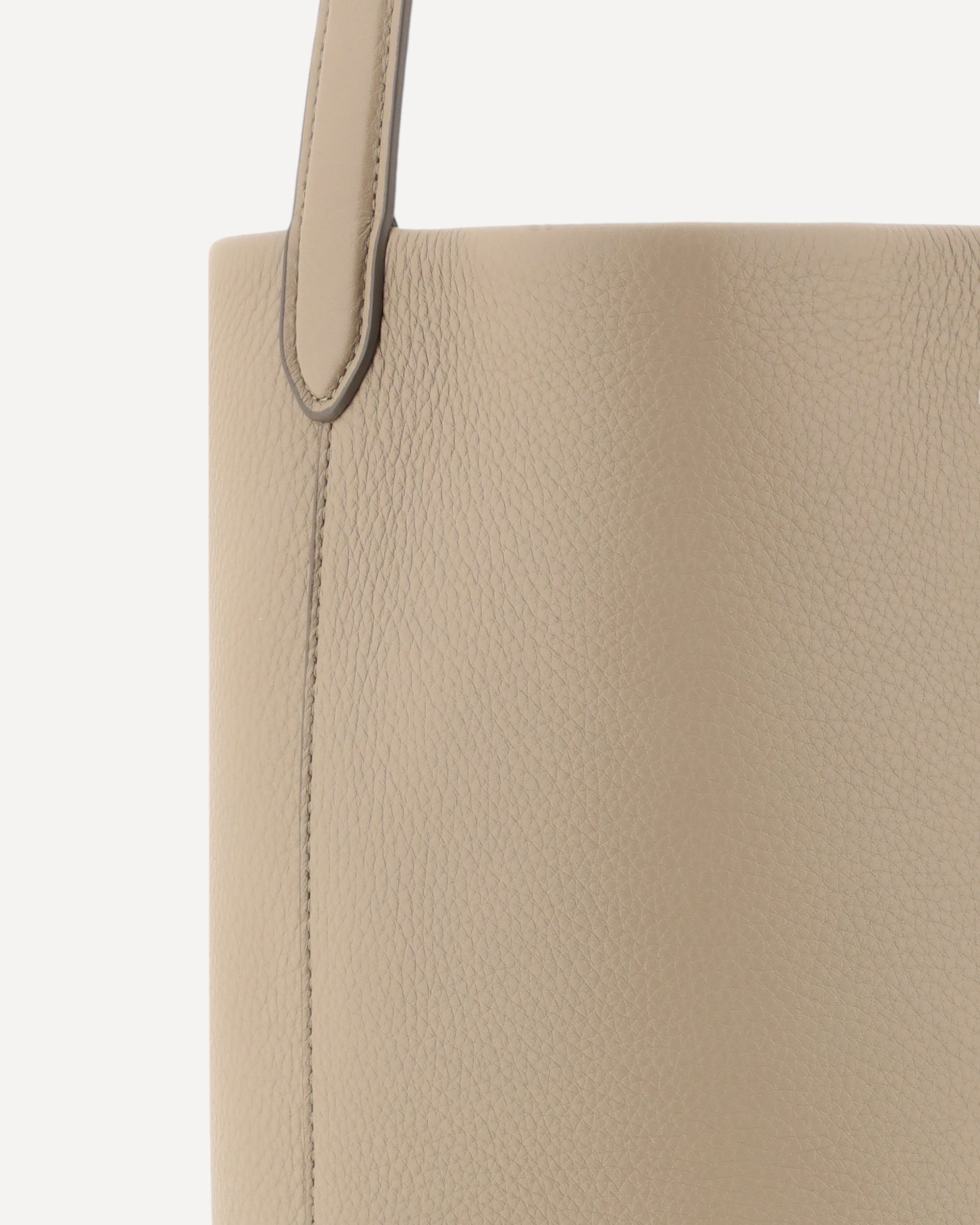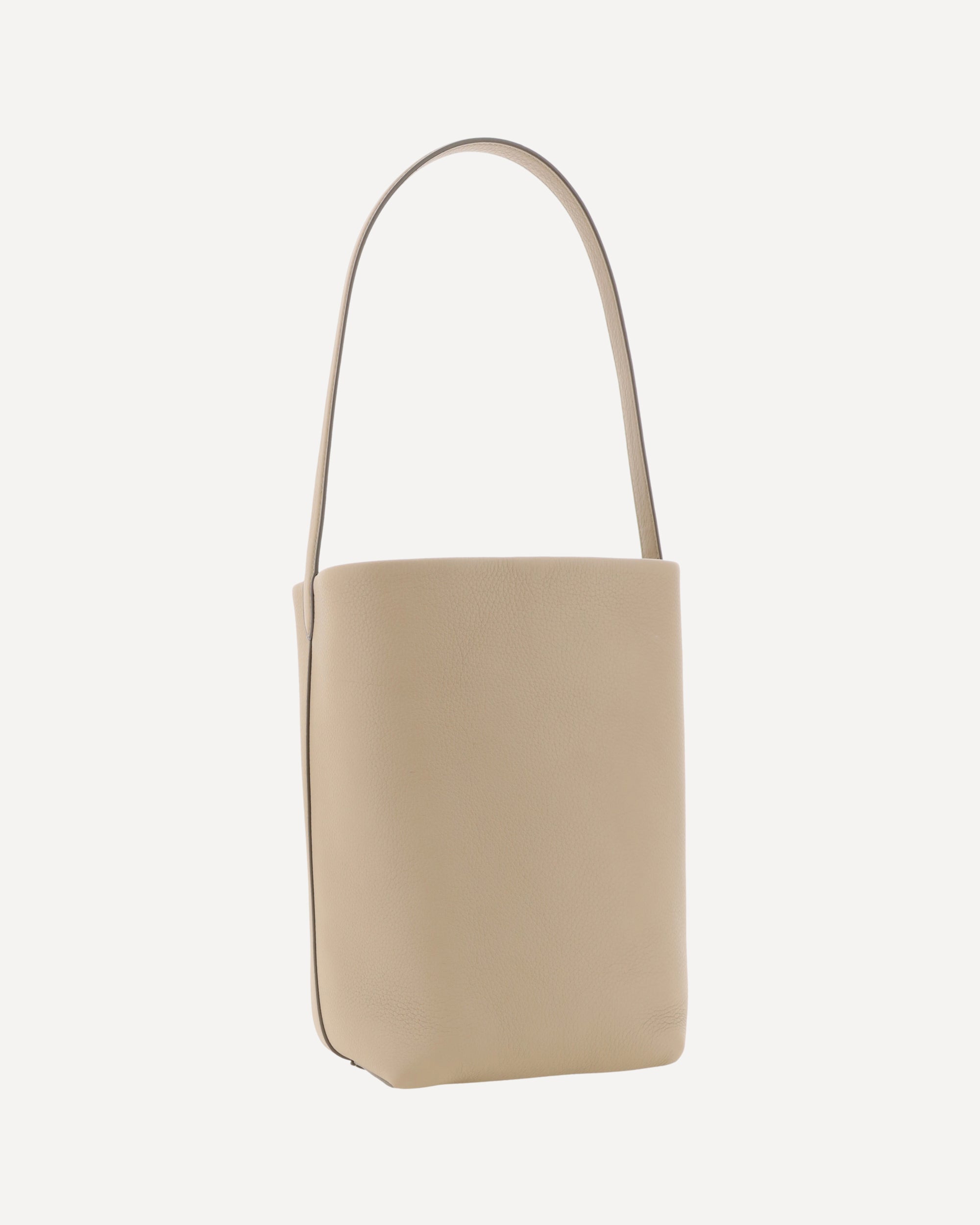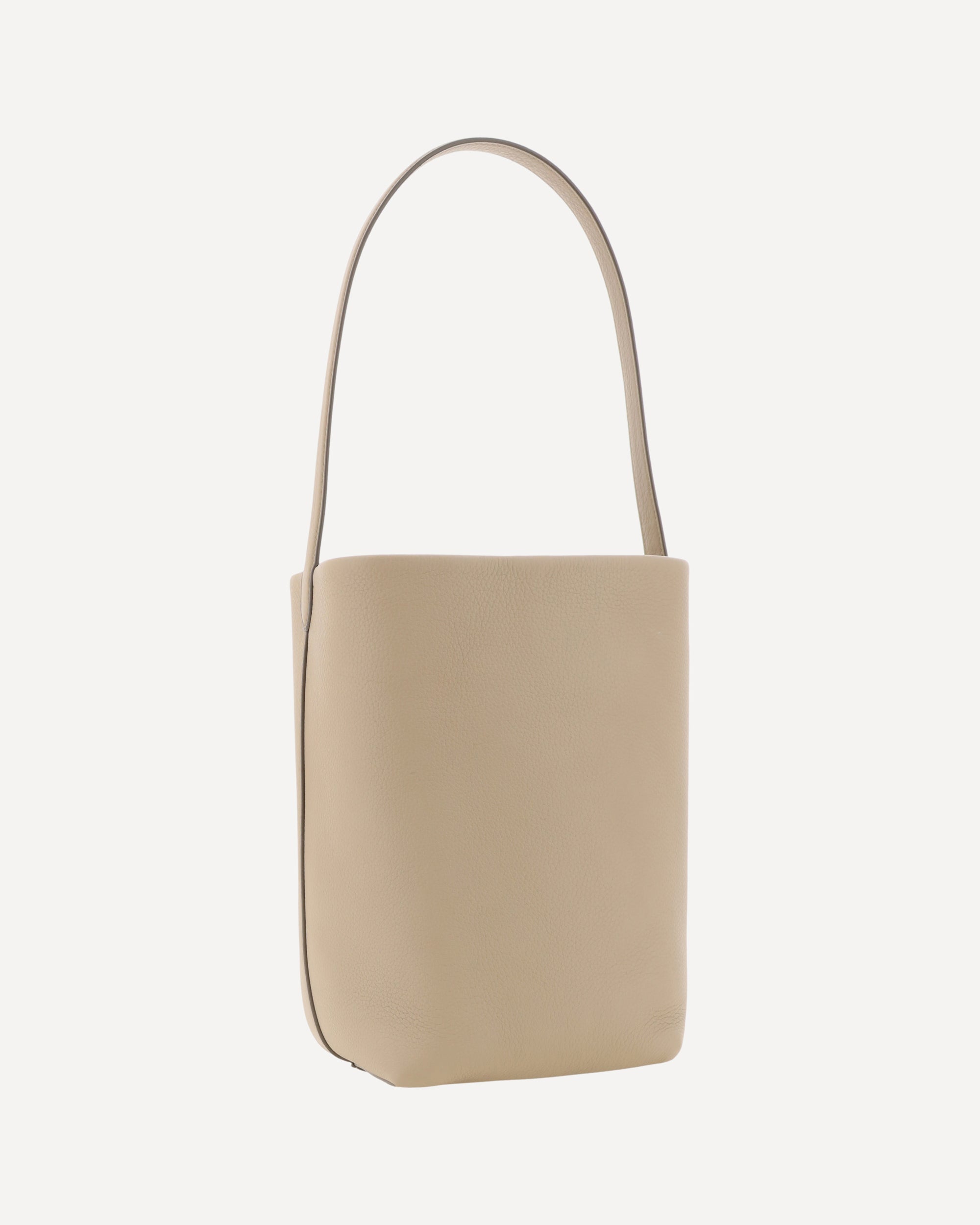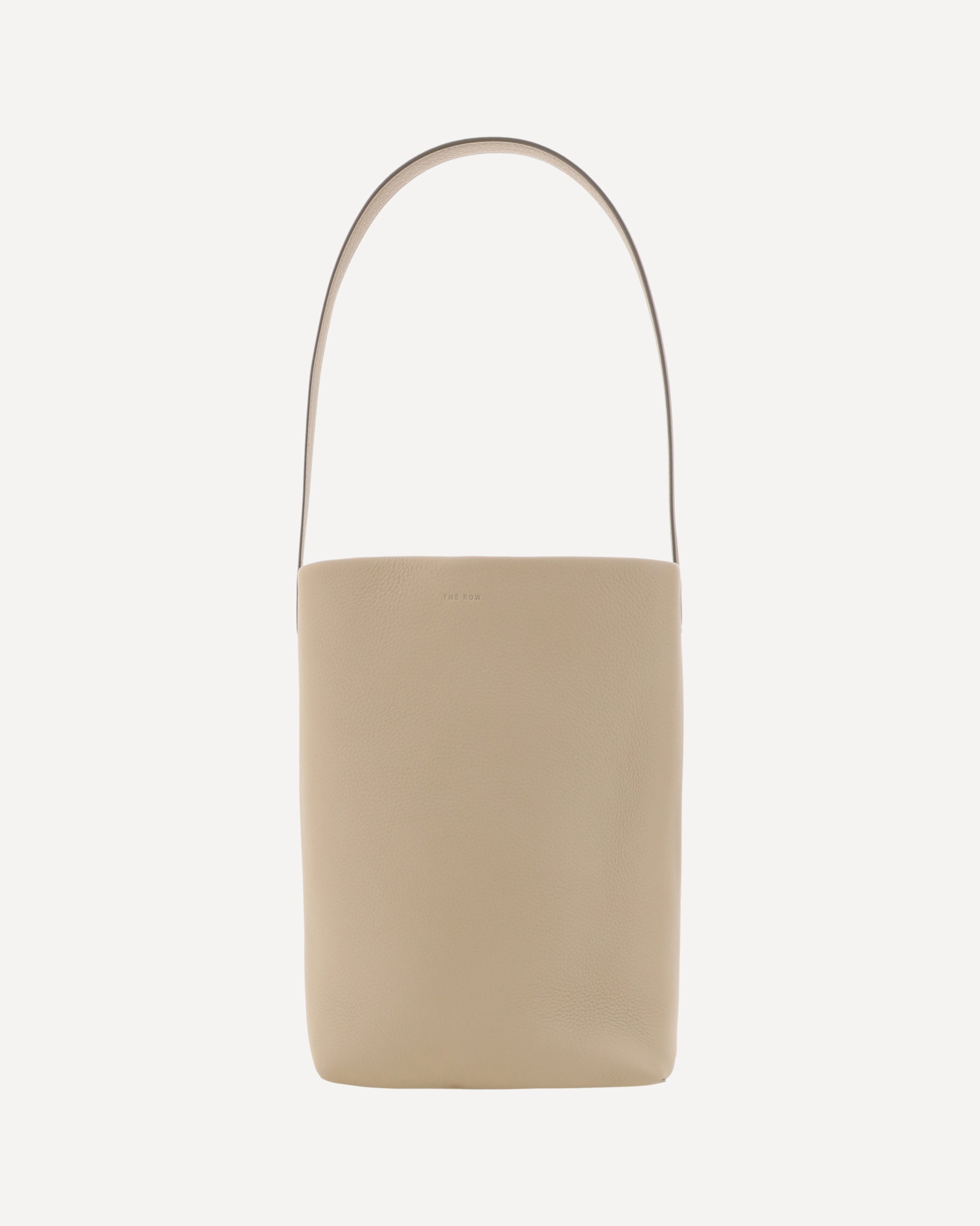 The Park medium leather Tote Bag by The Row is an elegant and refined accessory. Crafted from grained leather, it features a single flat handle at the top for convenient carrying. The brand's iconic signature is press-stamped on the front, while the interior closure is by means of knotted ribbons, adding a sophisticated and functional touch. Perfect for a minimalist and chic look.