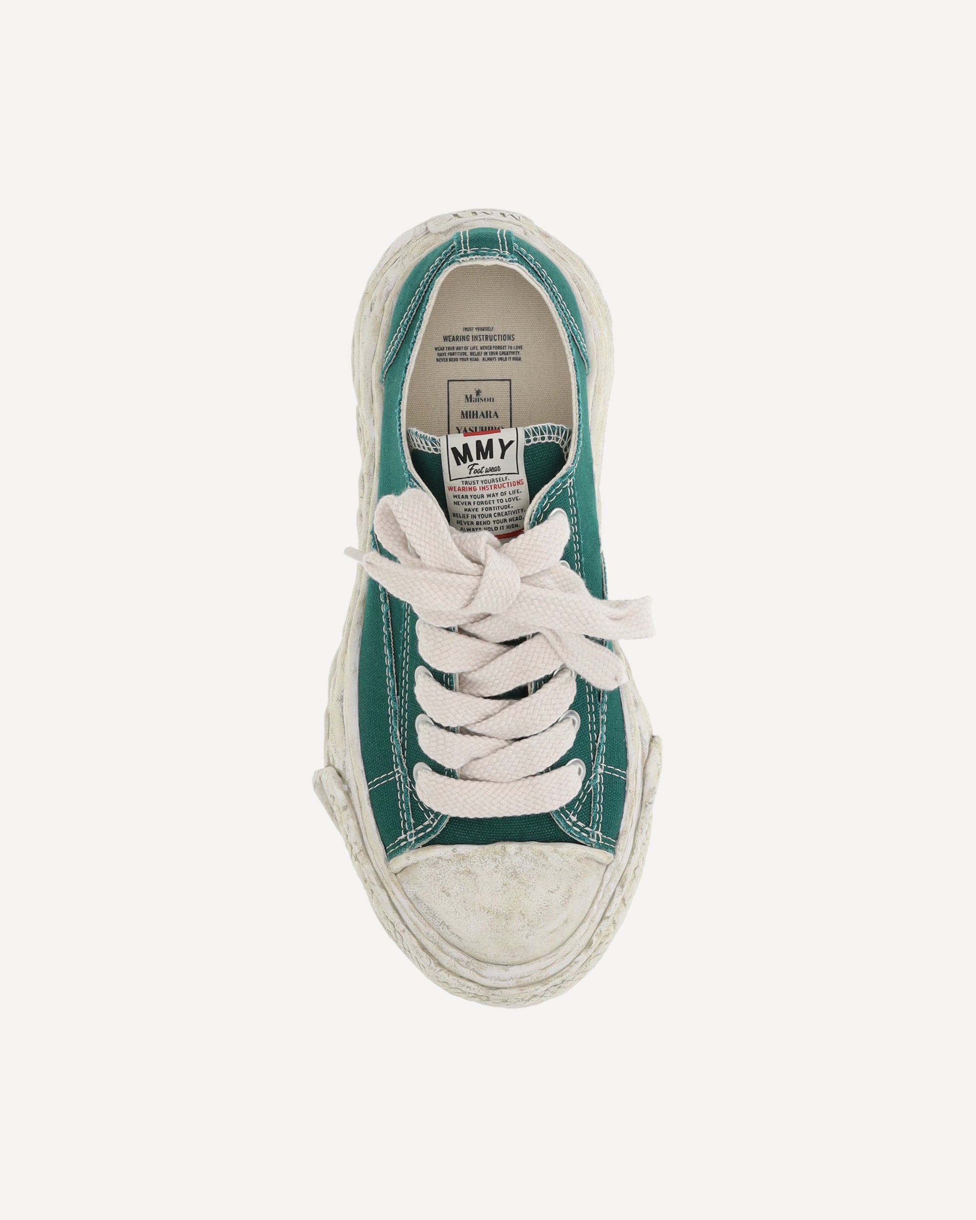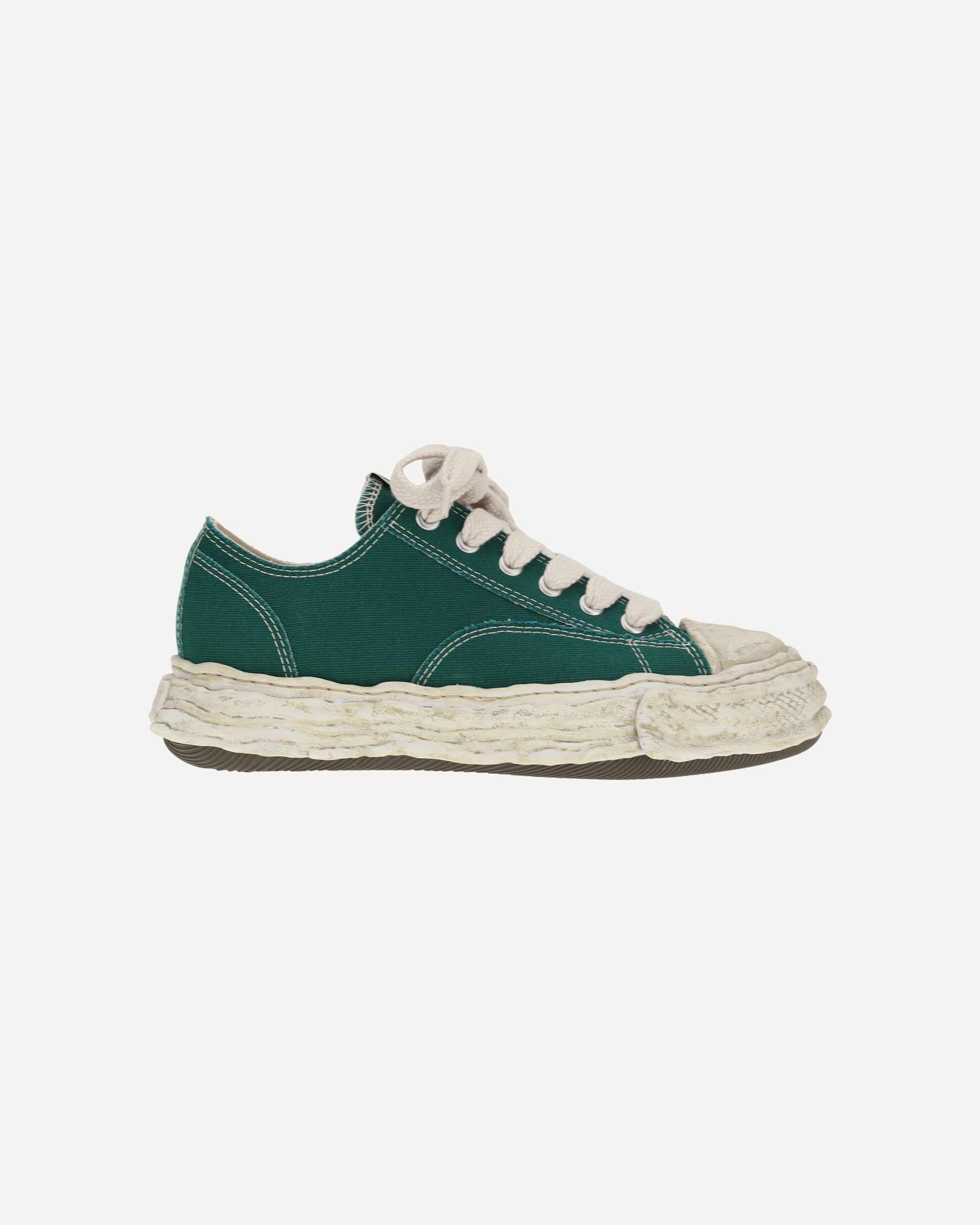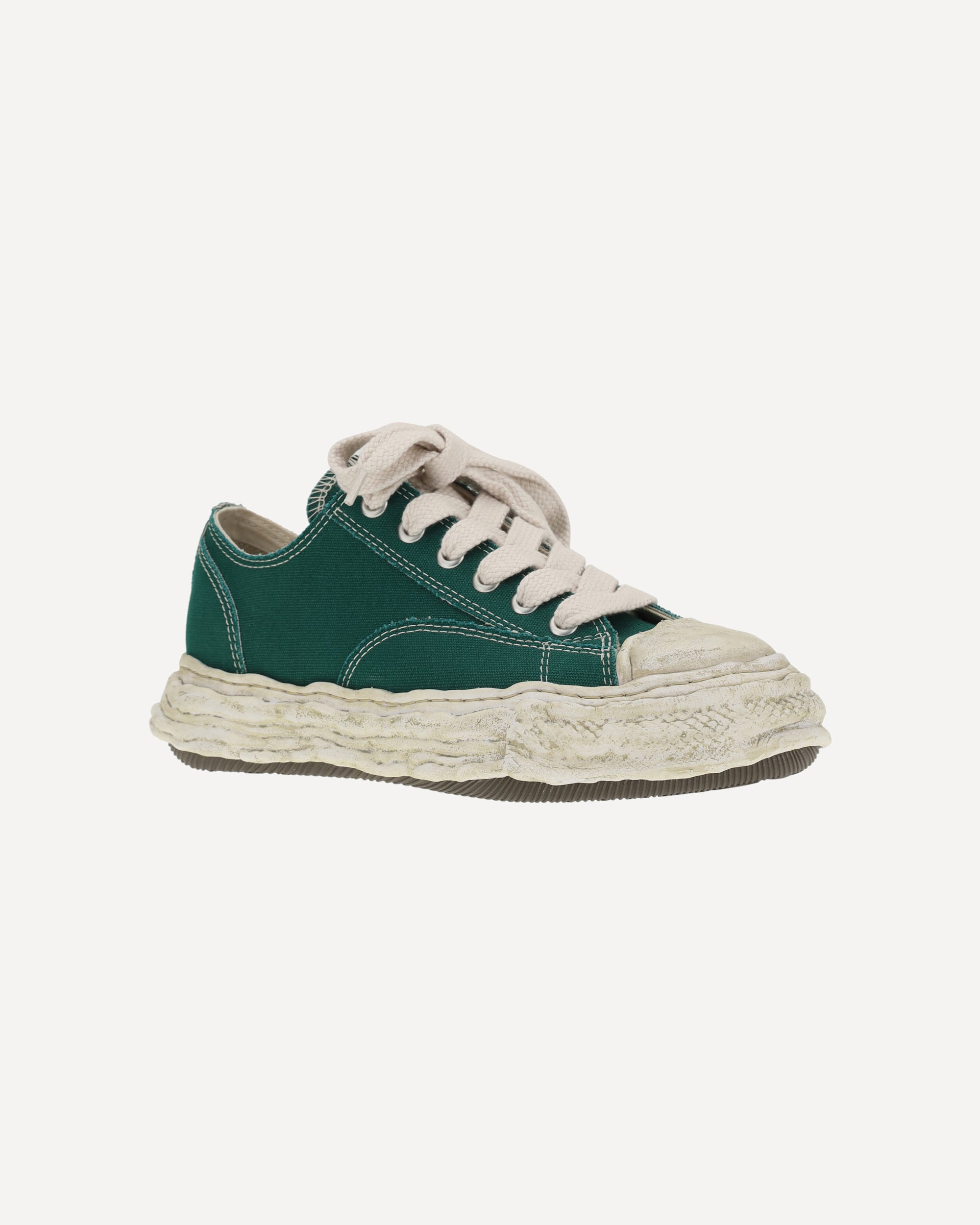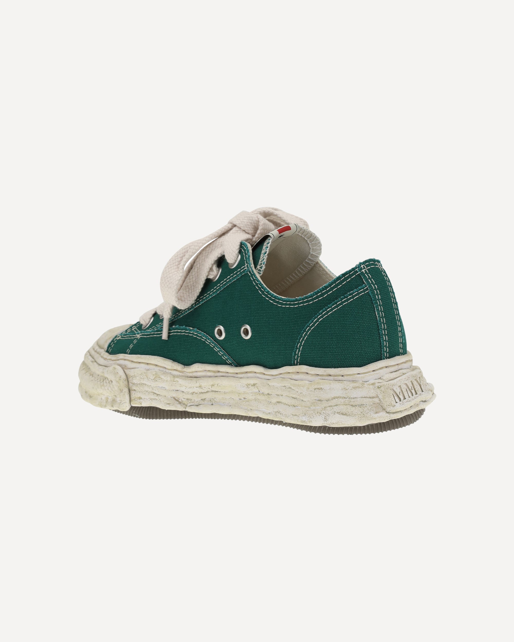 Maison Mihara Yasuhiro's Peterson 23 Sneakers feature a canvas upper enhanced by contrast stitching that emphasizes the minimalist design. The reinforced toe, lace-up closure and logo patch tongue add distinctive details. A white rubber sole with a worn-in effect completes the sleek and versatile aesthetic. A great choice for those seeking a casual yet sophisticated look.