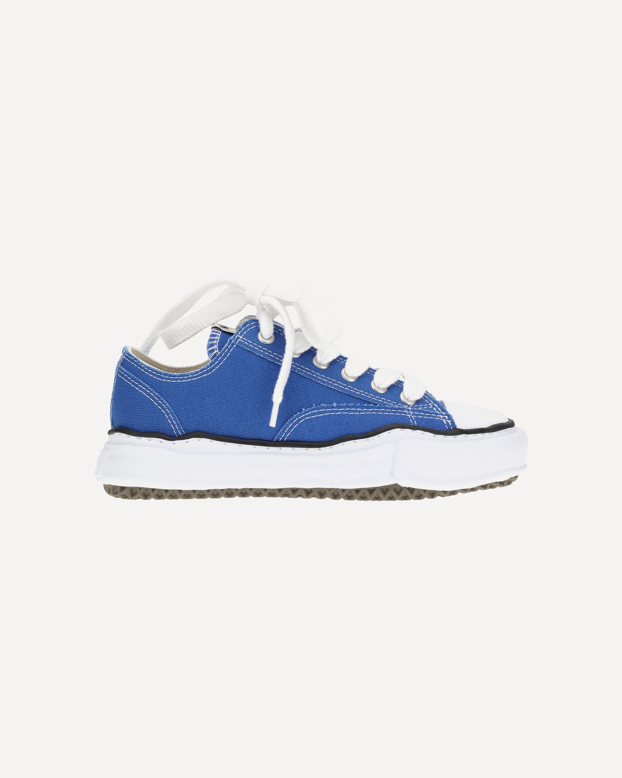 Maison Mihara Yasuhiro 's Peterson Sneakers feature a canvas upper embellished with contrast stitching that accentuates the minimalist design. The lace-up closure and logo-patched tongue add a distinctive touch, while the white rubber sole completes the sleek and versatile aesthetic. A great choice for those seeking a casual yet sophisticated look.