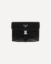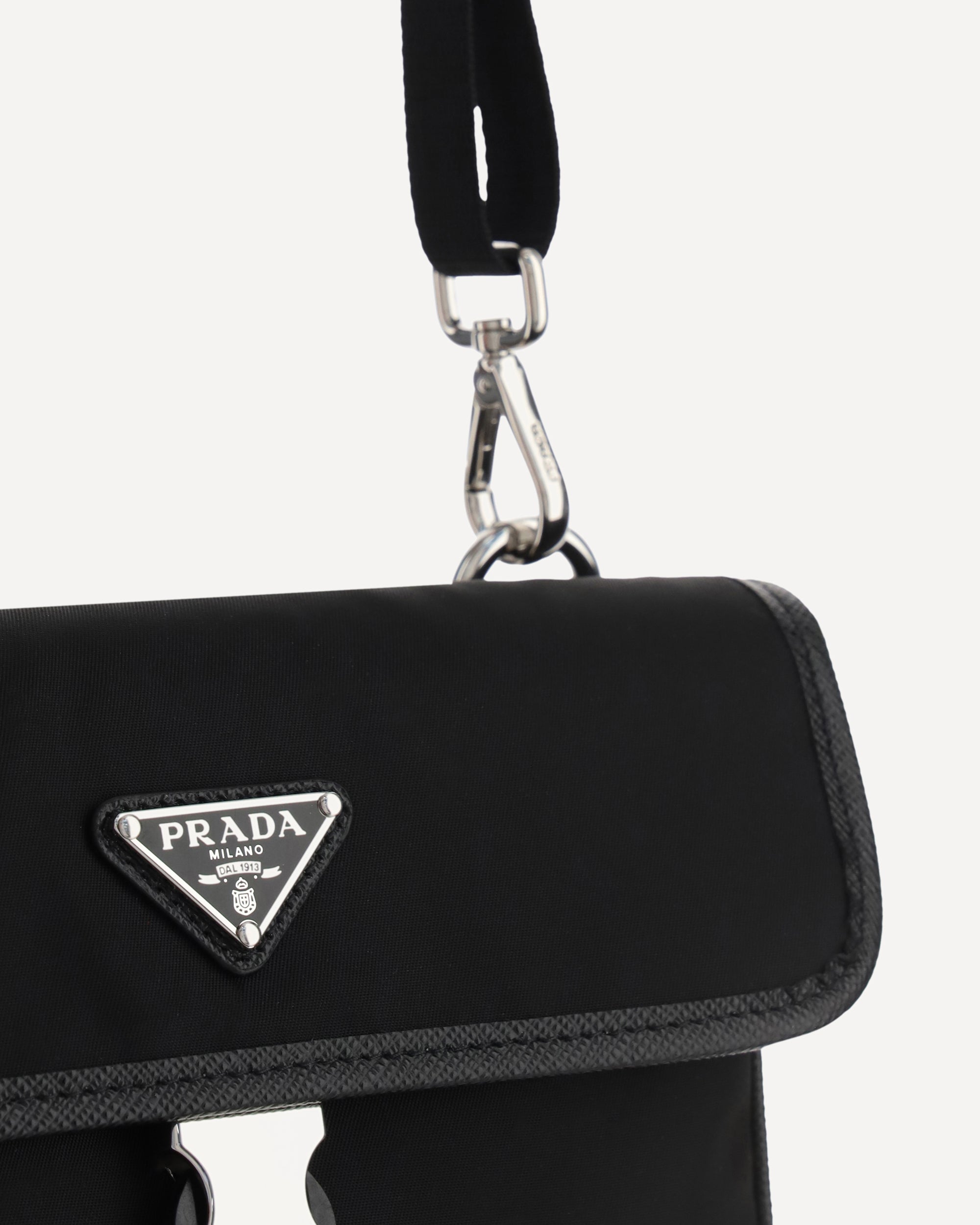 Prada's re-nylon cell Phone Case combines practicality and sustainable style. It features a metal clip closure on the front flap and a removable and adjustable webbing shoulder strap. The front features the brand's iconic signature triangular plaque, while the back has a card slot. Inside, a slot pocket compartment completes the functional design.