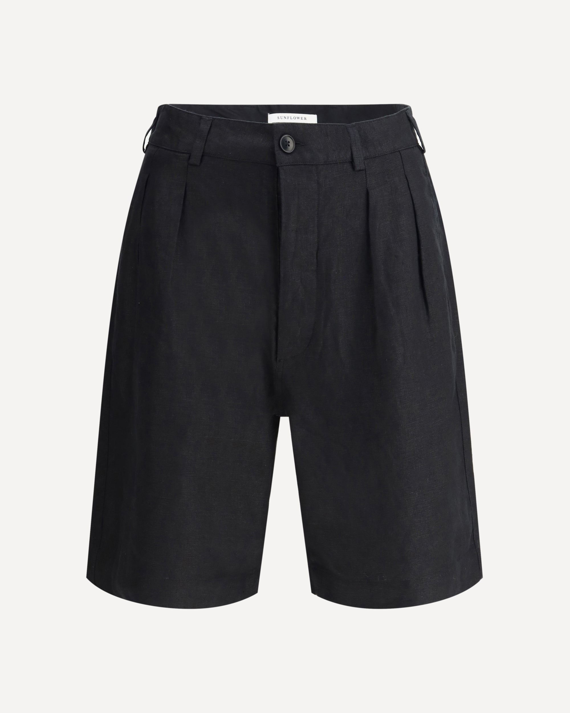 The Pleated linen Shorts by Sunflower are a fresh and versatile piece, perfect for a smart and comfortable summer look. The front button fastening gives a refined look, while the two side slash pockets add practicality and a touch of style. On the back, the two flap pockets offer extra space for small items, maintaining a clean and sophisticated design. The belt loops at the waist allow you to add a belt for an extra touch of customization. Crafted from linen, these shorts are lightweight and breathable, ideal for facing the warmest days in style and comfort.