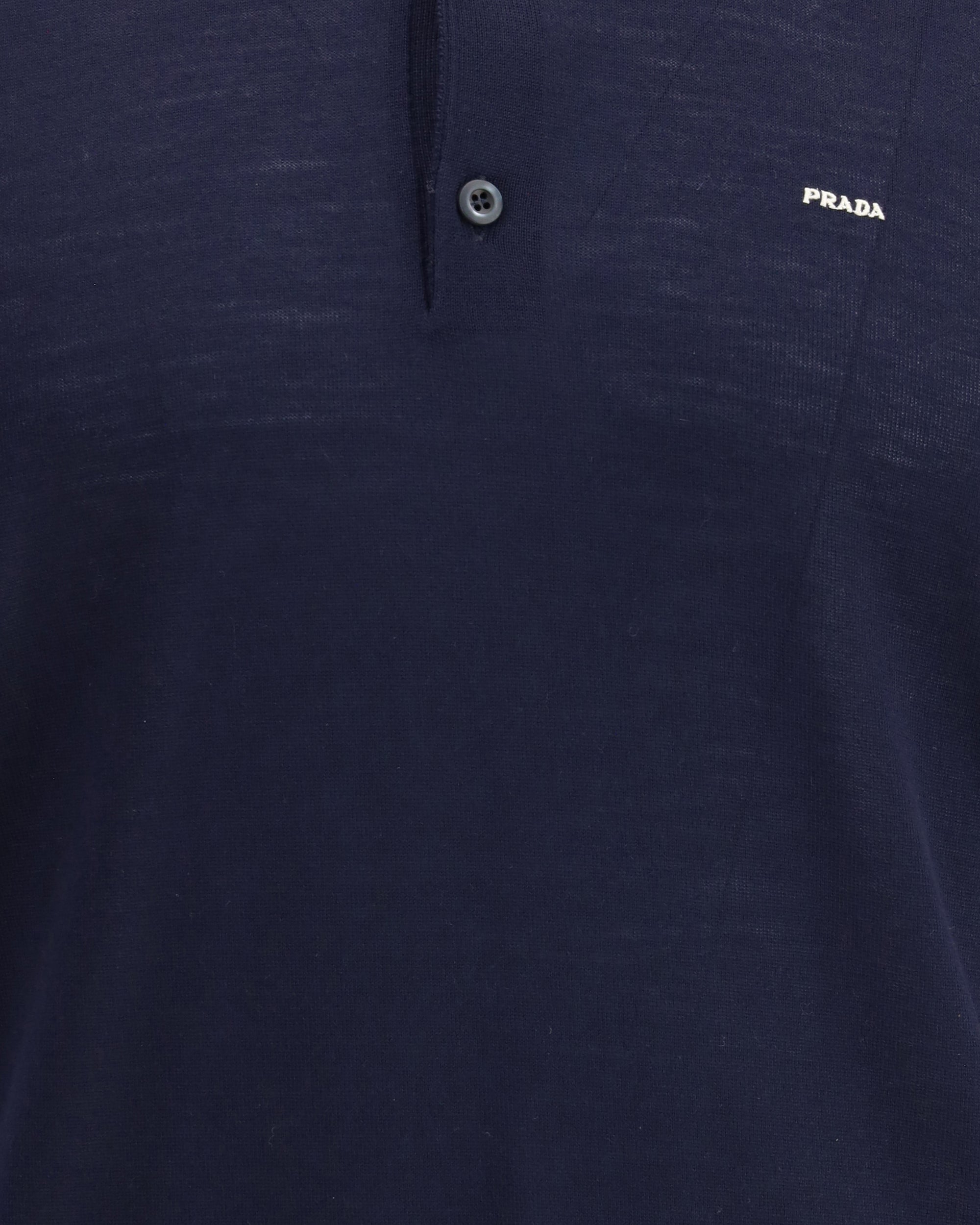 Prada's virgin wool polo Sweater combines elegance and simplicity in a timeless design. Featuring a classic ribbed collar, it has a matching hem and a discreet logo on the front, understatedly signing the garment's refined aesthetic.
