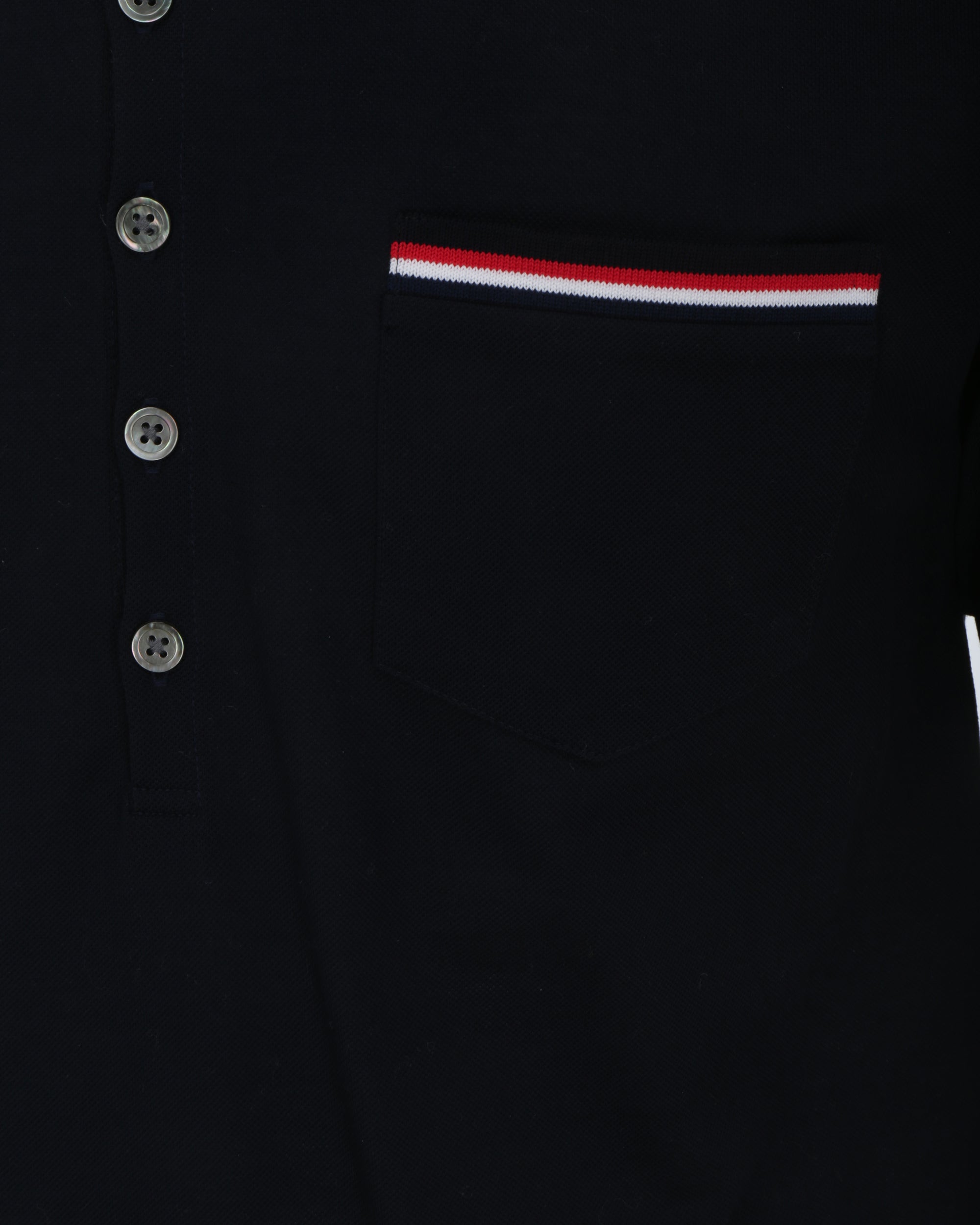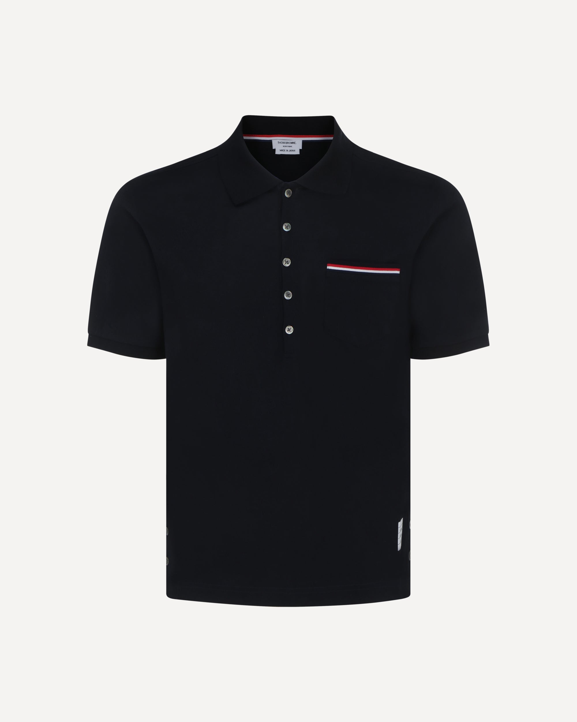 Thom Browne's cotton Polo Shirt combines elegance with distinctive style. The classic collar and tone-on-tone buttons lend a clean, sophisticated look, while the patch pocket on the front, embellished with the iconic contrasting bands, adds an unmistakable brand touch. Side slits with buttons not only enhance the fit, but also lend a touch of originality to the design. A perfect garment for those looking for a polo shirt with a sophisticated and contemporary look.