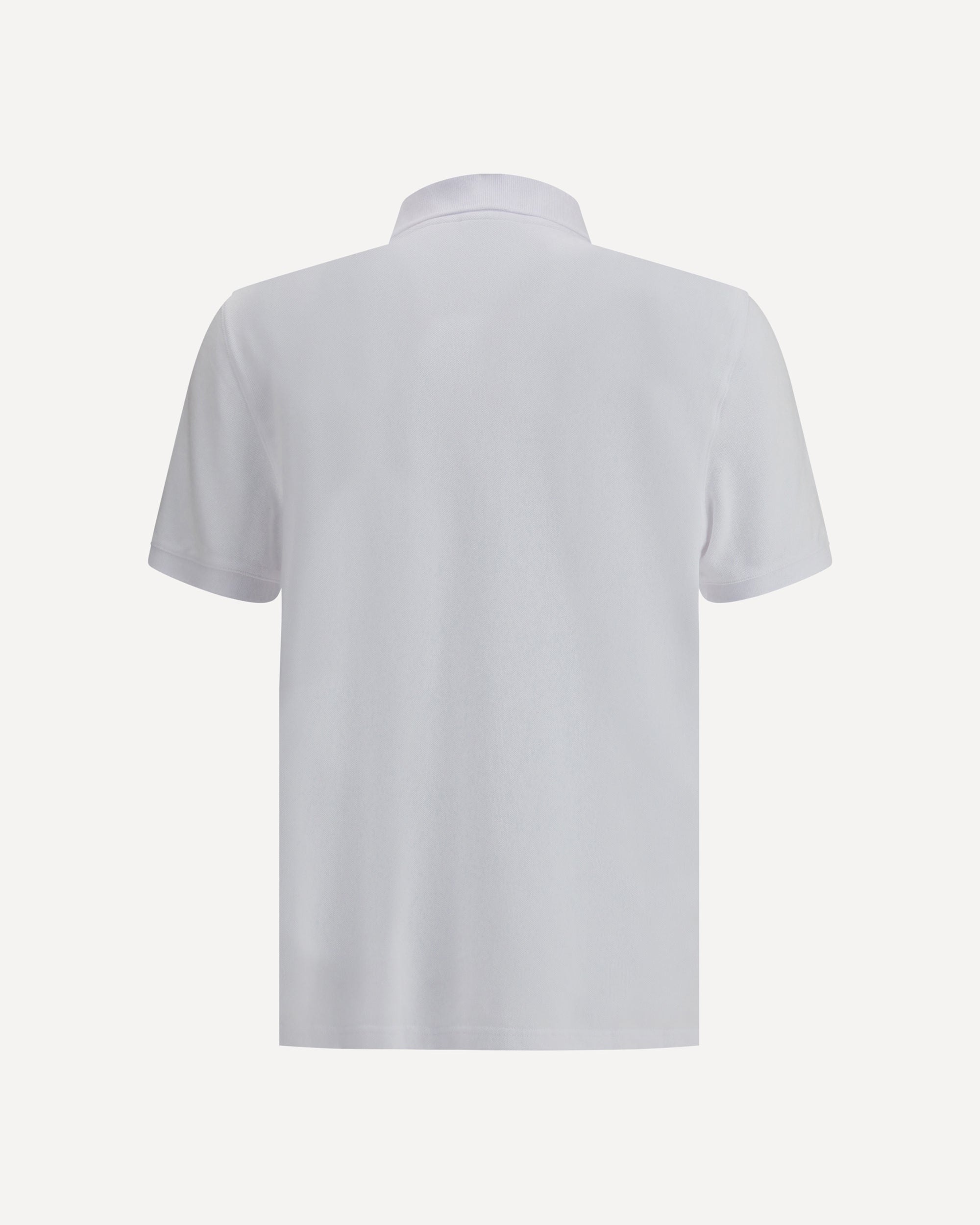 The Cotton Polo Shirt by Comme des Garçons is a garment with an original and creative design. Made of pure cotton, it features an illustration of a bear printed on the front, which immediately catches the eye with its distinctive style. The design is enhanced by a monochromatic pattern, which adds a modern and simple touch to the garment.