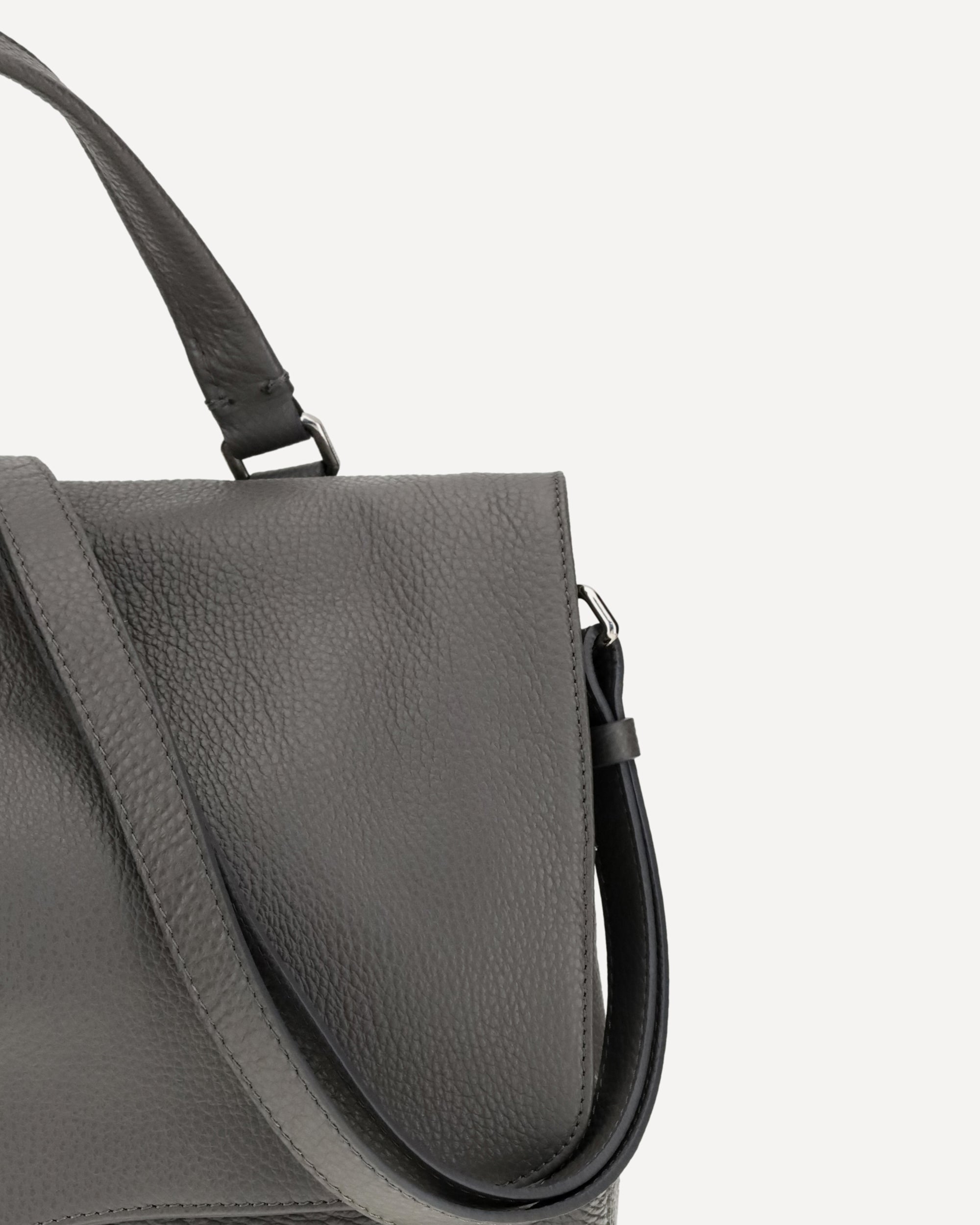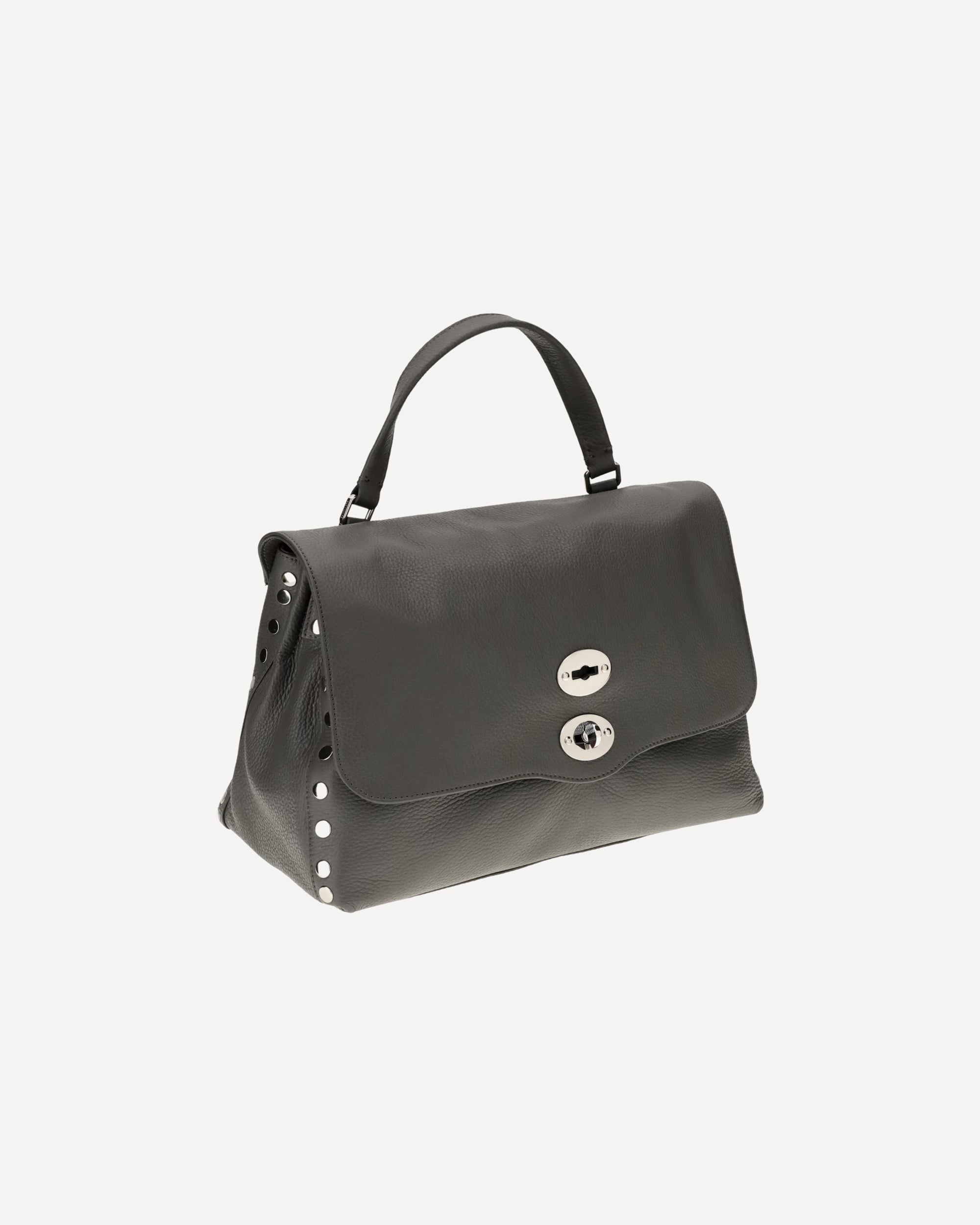 The Postina Daily leather Shoulder Bag by Zanellato is an icon of understated elegance and everyday functionality. Made of soft and durable leather, it features a single flat top handle and a front closure with swivel hook, a distinctive detail of the Postina model. The adjustable, removable shoulder strap offers several carrying options, while flat studs on the side panels add a contemporary touch. The well-organized interior is divided into two compartments with a handy welt pocket designed to neatly store essentials. A versatile accessory, ideal for accompanying the day in style.