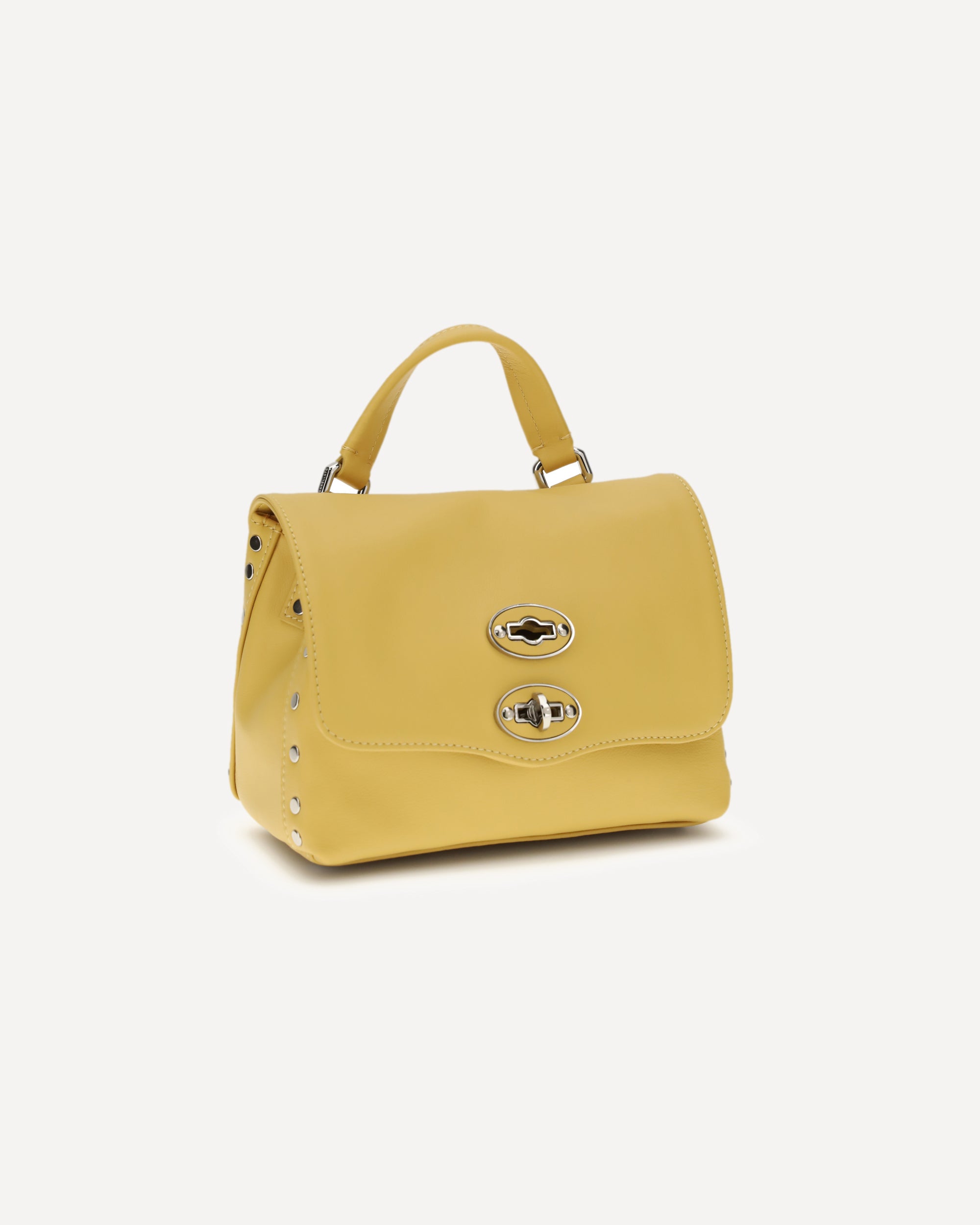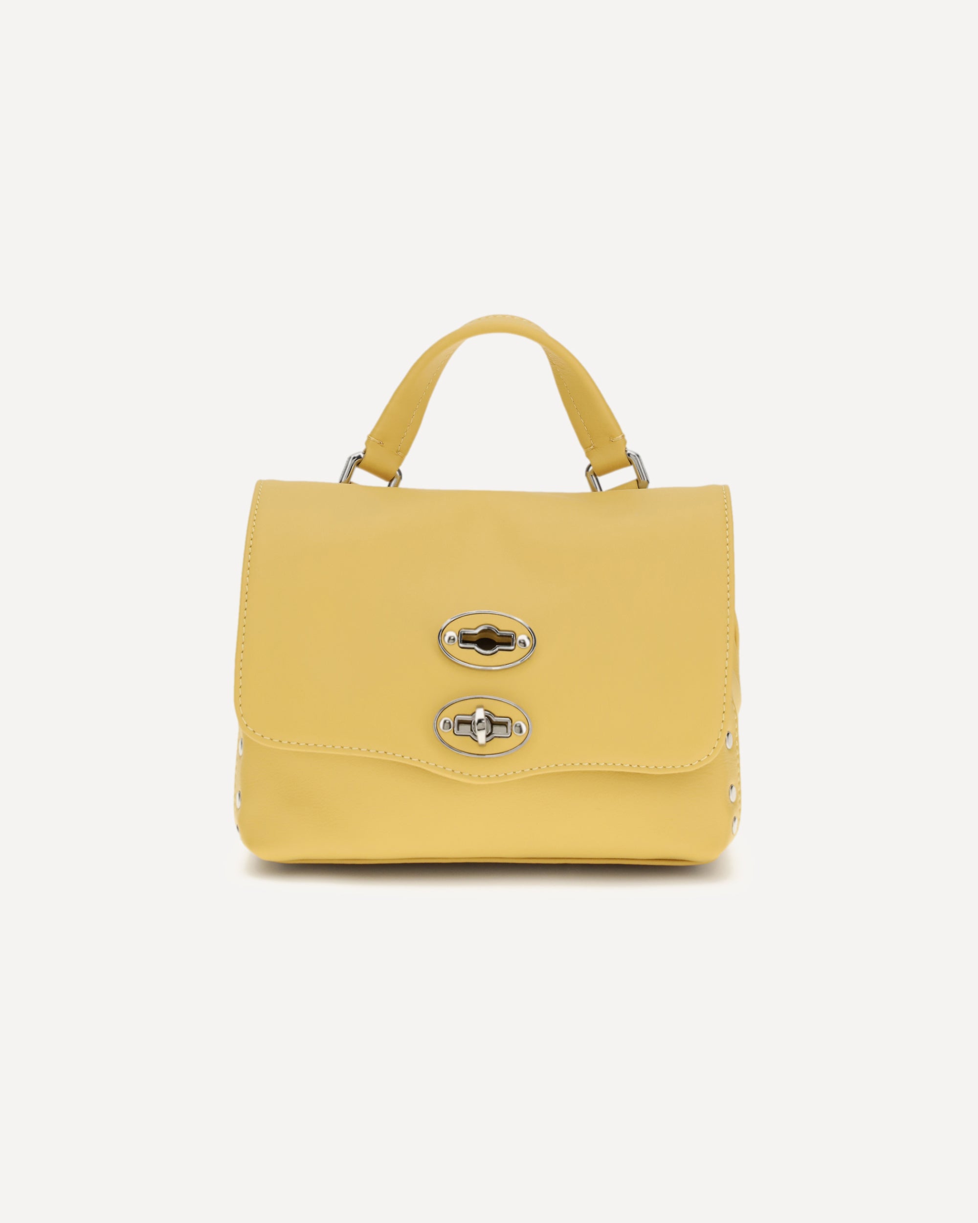 The Saeta Baby leather Postina Handbag by Zanellato is an elegant and functional model, perfect for those looking for a versatile and stylish accessory. The single flat leather handle on the top makes it comfortable to carry by hand, while the adjustable and removable shoulder strap offers the possibility to wear it either on the shoulder or crossbody, adapting to different needs. The front swivel hook closure is a distinctive detail that gives the bag a touch of character, while the flat studs on the side panels add an element of originality and a rock-chic accent. A perfect mix of style, practicality and quality.