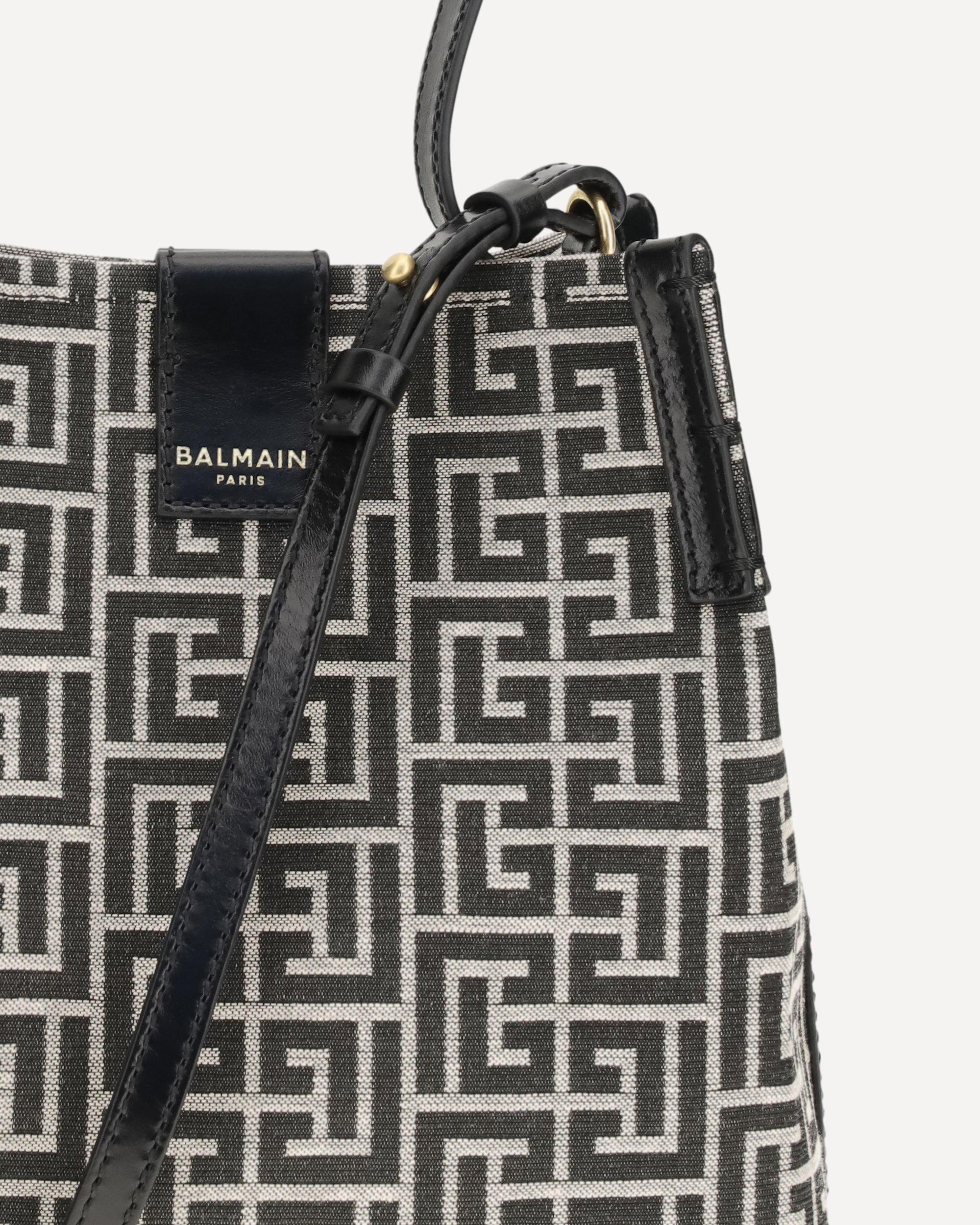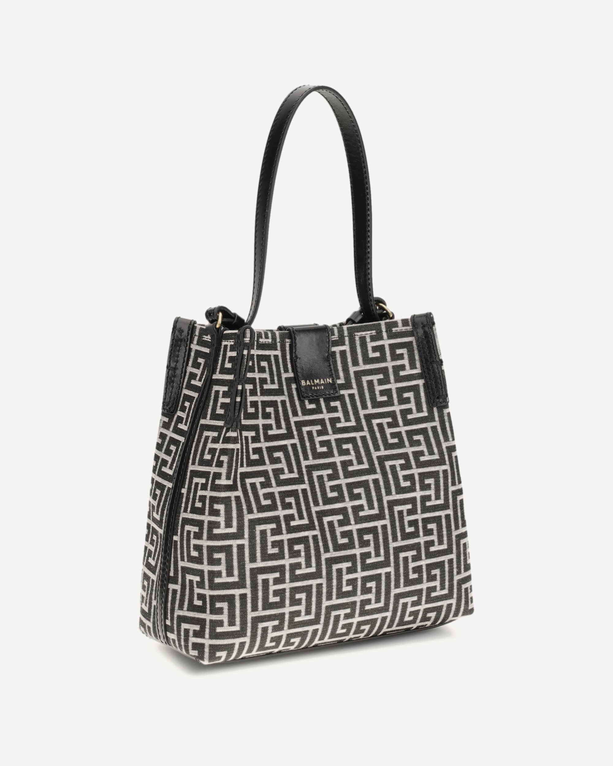 BALMAINRelease Jacquard and leather Bucket Bag