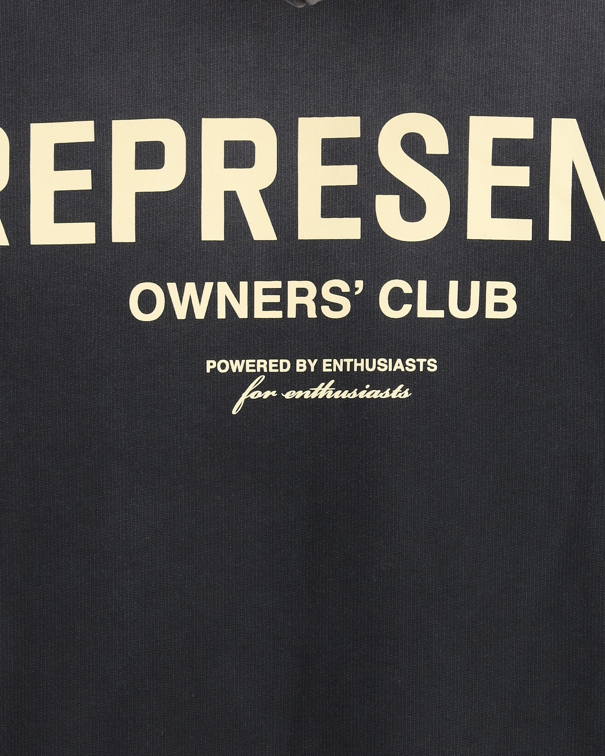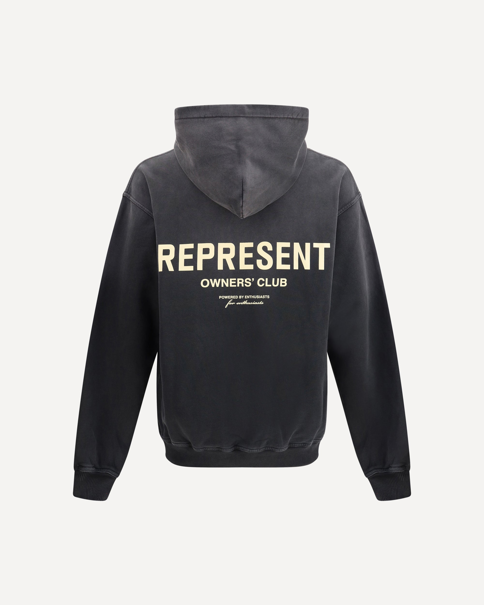 The Owners Club cotton Hoodie by Represent is a garment with a distinctive and comfortable streetwear style. The adjustable button-down hood allows you to customize the fit, while the ribbed cuffs and hem ensure a comfortable, snug fit. The front kangaroo pocket adds practicality, perfect for keeping hands warm or storing small items. The brand's iconic monogram printed in contrast on the front gives a touch of recognition without going overboard, while the maxi print on the back with the same monogram creates a bold visual effect, making the sweatshirt a true statement piece.