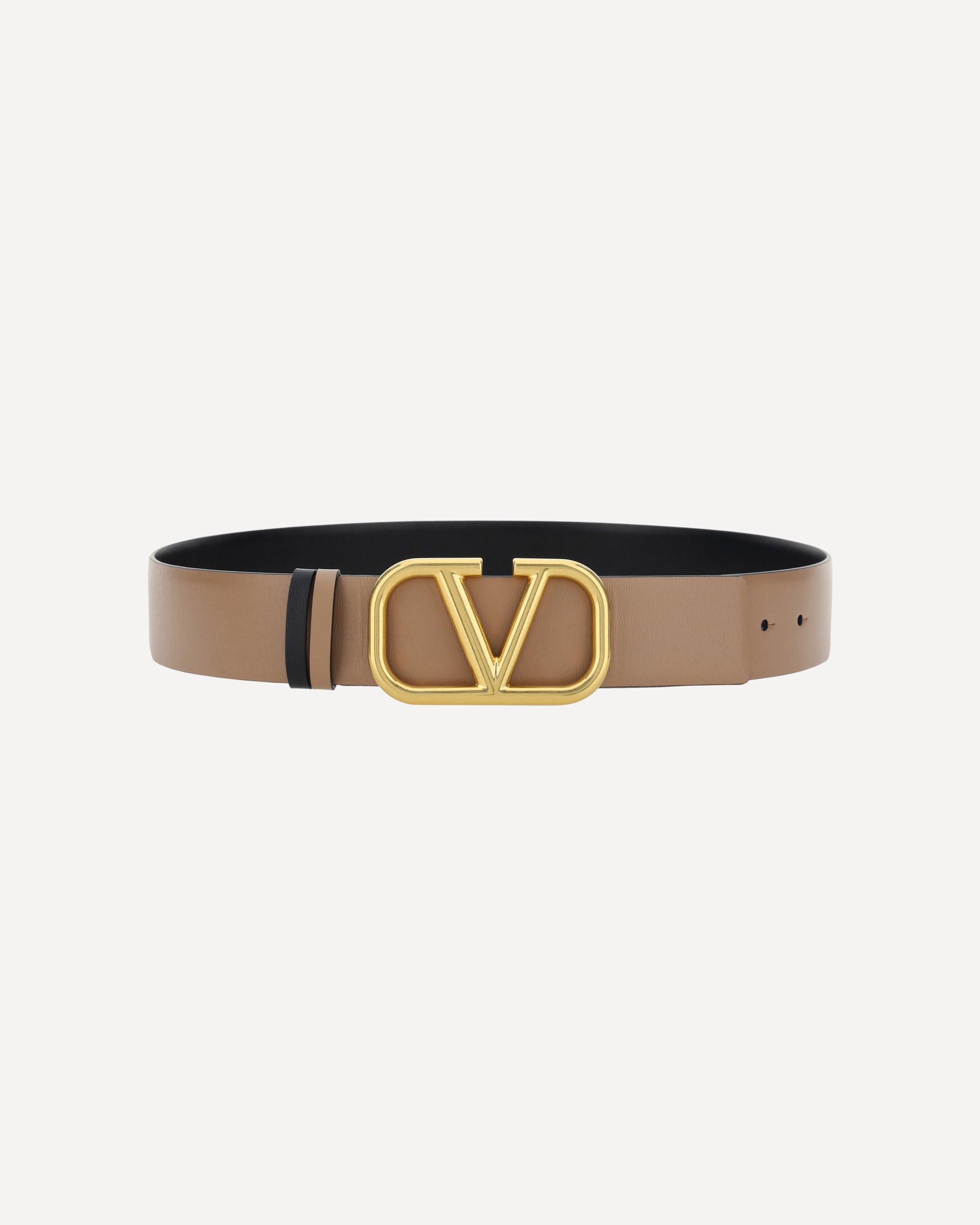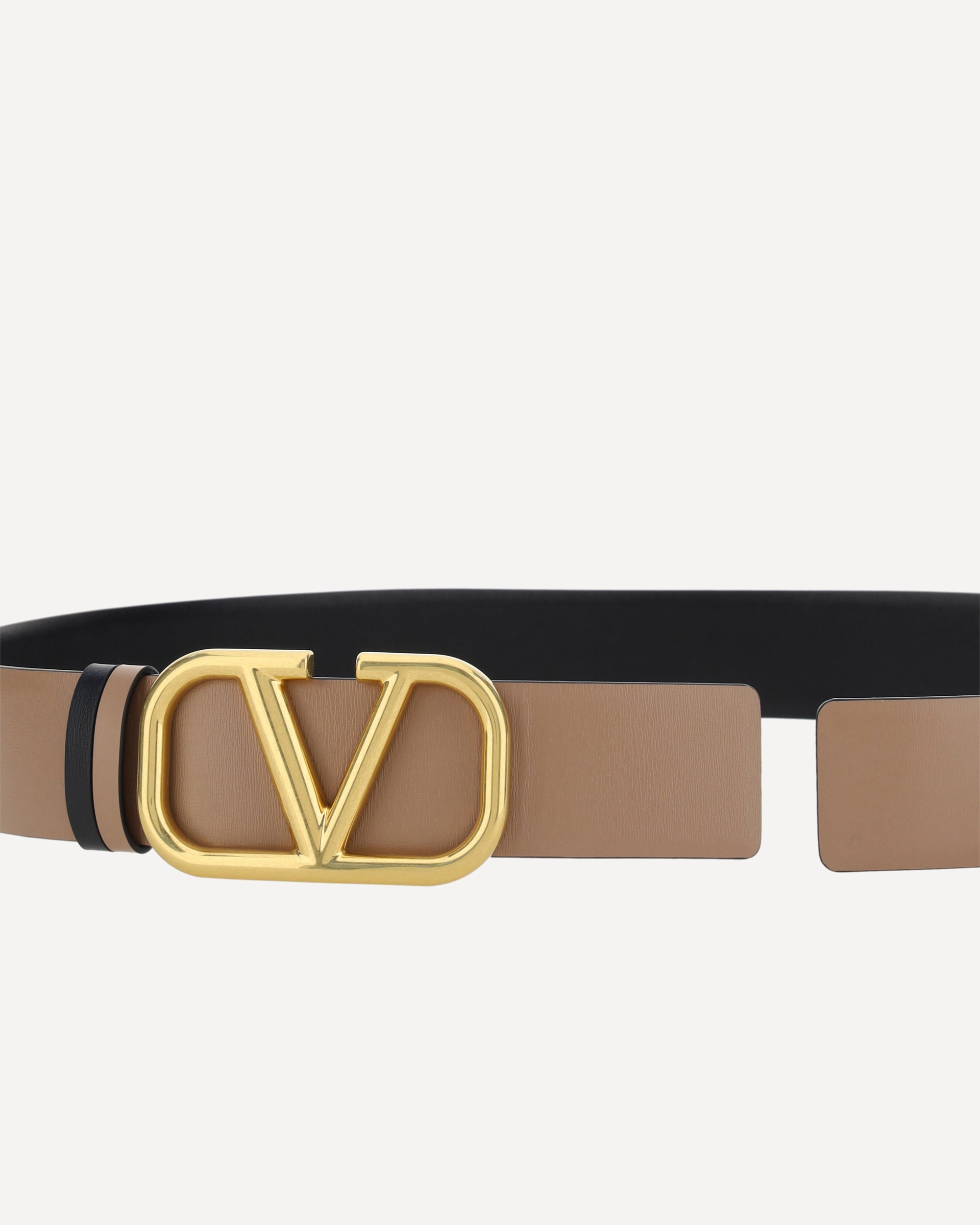 The Valentino Garavani leather Belt is a sophisticated and refined accessory, which stands out for its elegant design and the closure with the iconic VLogo buckle of the brand. This emblematic luxury detail contrasts magnificently with the leather, creating a visually impactful effect that captures attention. The reversible double-face monochrome model offers versatility, allowing you to choose between two styles, one more sober and the other more daring, easily adapting to various outfits. A touch of class that adds refinement and a sense of exclusivity to your look.