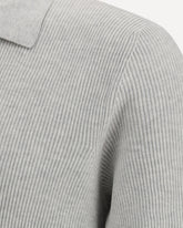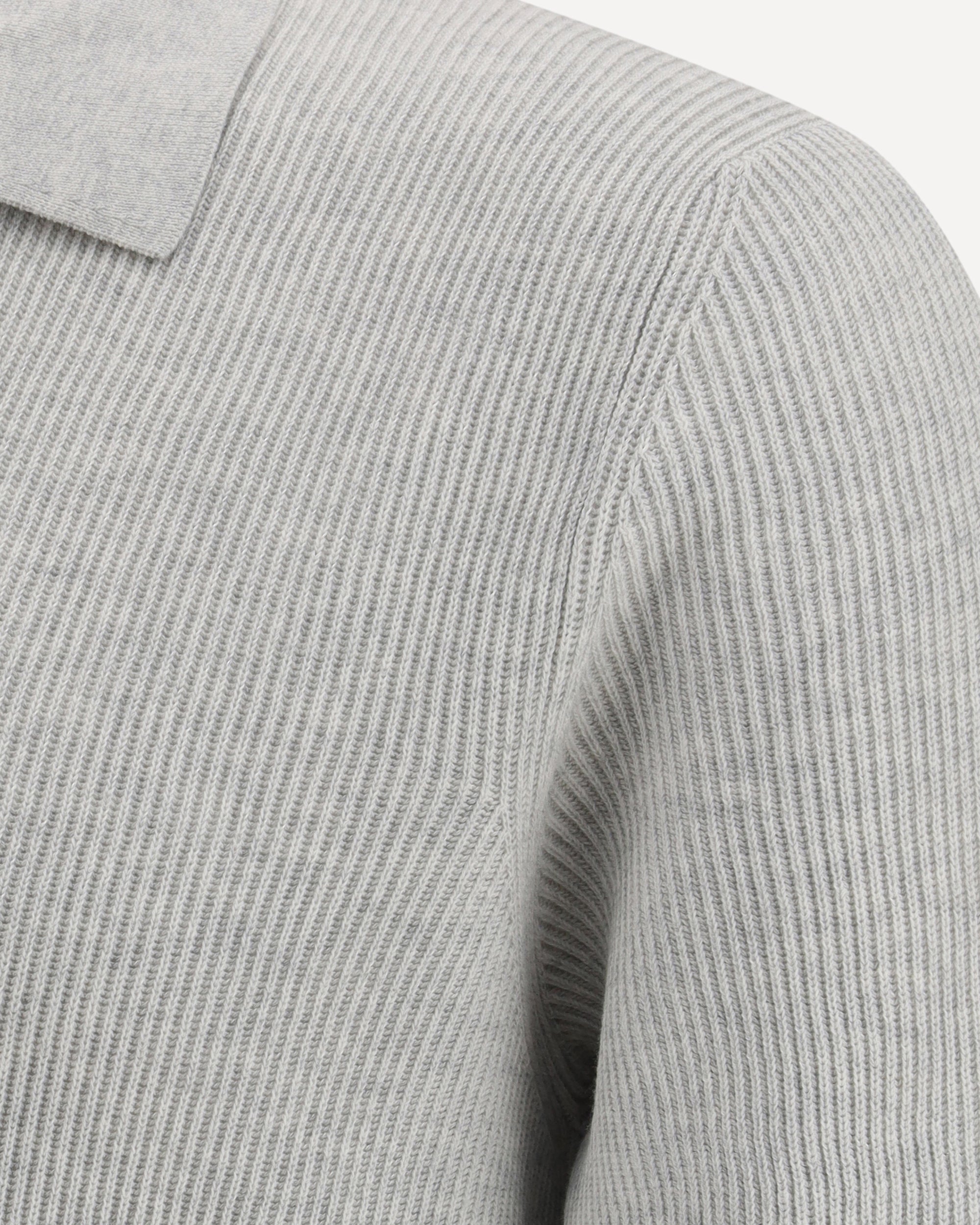 The cotton ribbed Polo Sweater by Brunello Cucinelli features a classic collar and V-neck, adding a touch of understated elegance. The all-over ribbed design lends texture to the fabric, giving the garment a comfortable feel and structured look.