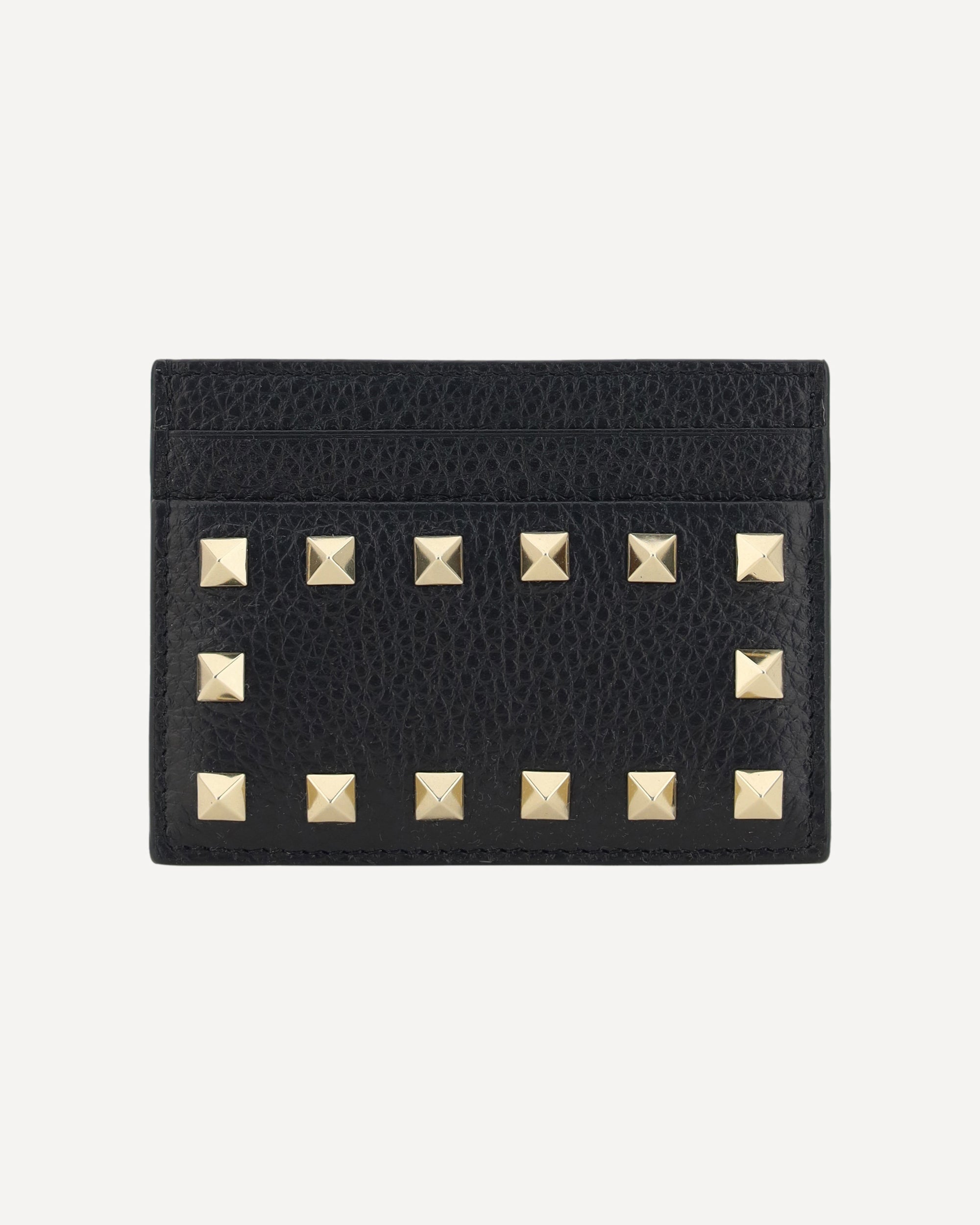 Valentino Garavani's leather Card Holder features card slots on the front and back, offering practicality and functionality. The iconic Rockstud studs are applied on the front panel, adding a distinctive and bold touch to the design. This accessory combines elegance and contemporary style, perfect for those seeking a card holder that is both luxurious and practical.