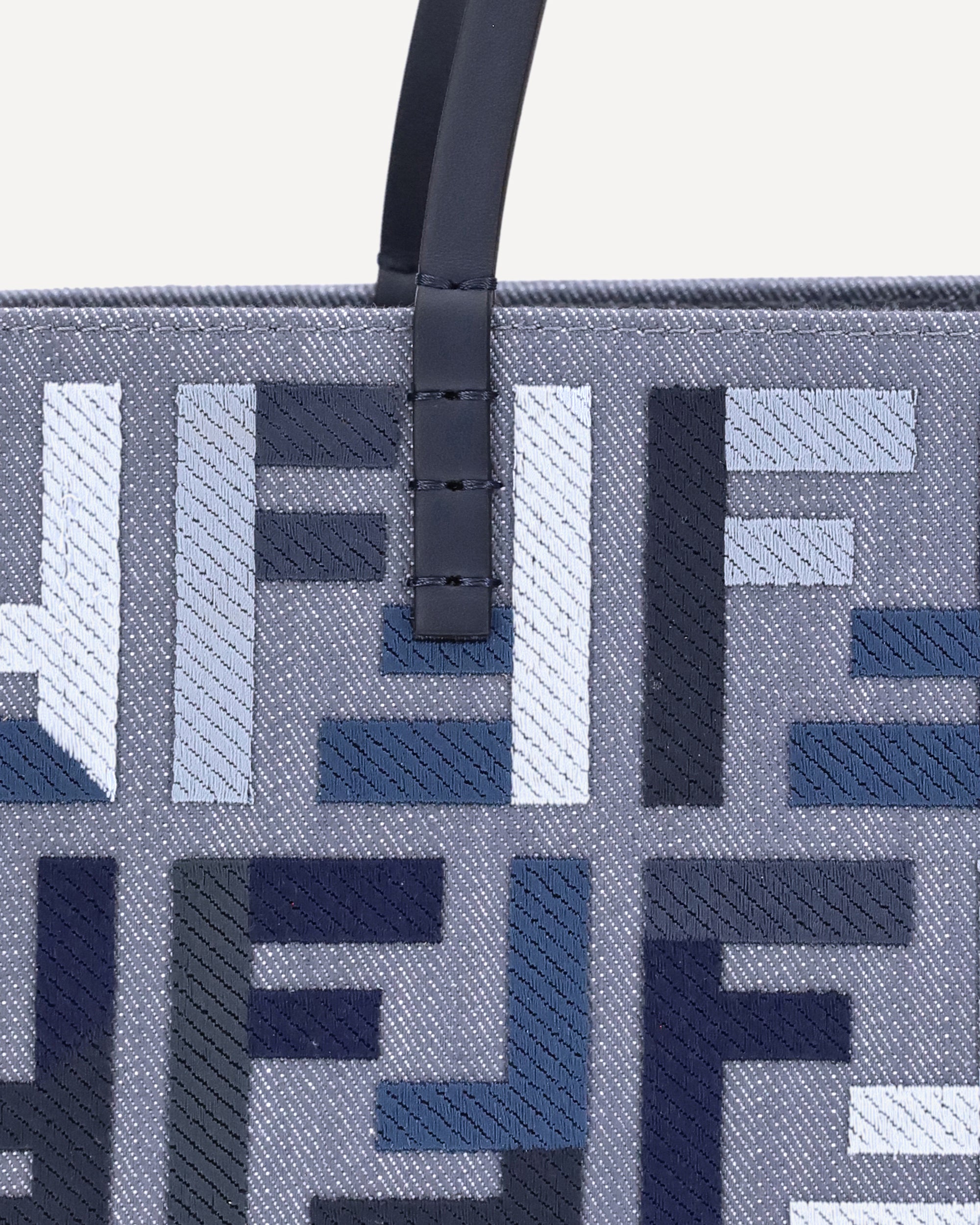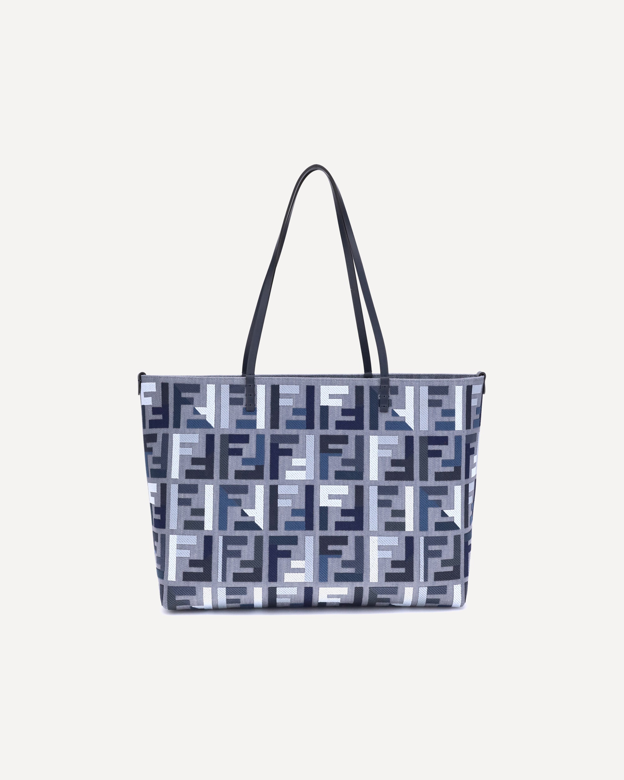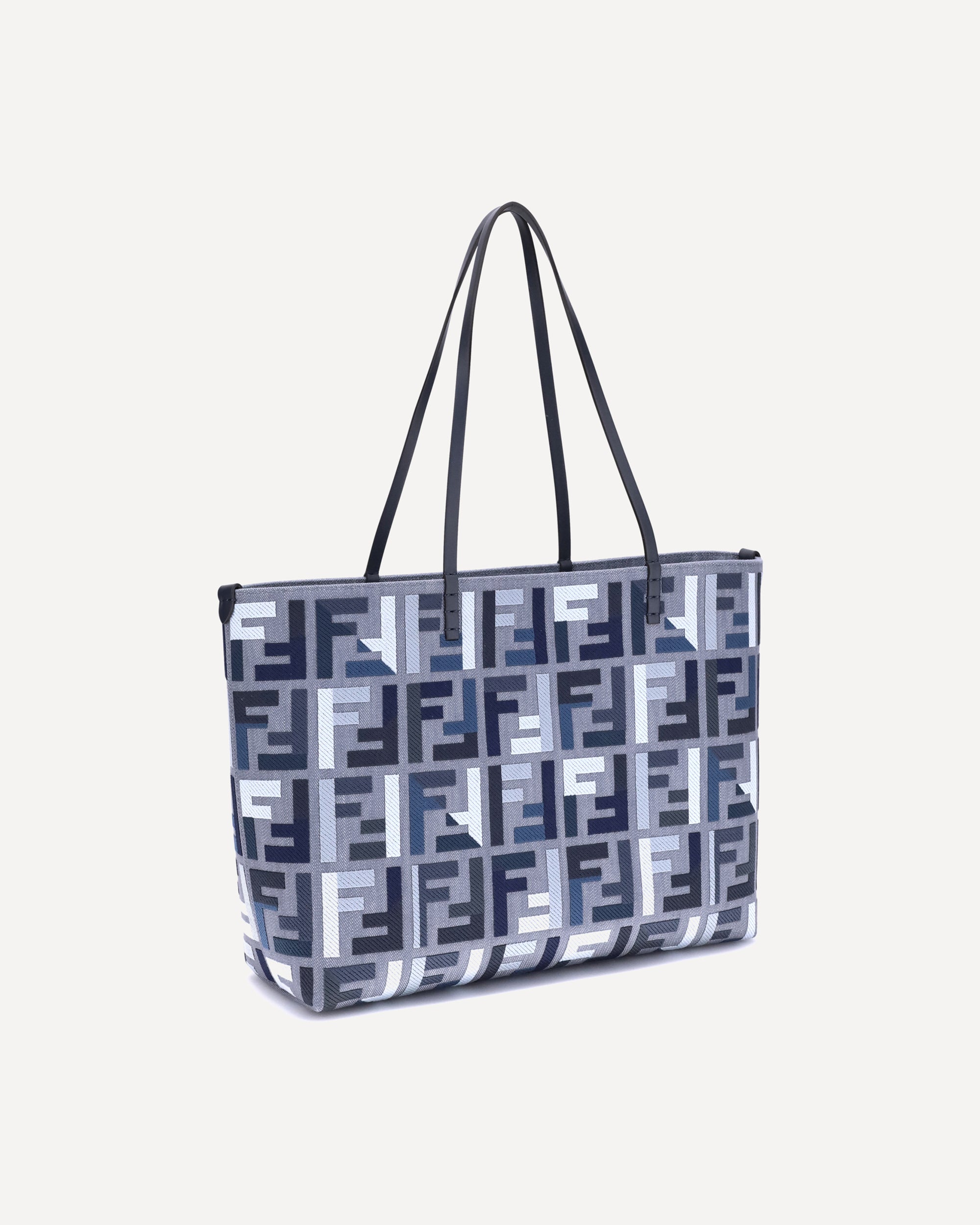 The Fendi large Roll Tote Bag is an elegant reinterpretation of the classic shopper, perfect for a sophisticated and contemporary look. Crafted from fine canvas, it is embellished with the iconic FF embroidery that decorates the entire surface, giving it a strong distinctive character. The two flat leather handles ensure comfortable and resistant portability, while the lined interior features a practical zip pocket, ideal for organizing essentials in style.