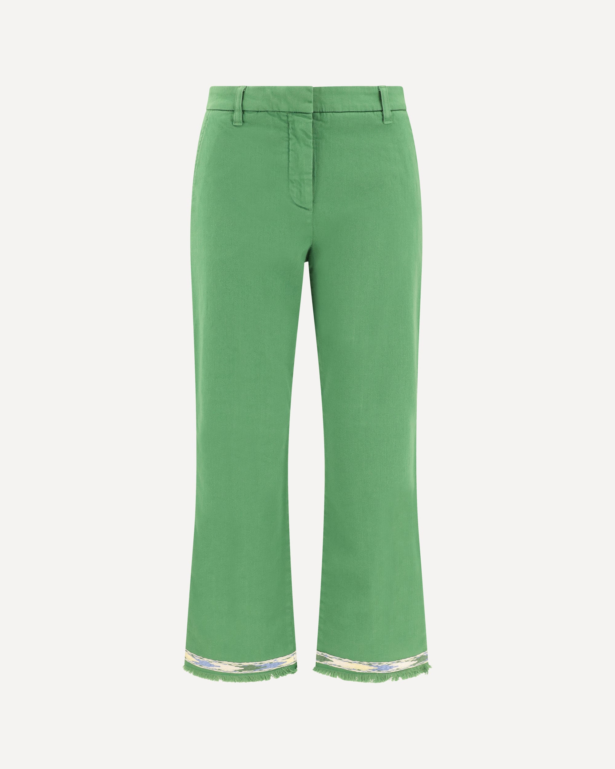 The Ross Pants by True Royal are a modern and distinctive garment, featuring a straight design that offers a comfortable, streamlined fit. The front zipper and hook-and-eye closure adds a touch of understated elegance, while belt loops at the waistband allow you to further customize the fit with a belt of your choice. Frayed and embroidered hems are a stylistic detail that gives the pants a touch of originality and character, making them perfect for a casual-chic yet sophisticated look.