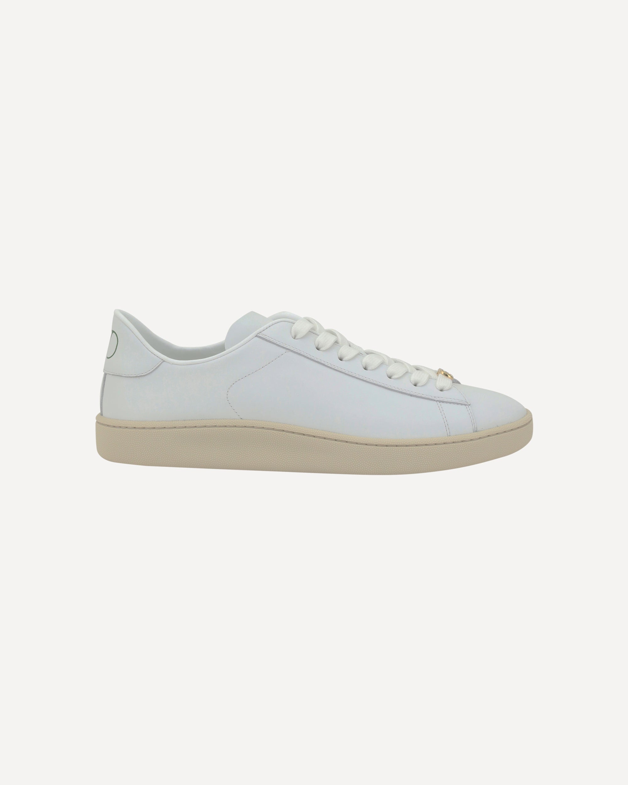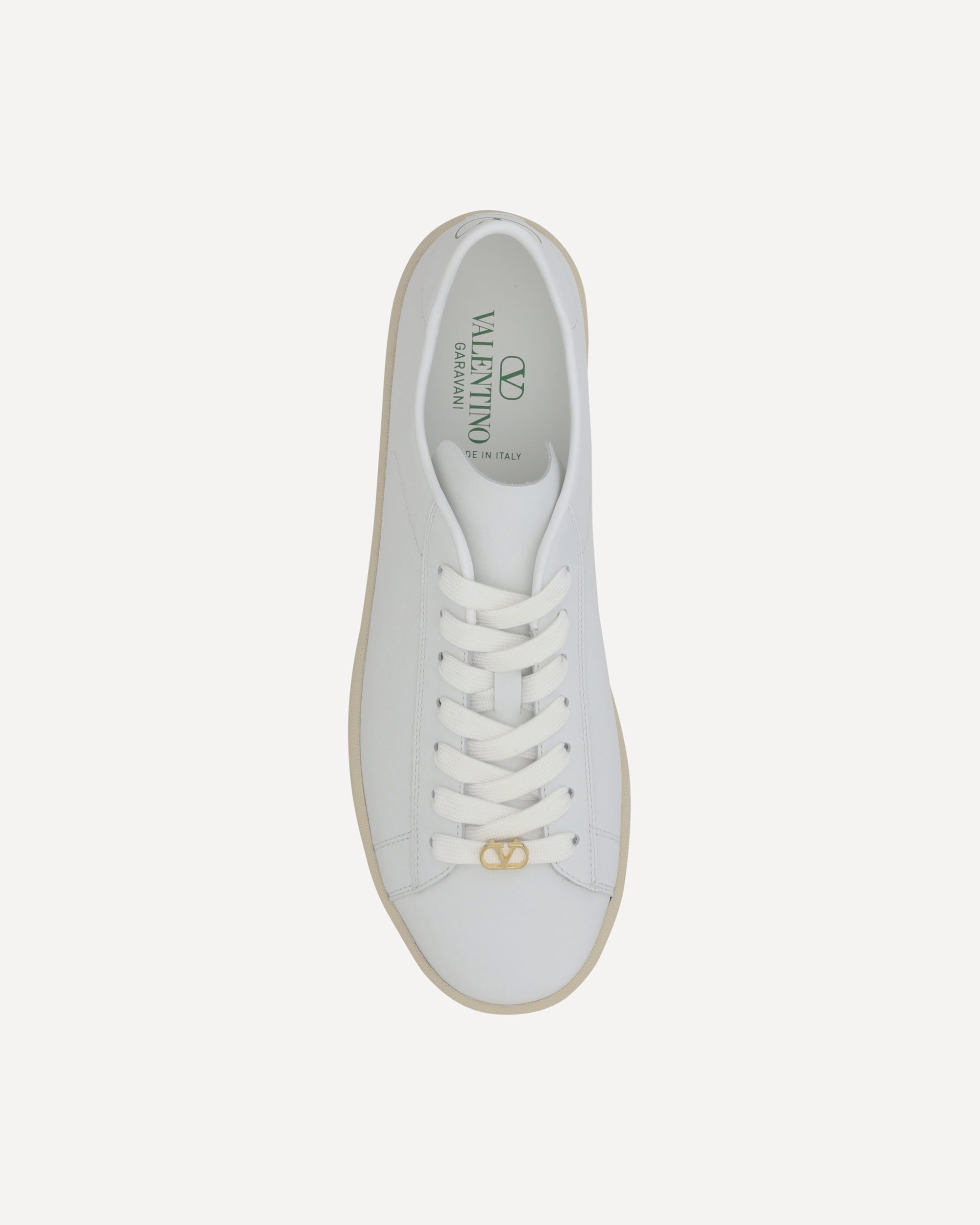 Valentino Garavani's Royco leather Sneakers are a sophisticated and contemporary design. Featuring a round toe and a lace-up front closure, they feature an iconic detail: a VLogo plaque that adds a distinctive touch. The press-studded logoed heel reinforces the brand's identity. The flat sole and logoed insole ensure comfort, while the clean, sleek design makes them perfect for a casual-chic look.