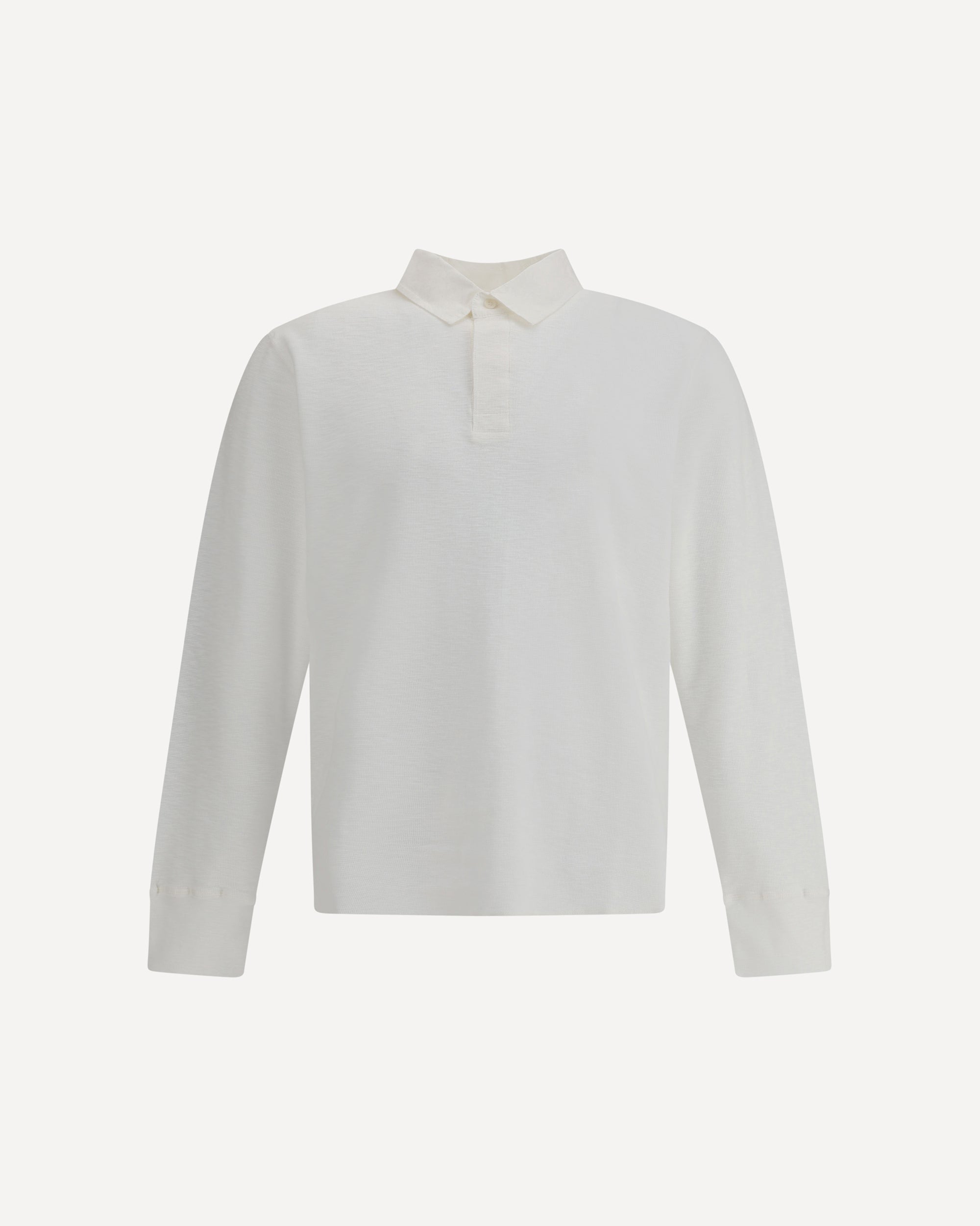 Waffle Rugby Polo Shirt by Sunflower is a garment with a refined, casual style, made from pure cotton with a waffle knit that gives texture and depth to the fabric. This long-sleeved design features a classic collar inspired by traditional rugby polo shirts, with a concealed button front closure, giving it a clean, minimalist look. Ribbed cuffs ensure a comfortable, snug fit, while the hem with exposed stitching adds a touch of character and craftsmanship.