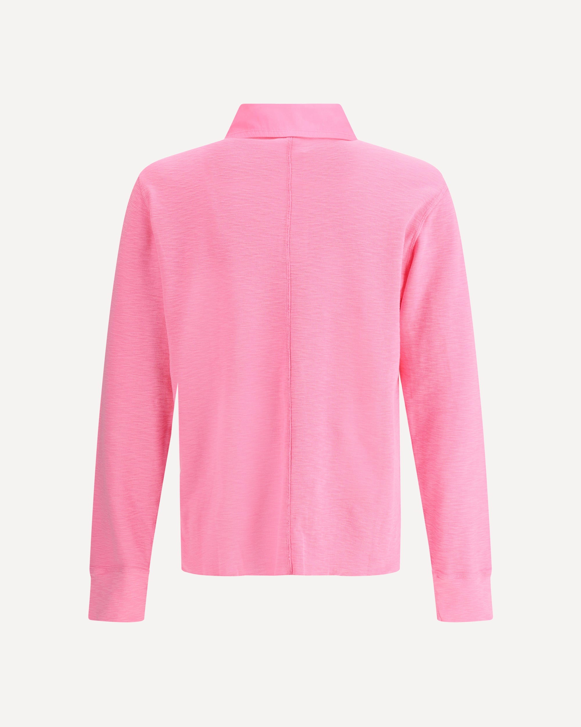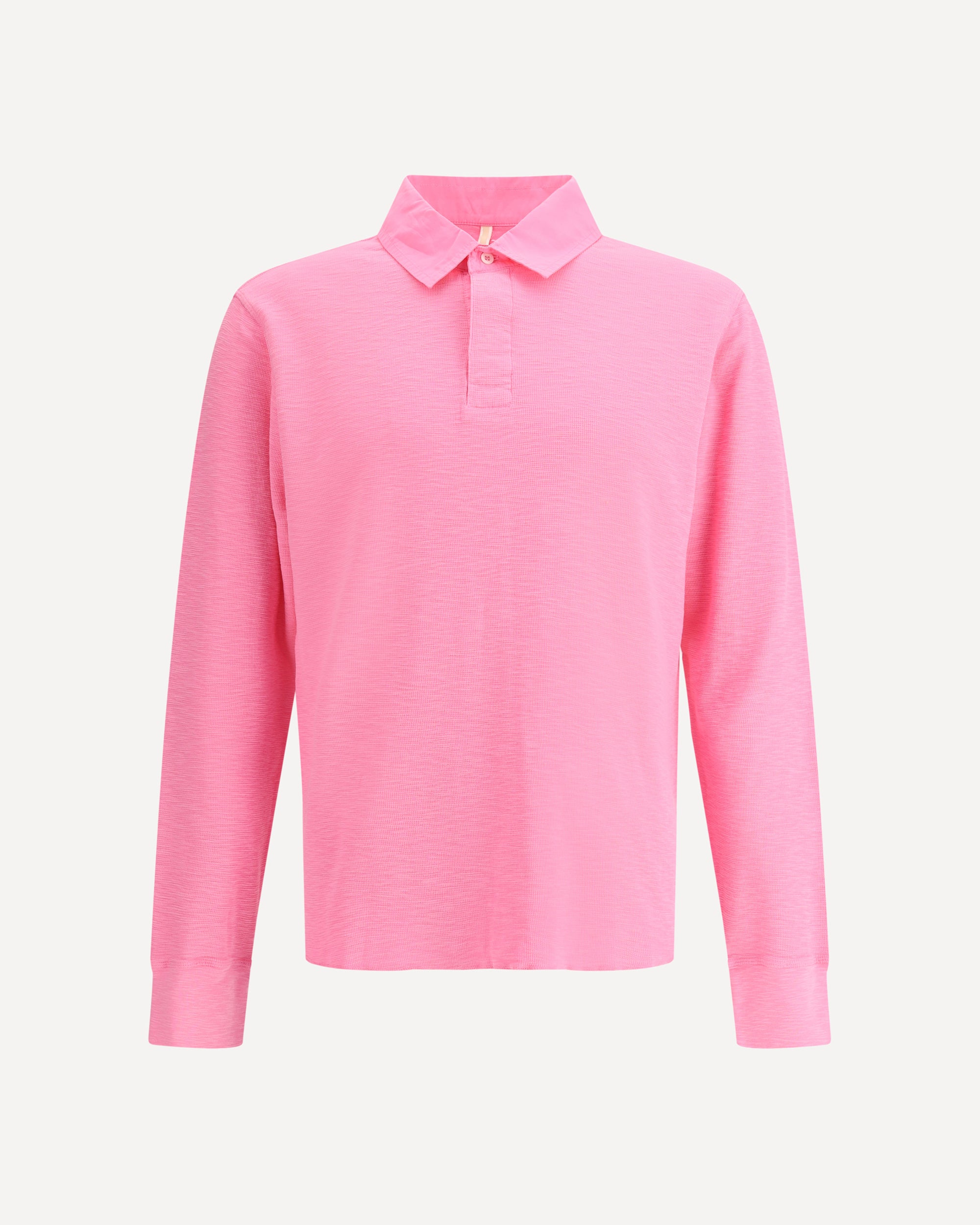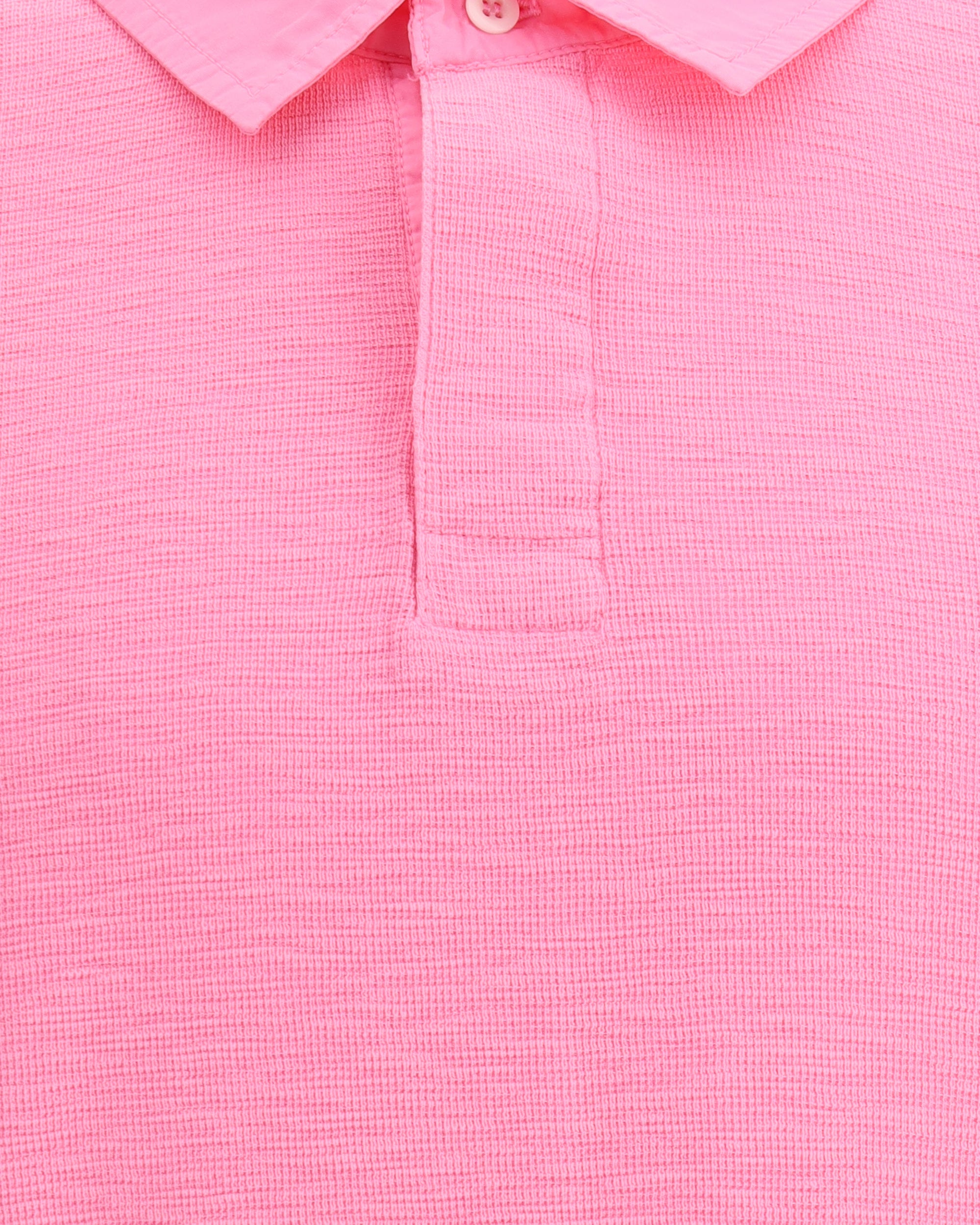 Waffle Rugby Polo Shirt by Sunflower is a garment with a refined, casual style, made from pure cotton with a waffle knit that gives texture and depth to the fabric. This long-sleeved design features a classic collar inspired by traditional rugby polo shirts, with a concealed button front closure, giving it a clean, minimalist look. Ribbed cuffs ensure a comfortable, snug fit, while the hem with exposed stitching adds a touch of character and craftsmanship.