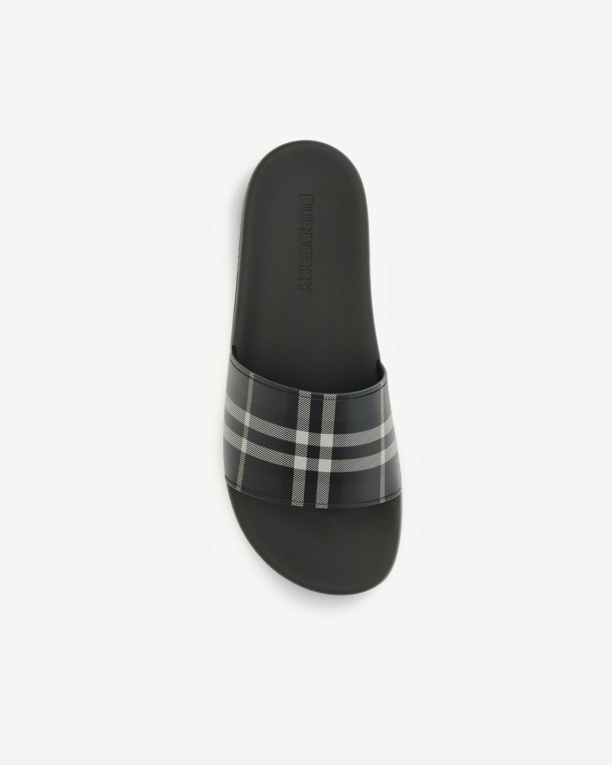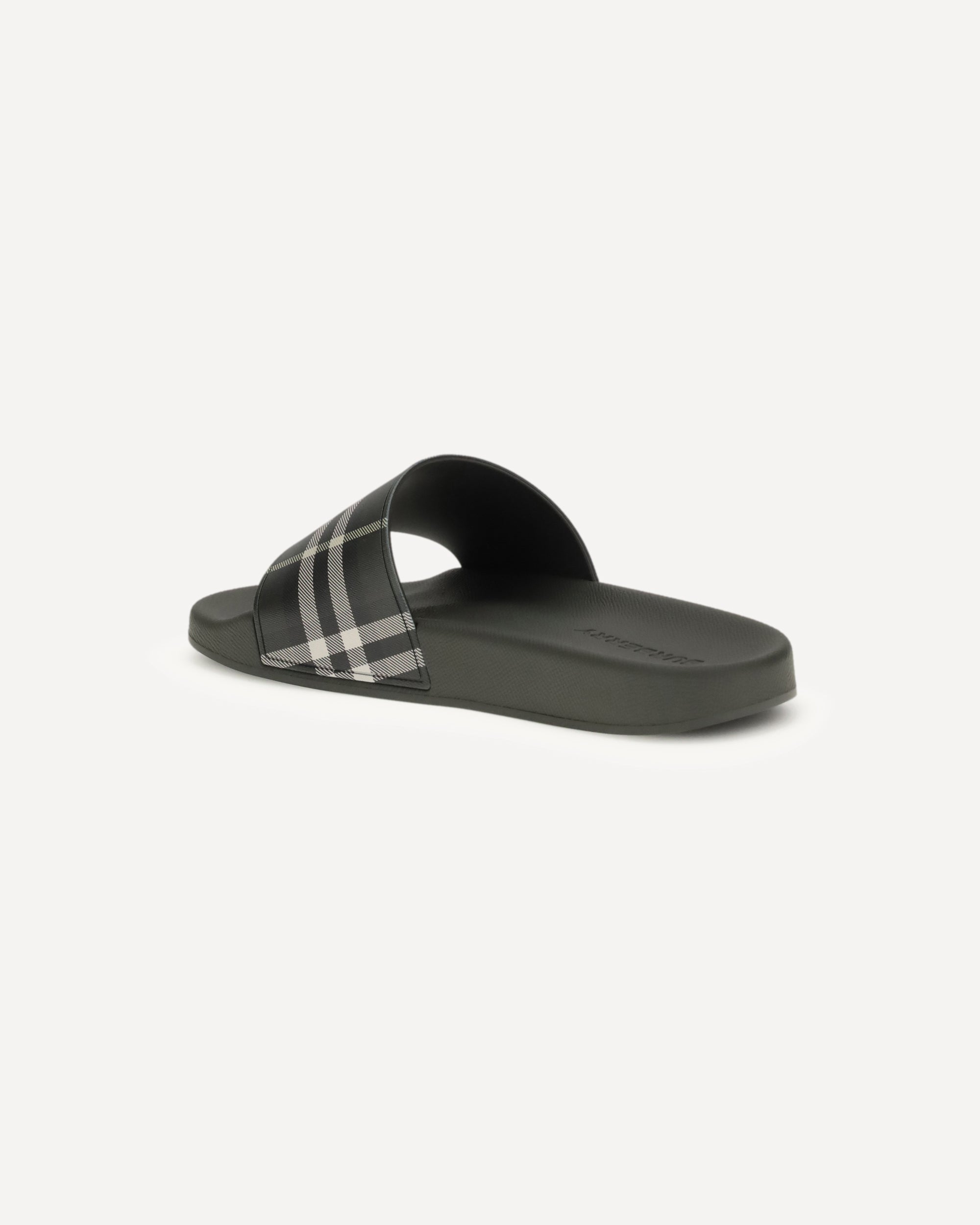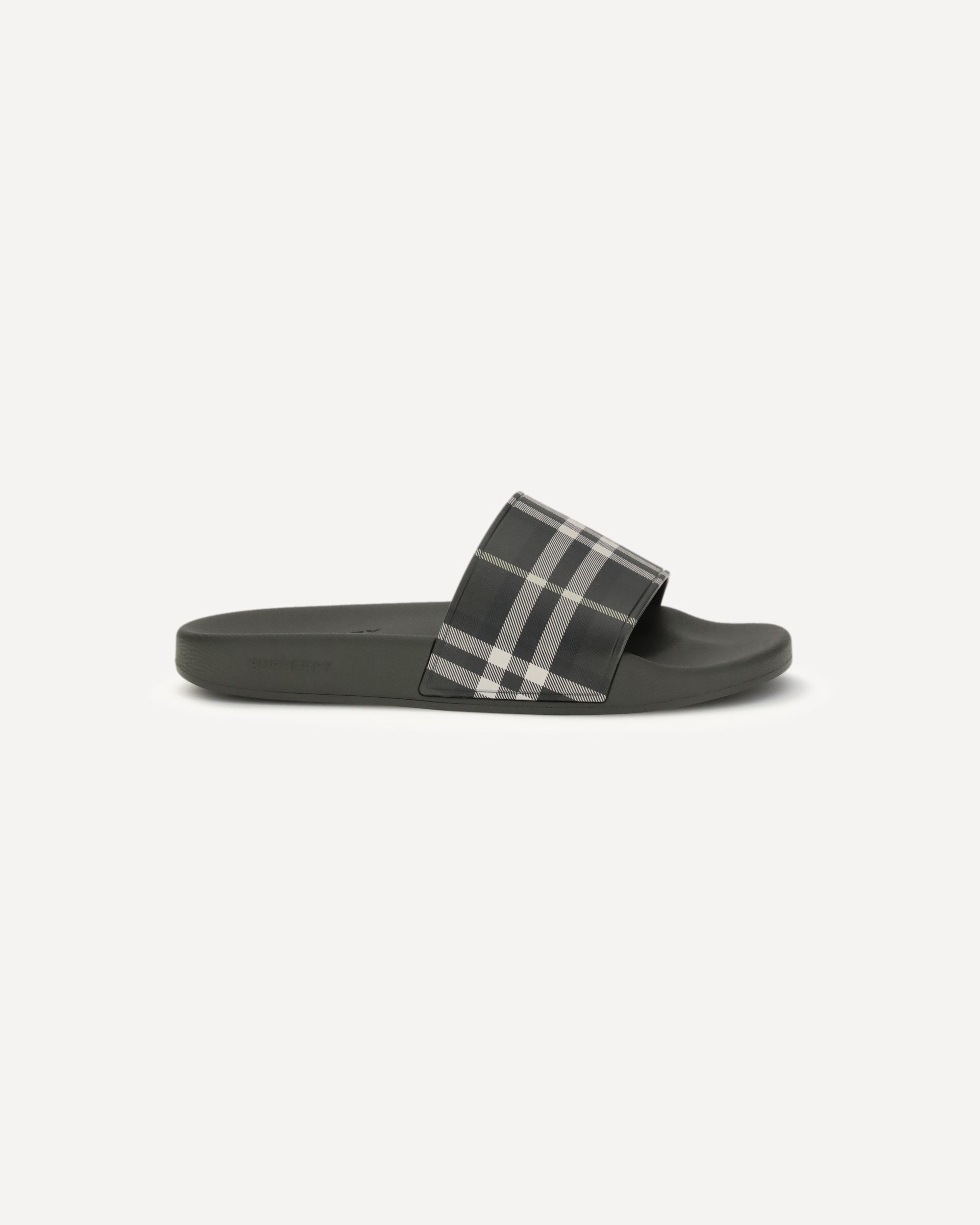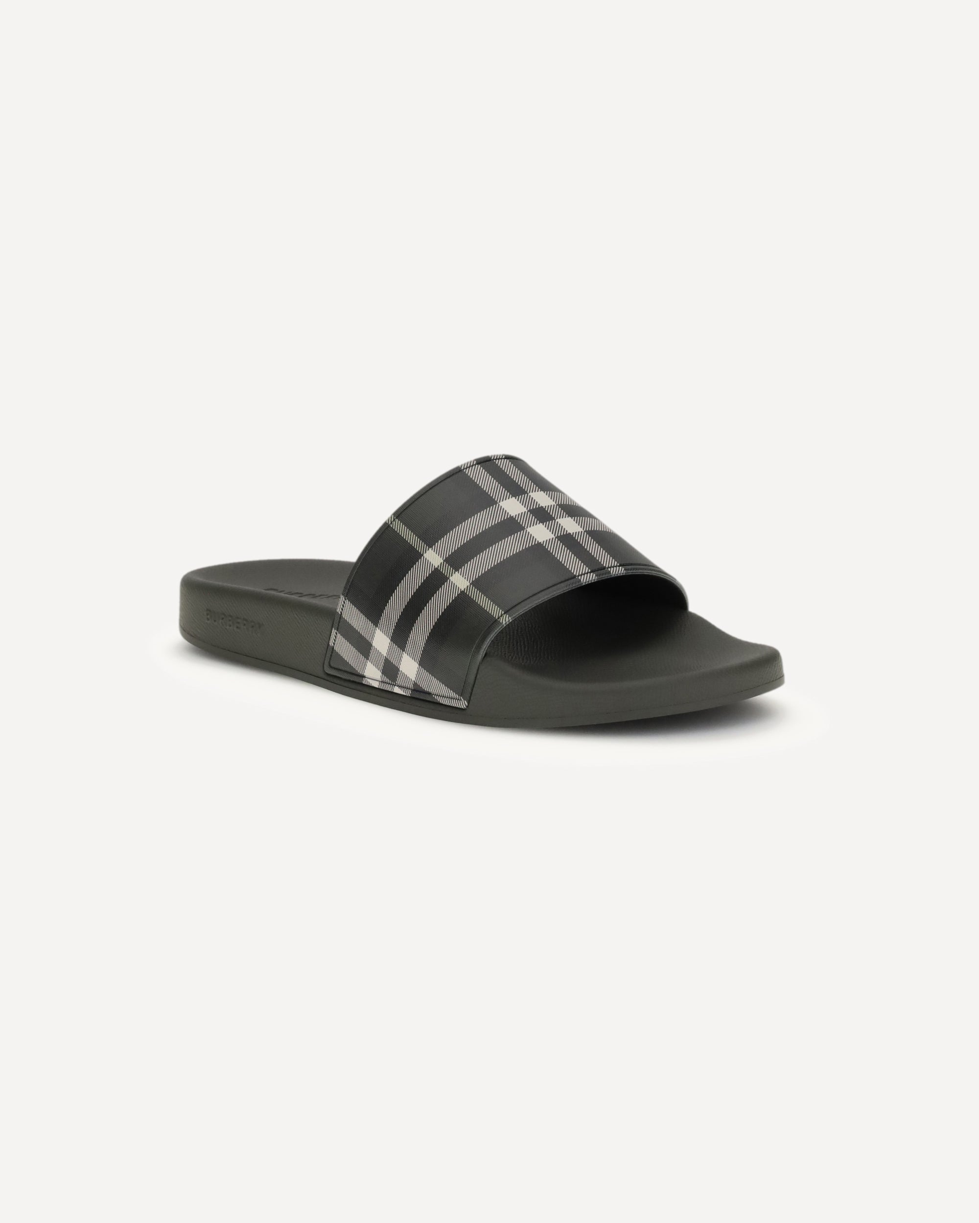 The rubber Check Slippers by Burberry reinterpret an essential model with the unmistakable elegance of the British fashion house.Made in Italy and decorated with the iconic Burberry Check pattern in the season's Thicket green shade, they combine contemporary style and practicality.The notched sole with embossed logo ensures grip and distinctive character, while the contoured insole provides comfort and support, completing a refined and modern accessory embellished with Burberry lettering embossed on the side.