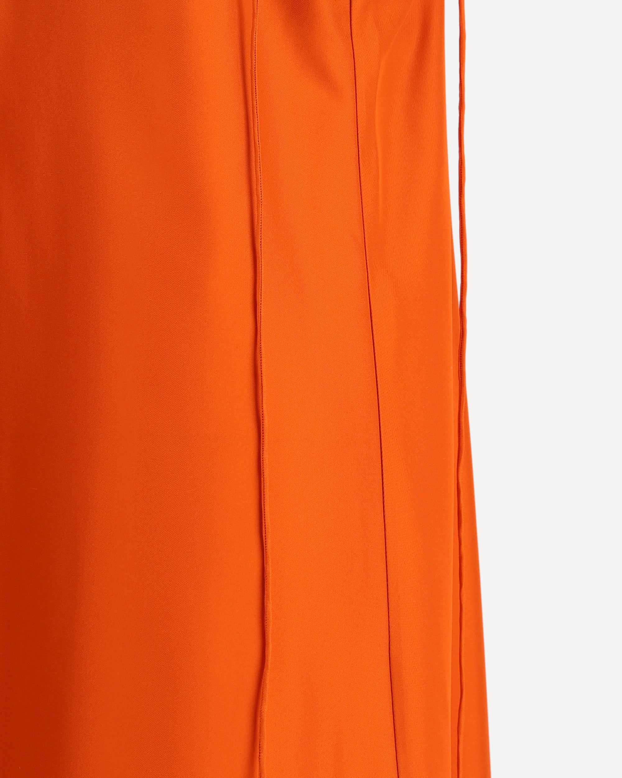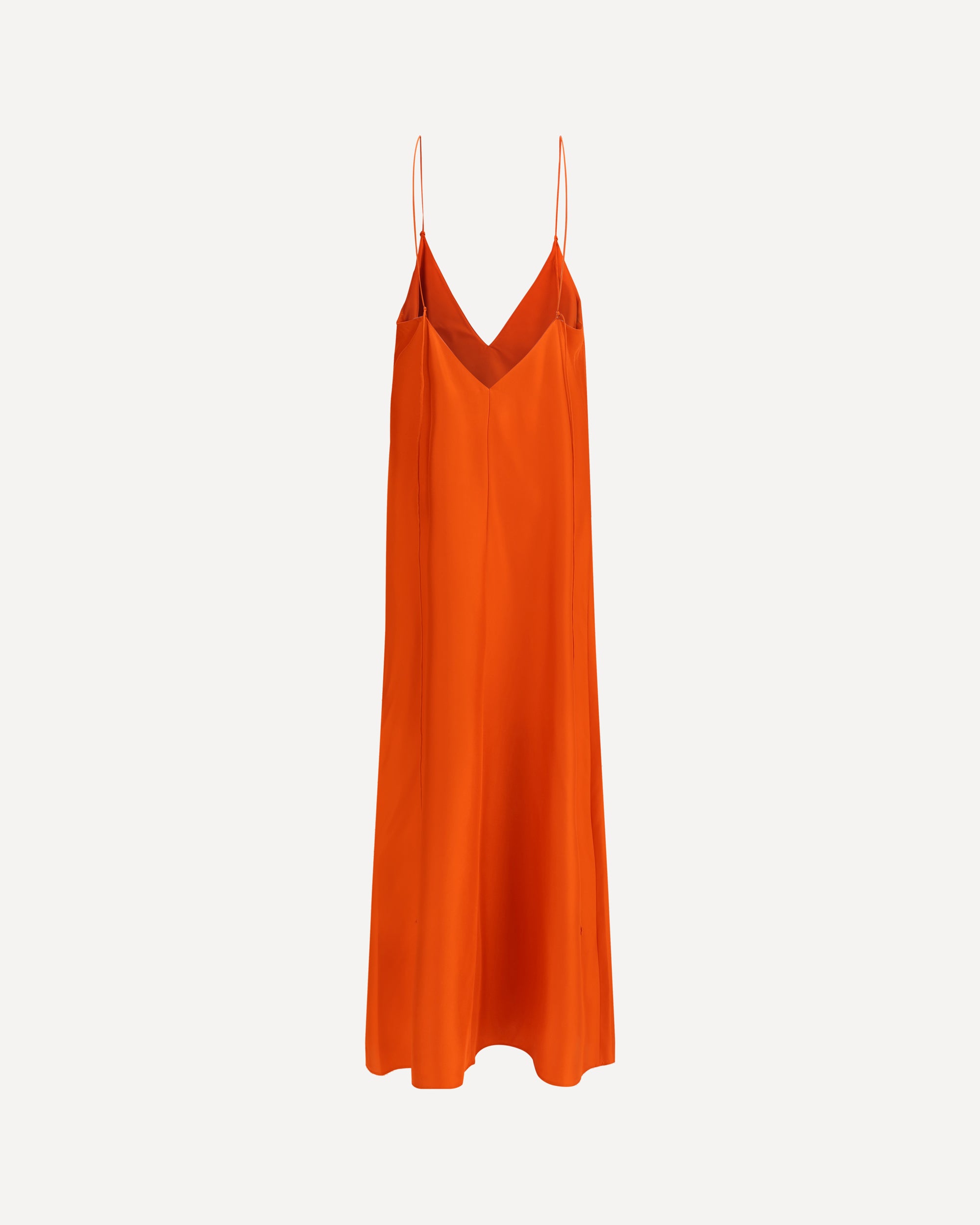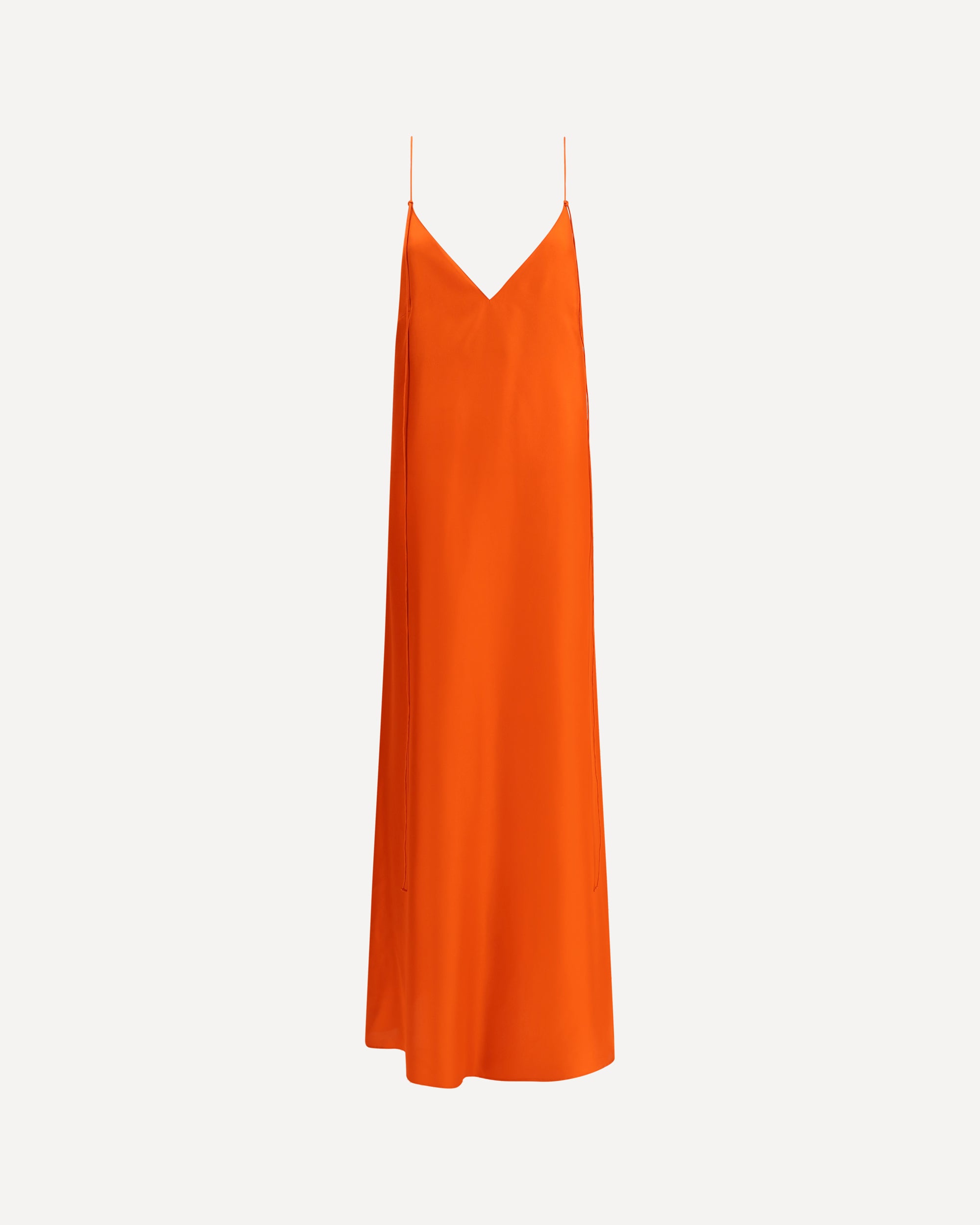Rohe's Satin Long Dress is a sophisticated and sensual piece, perfect for those seeking a sleek, modern look. The sleeveless design with thin straps creates a delicate silhouette, while the deep neckline on both the front and back adds a bold and refined touch. The two ties at the back, which can be knotted, offer the possibility to further customize the fit, giving a touch of femininity and movement. The satin fabric lends an elegant sheen, making this dress ideal for special events or chic evenings.