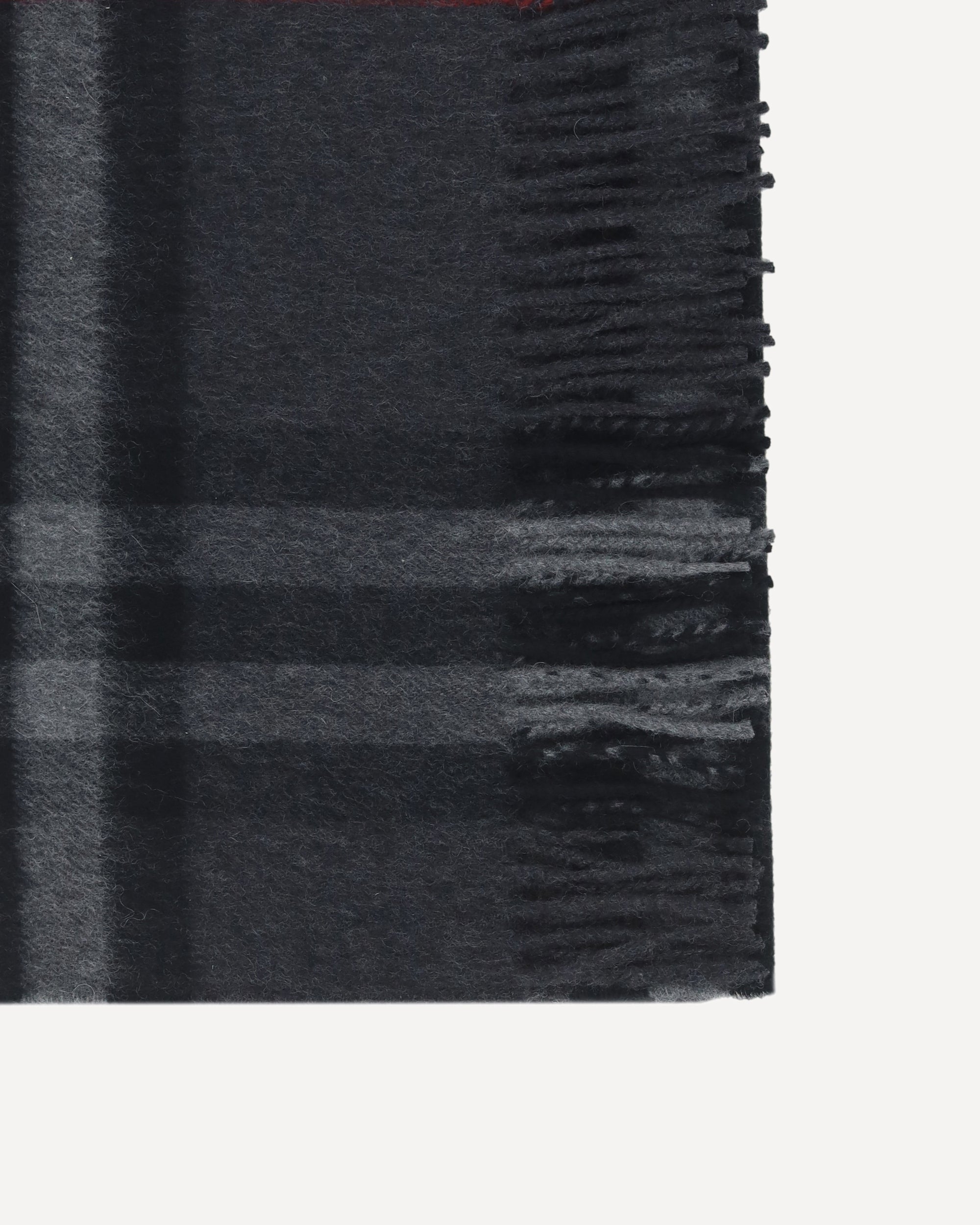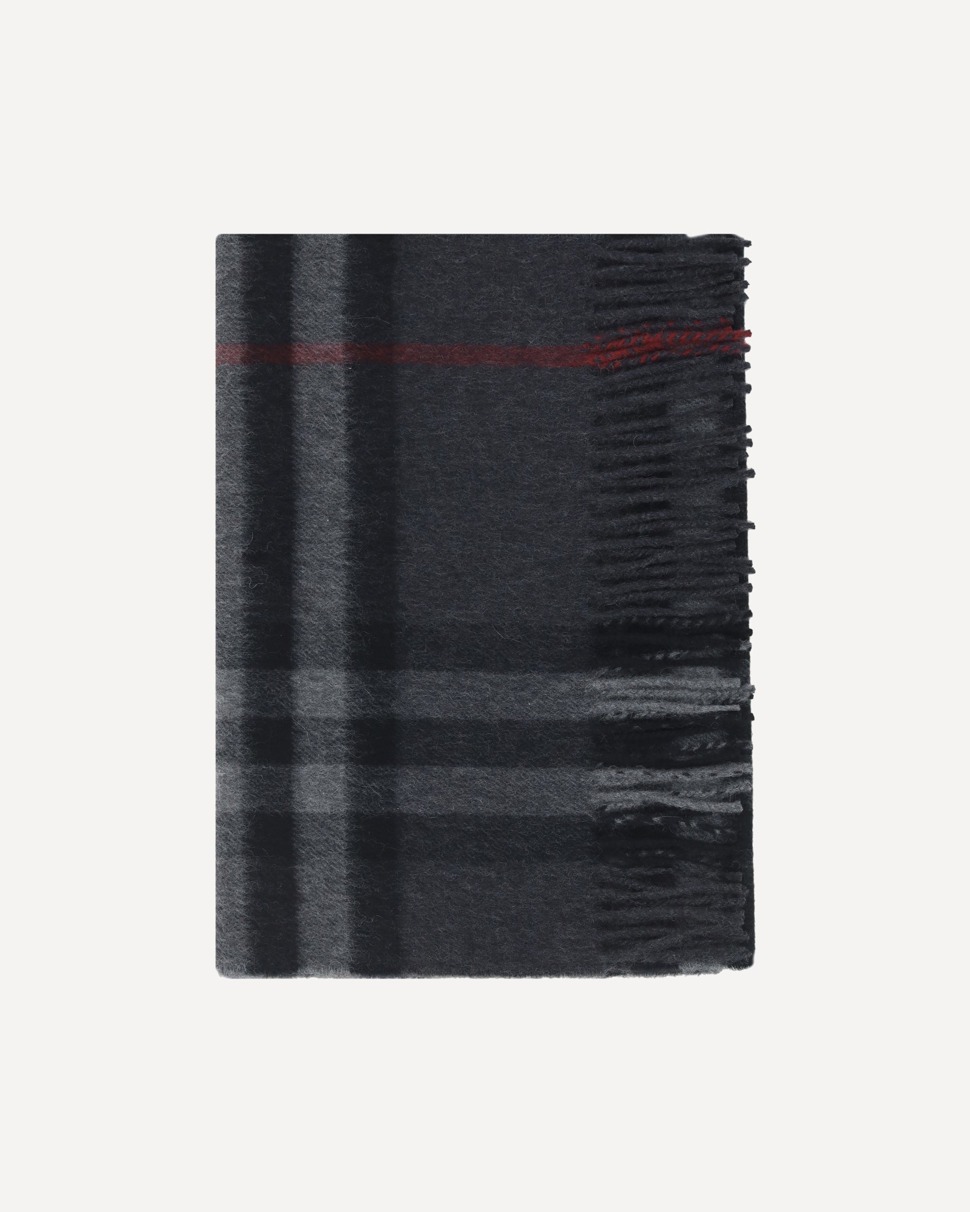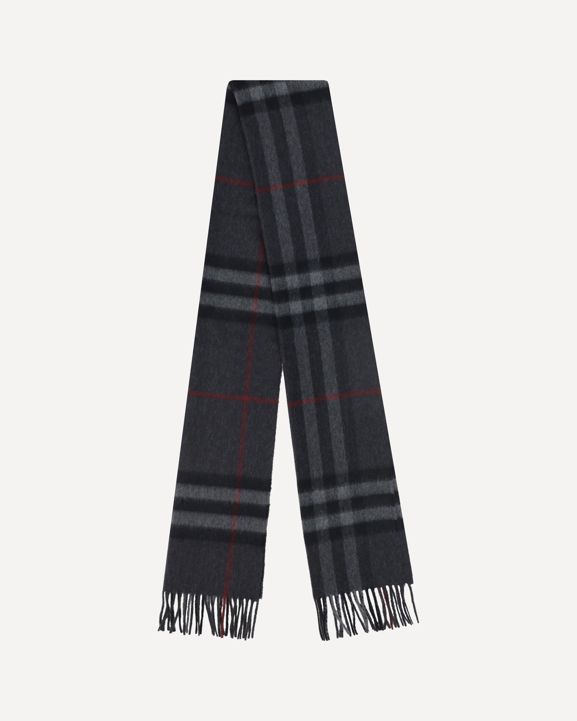 Cashmere Scarf by Burberry, frayed hems, iconic all-over Archivio Check pattern.