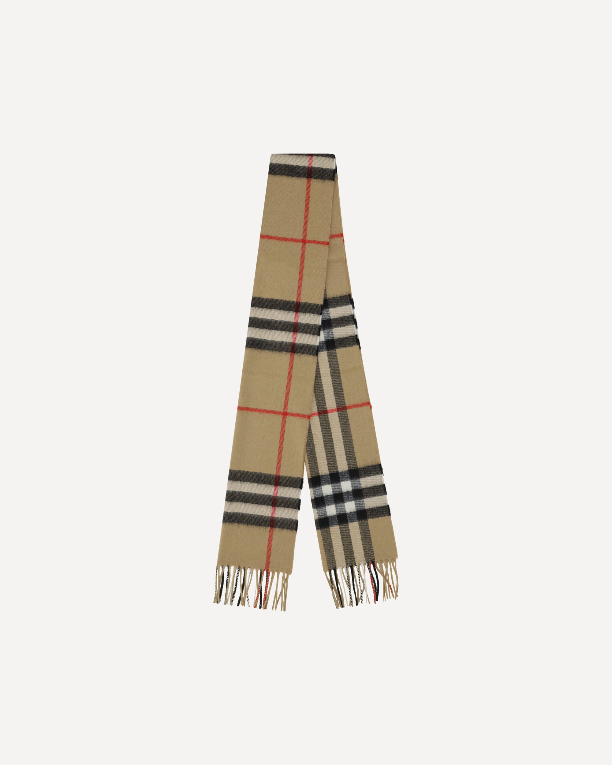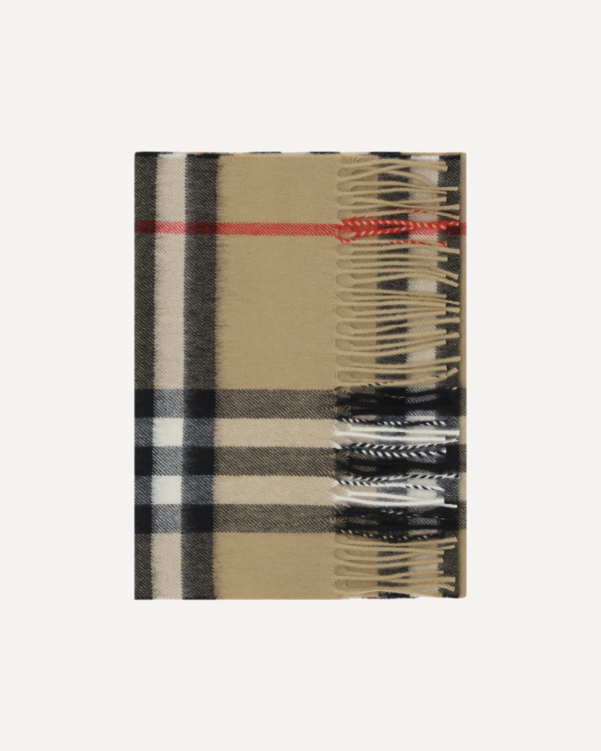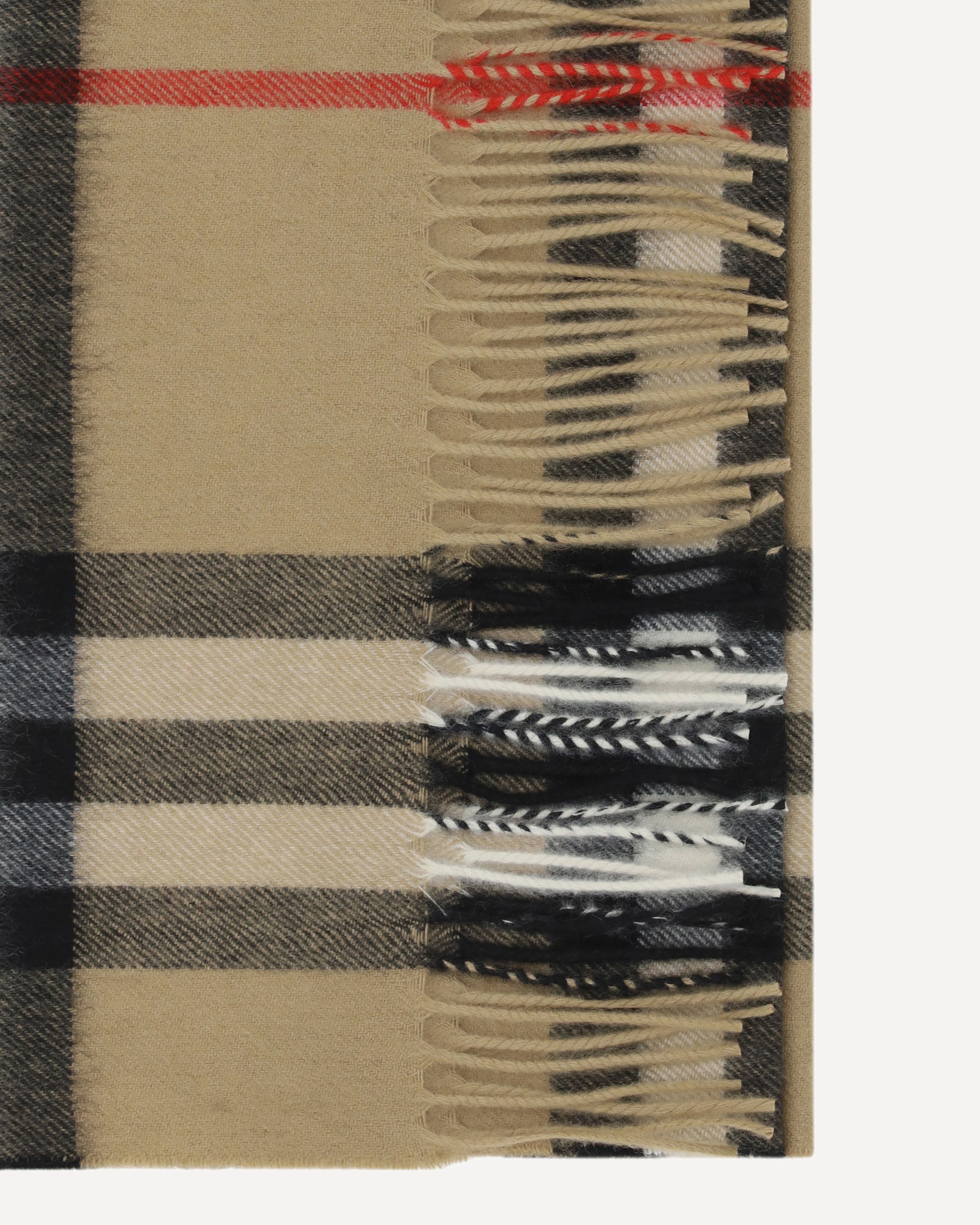 The cashmere Scarf by Burberry is an iconic accessory combining timeless elegance with exceptional craftsmanship. Produced in a historic Scottish mill founded in 1797, it is woven on traditional looms and carefully finished to achieve a naturally luminous, ultra-soft feel. The rectangular design features the iconic Archive Check pattern and is finished with fringed edges.
